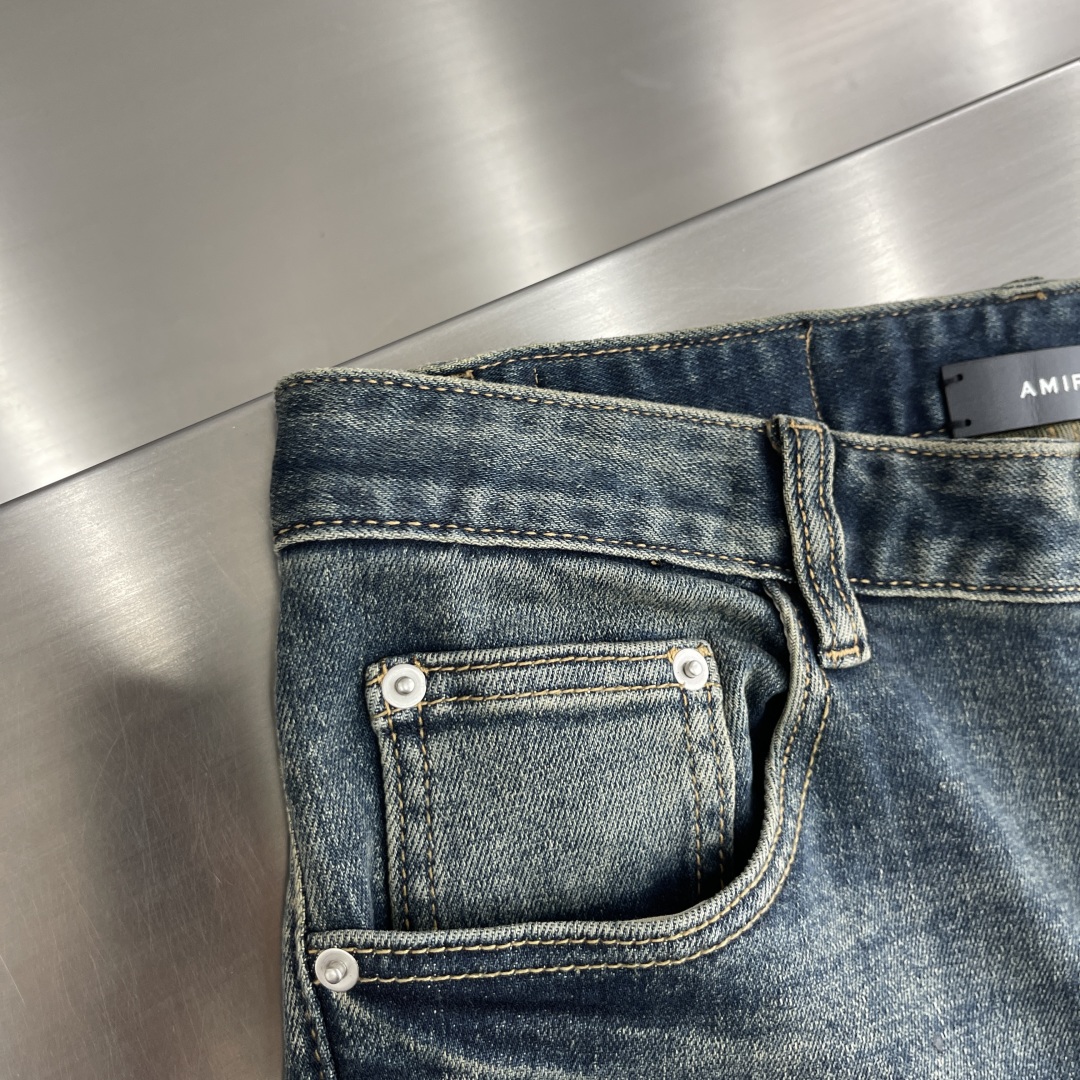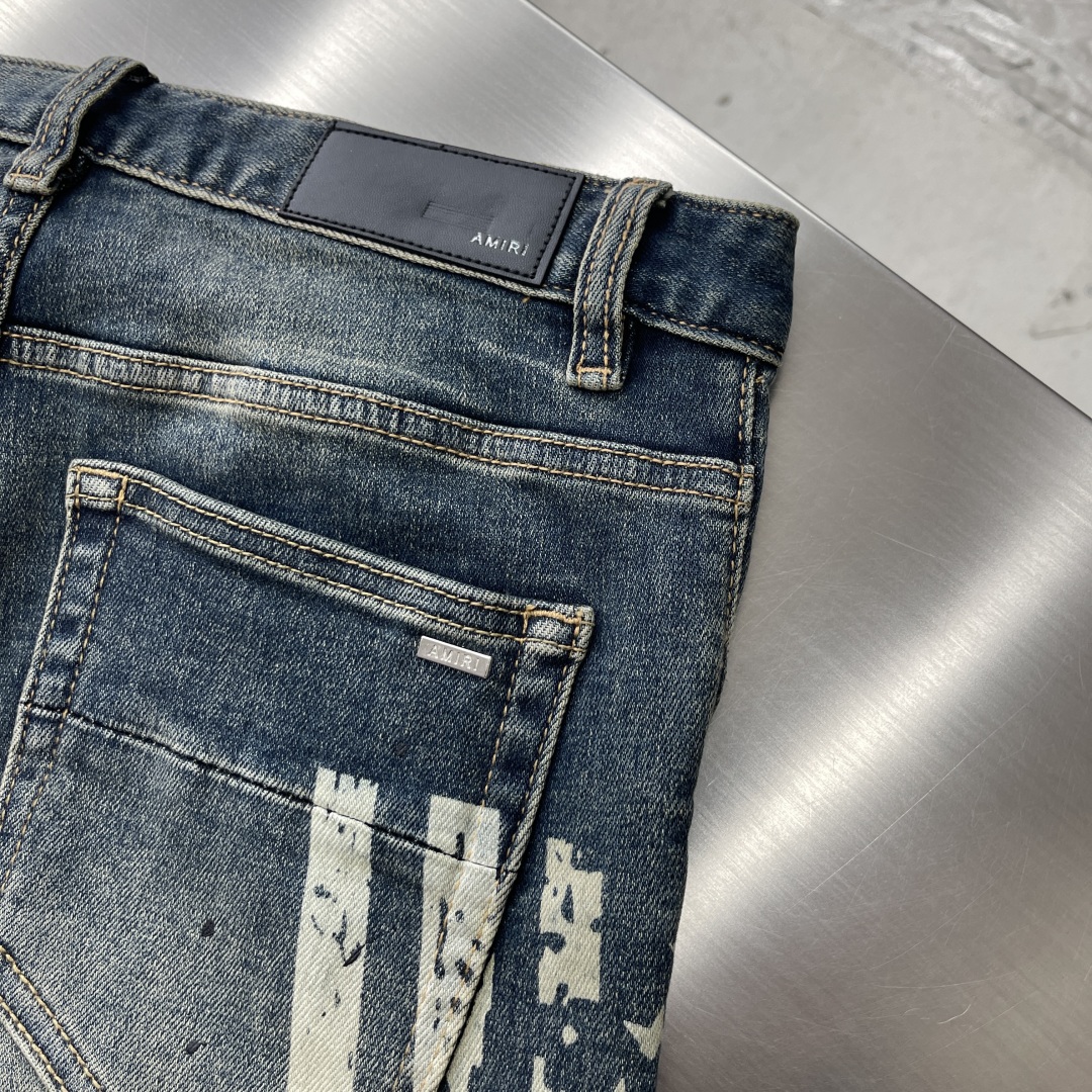 -AMIRI 25早春新款牛仔裤 独有的定制全套五金辅料 五角星⭐️印花Logo 恰到好处的设计点 结合脱旧洗水工序 复古有味道 版型修身有型 个性十足 修身版型 码数:28-38( ️37)fh30