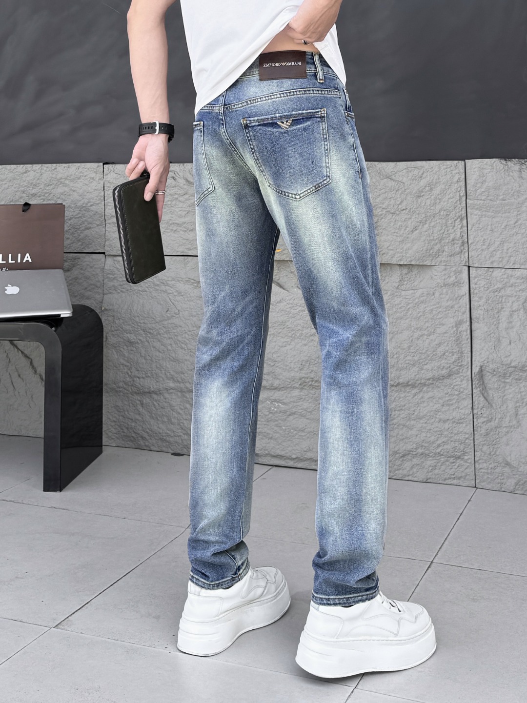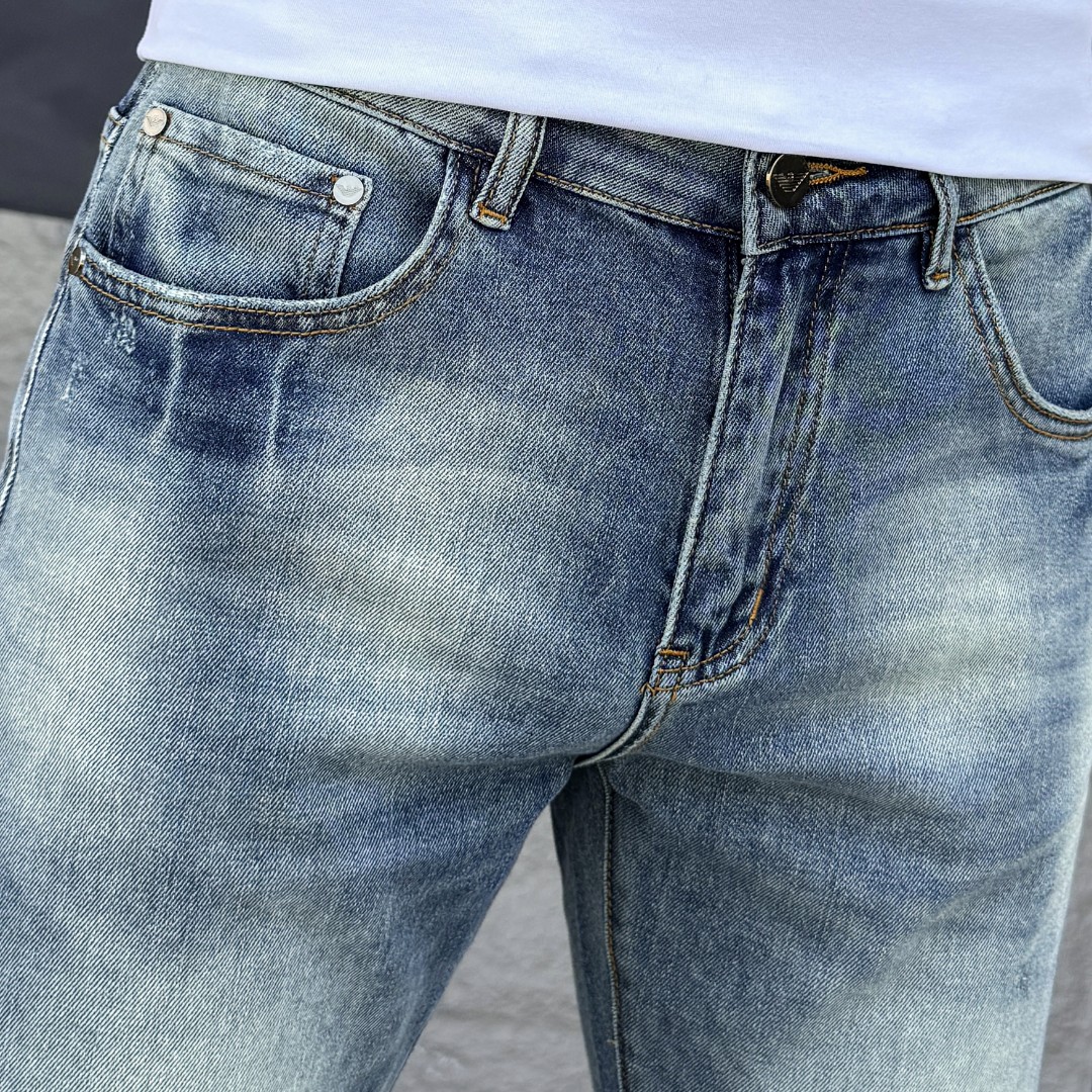 ARMANI阿玛尼 2025ss春夏新款男士牛仔裤 精选进口丹宁牛仔面料 重工环保洗水 手感柔和 兼备耐磨性 版型小直筒 微弹力显瘦修身,细节完美,五金辅料精选高等品质,做工精细,绝非凡品,码数:28-38,隔天出货