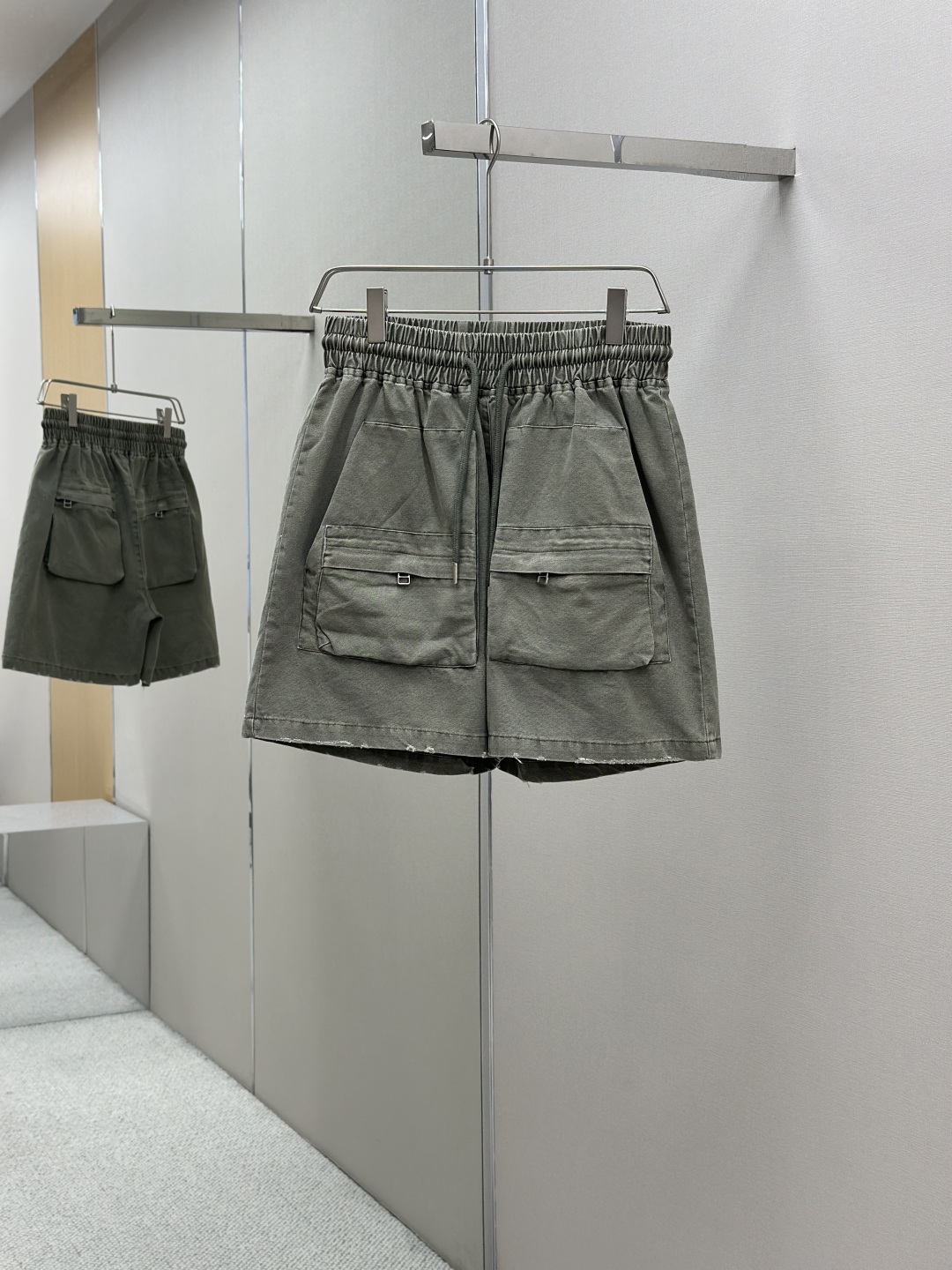 Askyurself 水洗破坏军绿棉质短裤 超高质感重工五分裤 水洗军布拉链工装短裤 遵循YB一致 尺码:S-XL