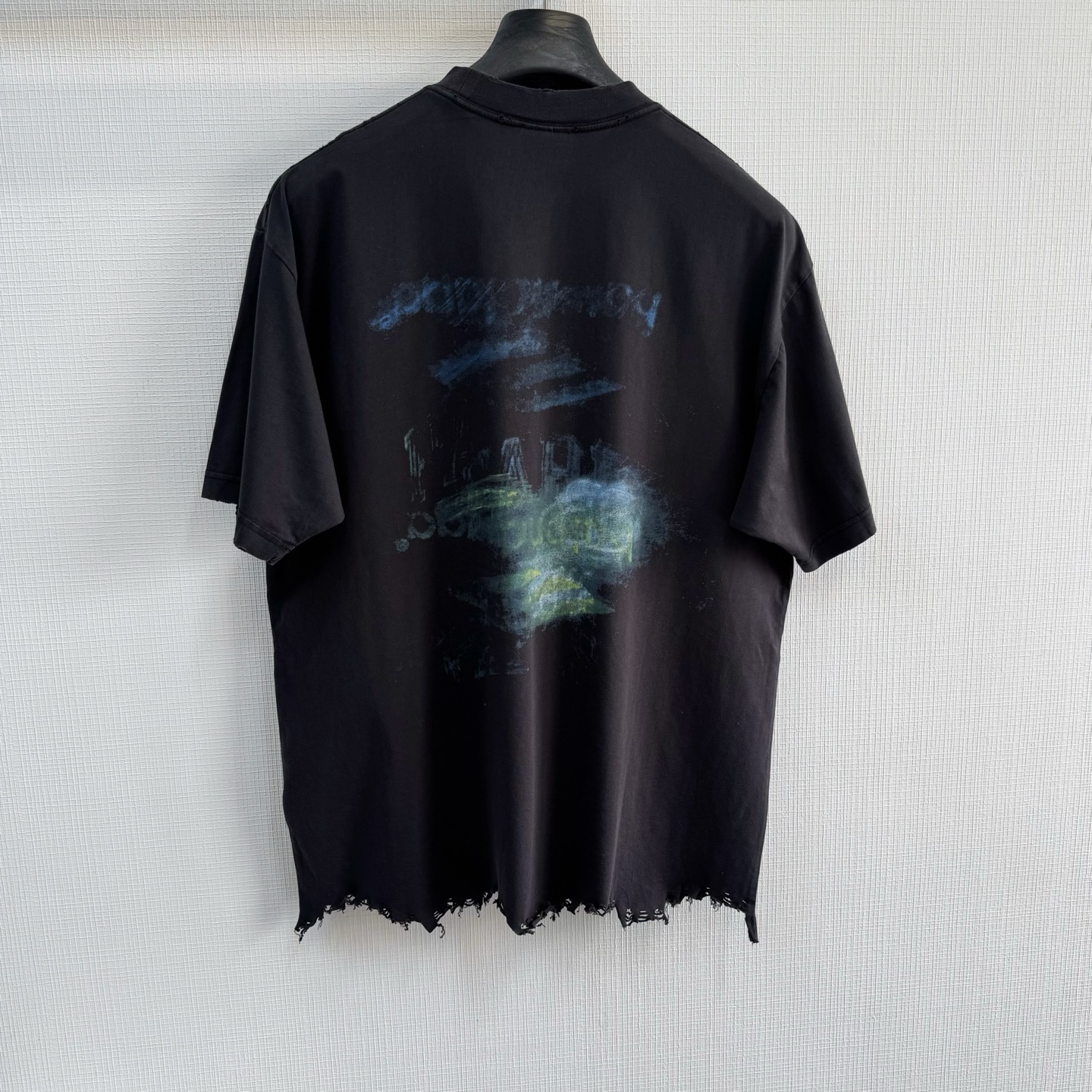 Bal巴黎 25ss 直喷短袖T恤 16支精梳赛络纺做高密度平纹工艺,洗水后克重260g 烧毛除尘工艺,同缸定染十字拉架螺纹,不易变形,前后幅数码直喷,洗水加柔处理 激光切割流苏 size:xs/s/m/l