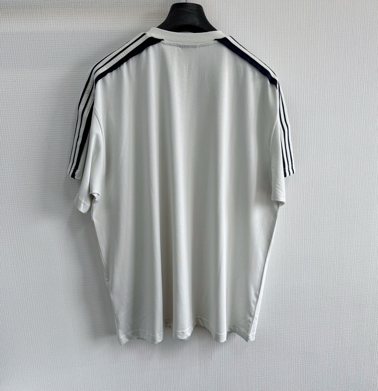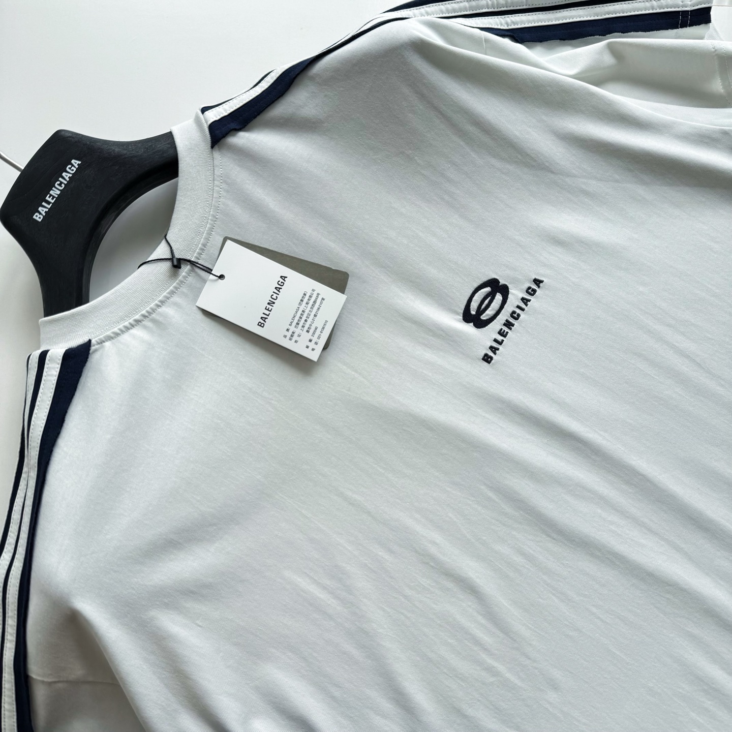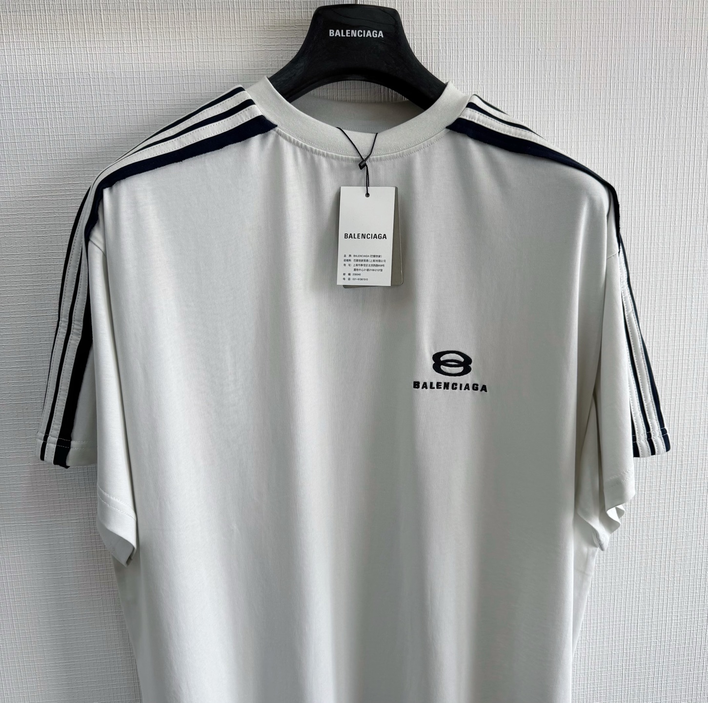 bal 25ss 拼色插肩袖圆领短袖 185g复古平纹针织面料,肩头拼接间条16S+10S鱼鳞底卫衣面料,搭配同撞色平纹针织面料,制作出立体间条拼接设计,正面饰以艺术品绣花 绣花整体采用榻榻米绣花,正反两面制作而成,对版对色定做绣线材质,高领oversize宽松版型size:xs/s/m/l
