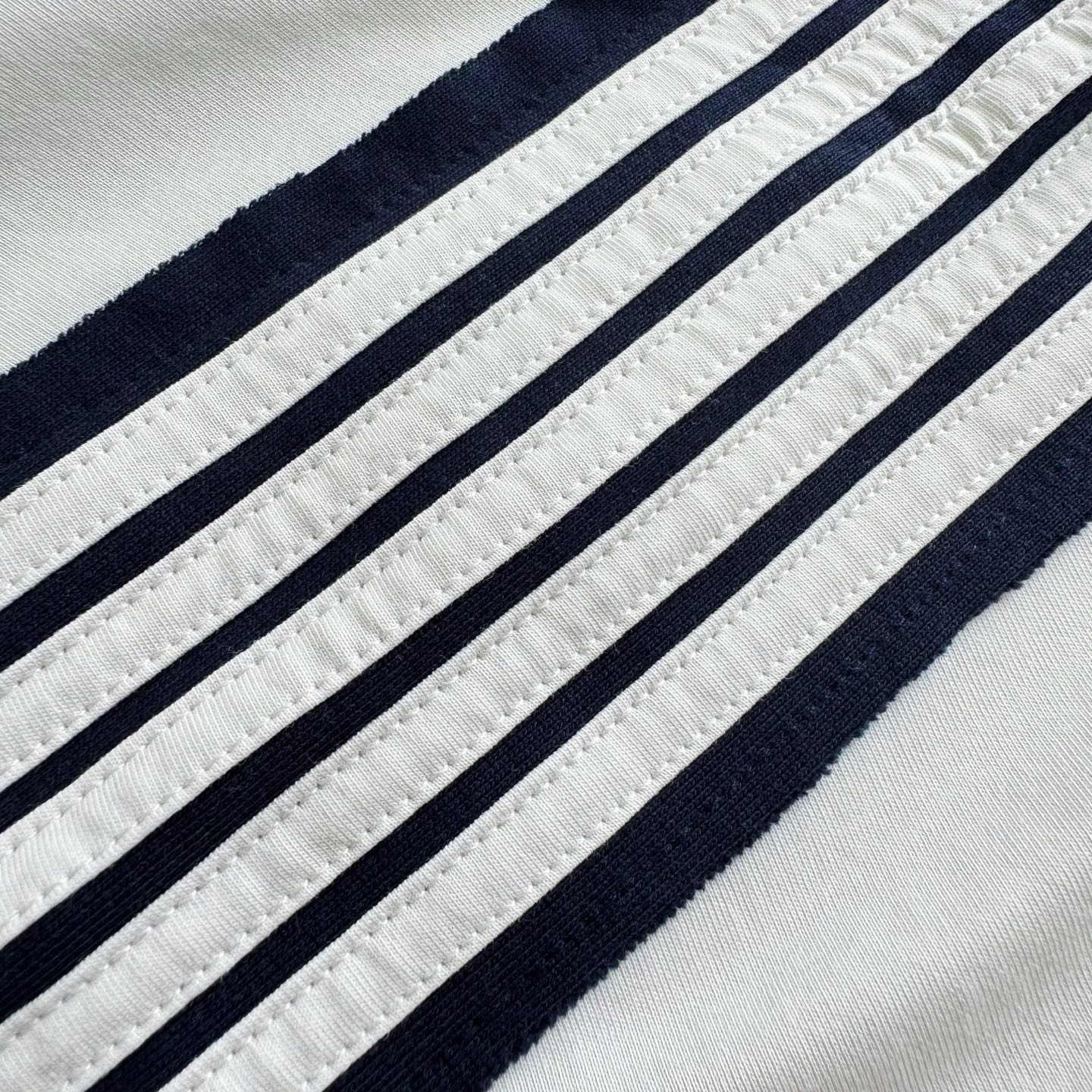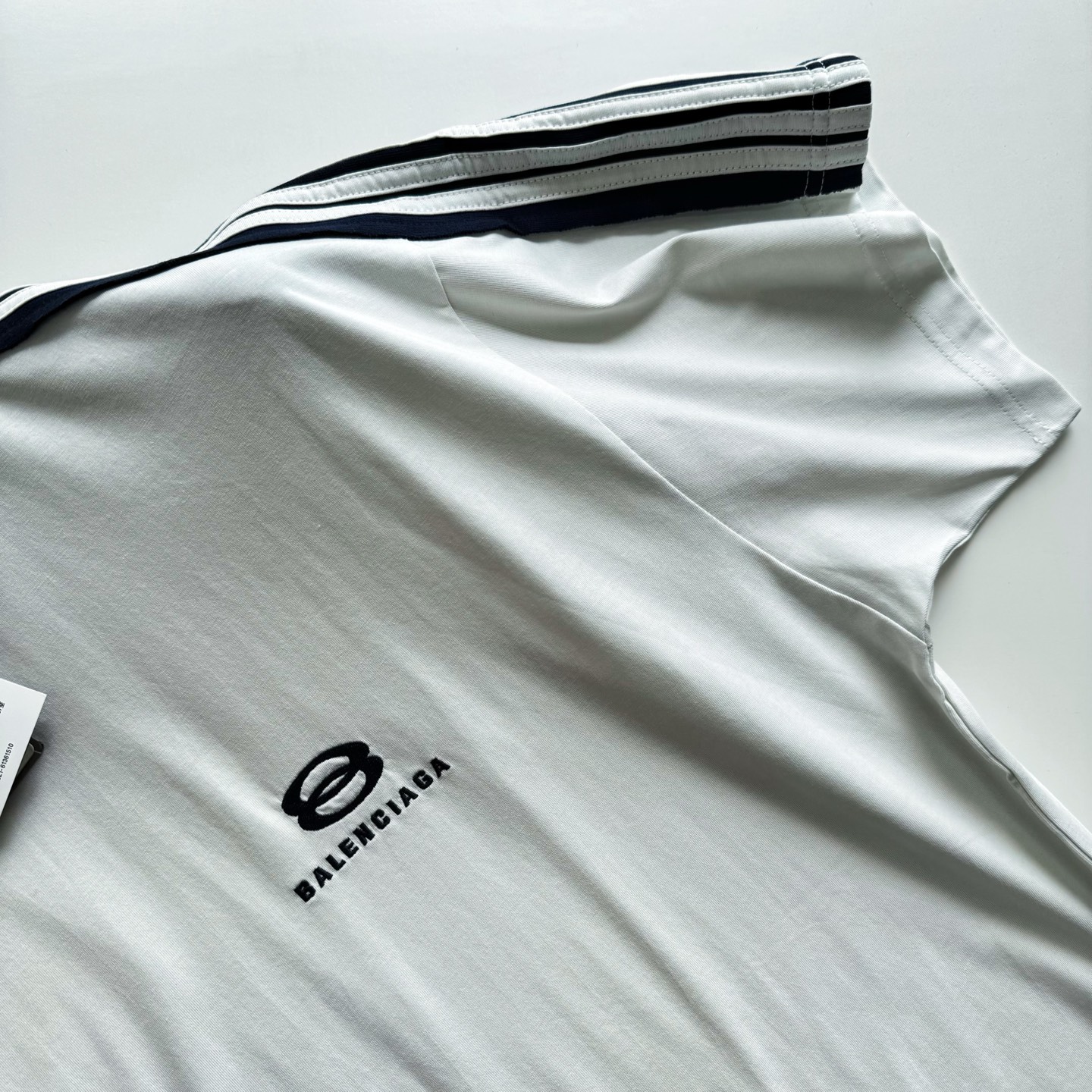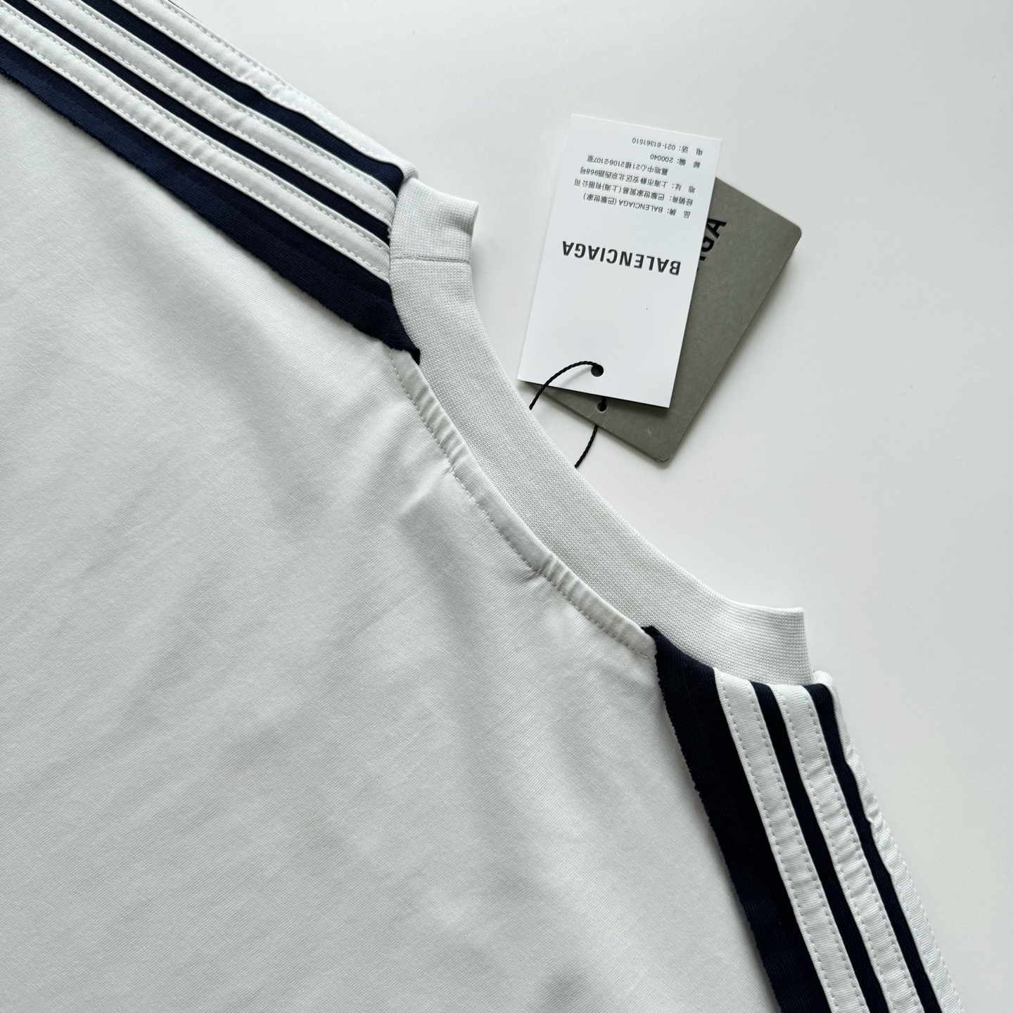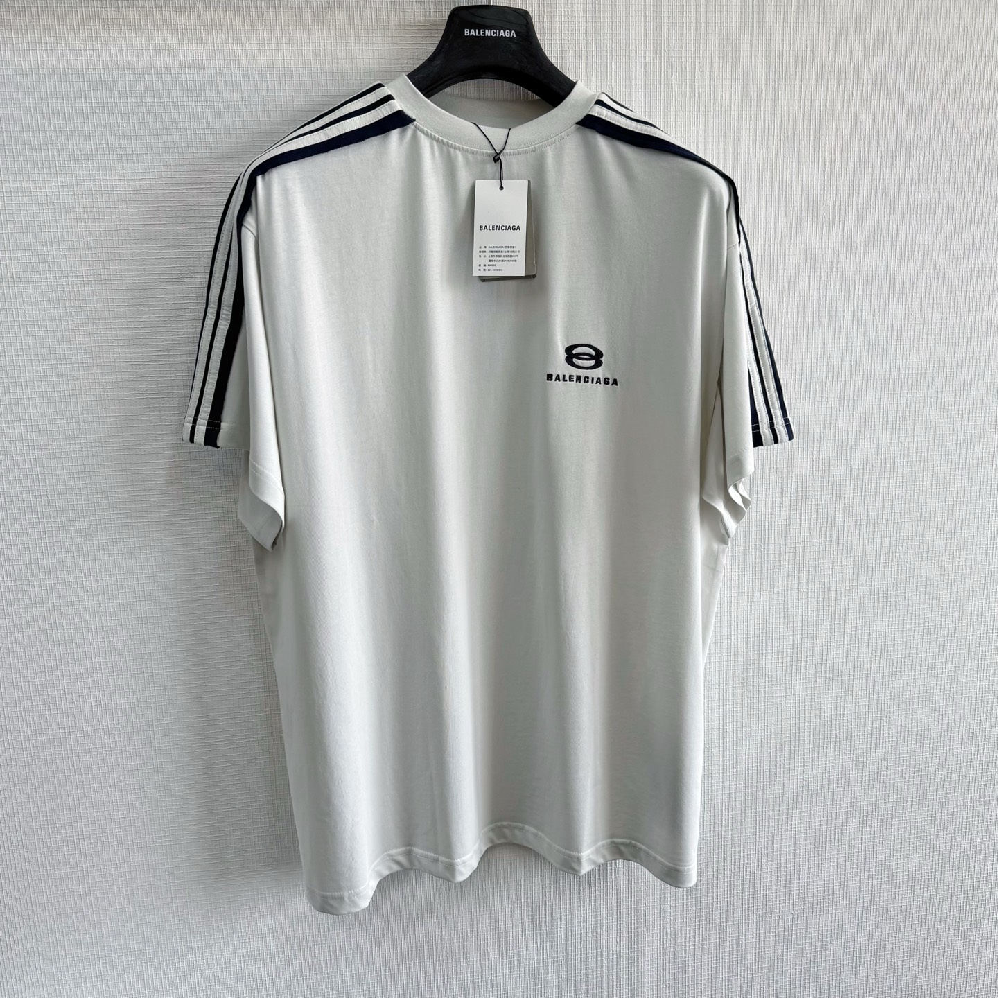 bal 25ss 拼色插肩袖圆领短袖 185g复古平纹针织面料,肩头拼接间条16S+10S鱼鳞底卫衣面料,搭配同撞色平纹针织面料,制作出立体间条拼接设计,正面饰以艺术品绣花 绣花整体采用榻榻米绣花,正反两面制作而成,对版对色定做绣线材质,高领oversize宽松版型size:xs/s/m/l