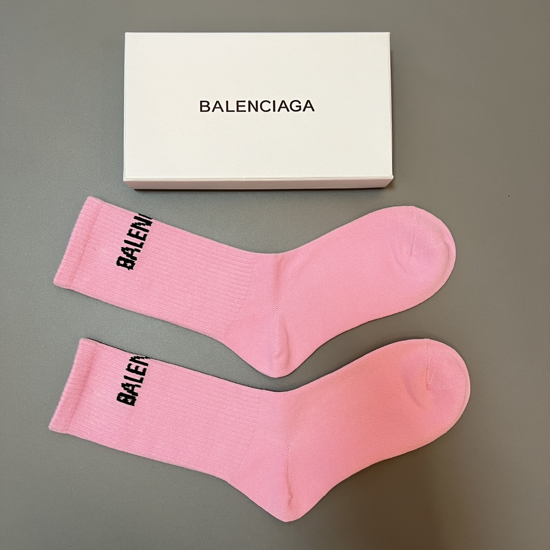 Balenciaga 刺绣纯棉高帮长袜6色情侣款 粉色! 单双独立全套真空包装! 套装6双颜色随意挑选全套真空包装!