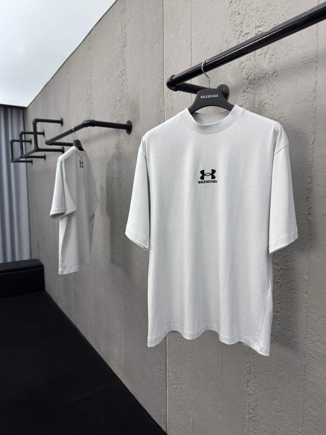Balenciaga 安德玛联名印花短袖 工艺说明:采用100%定织定染纯棉面料 手感柔软舒适 辅料主标和洗水标及吊牌定制带安德玛logo标志的 吊牌是双拉牌 标志性的安德玛图标与B家标志Logo相结合 非常的抢眼 前后安德玛印花字母logo运用特种拉浆印花工艺 其特点是使用具有叠高性能的胶浆来印花 使印花图案上创造出一种层次感 颜色一致无色差 整体走线平直细腻 能与同款搭配营造时尚造型,驾驭各种场合,定制辅料,三标齐全,男女同款! ⚠️颜色:白色 ⚠️Size:XS/S/M/L