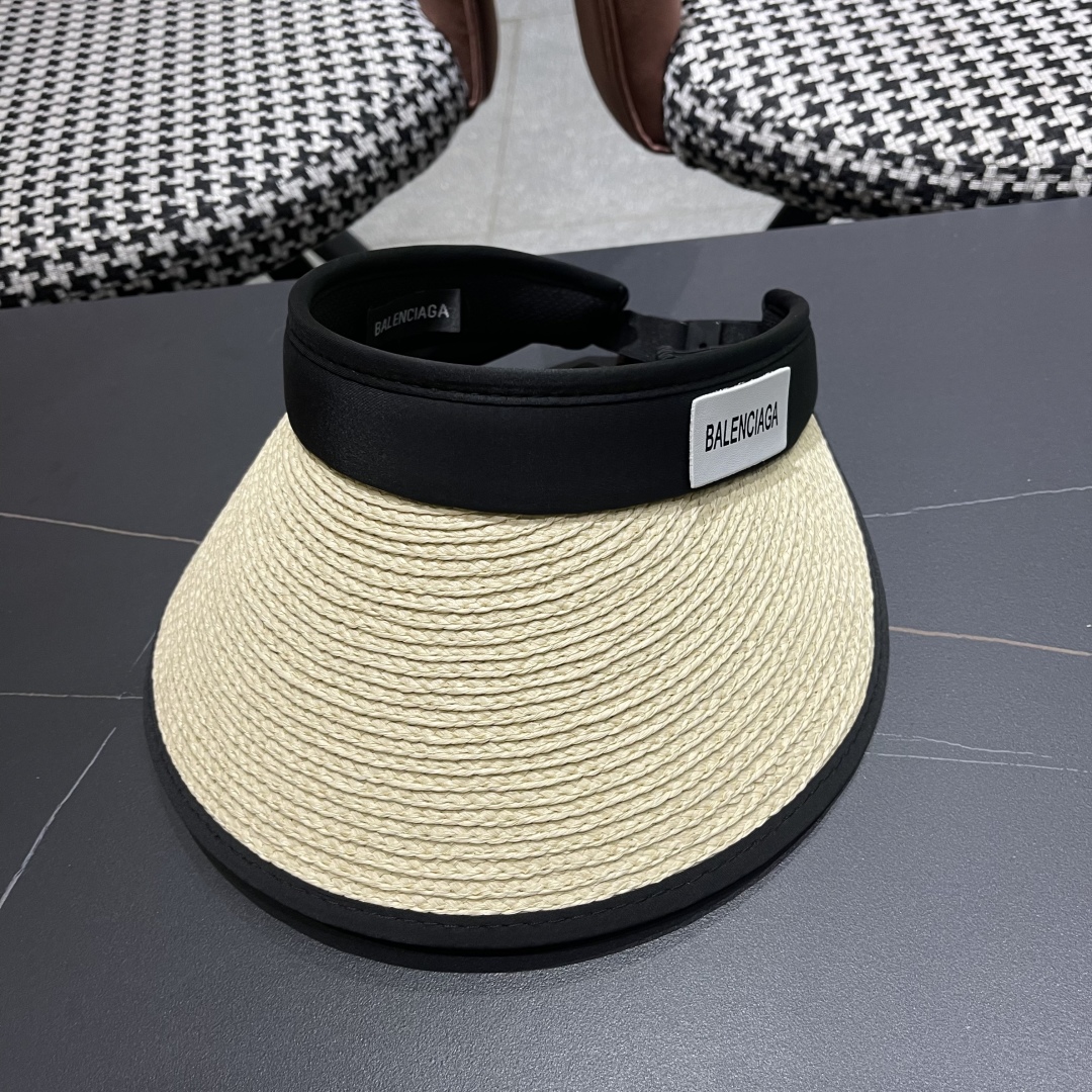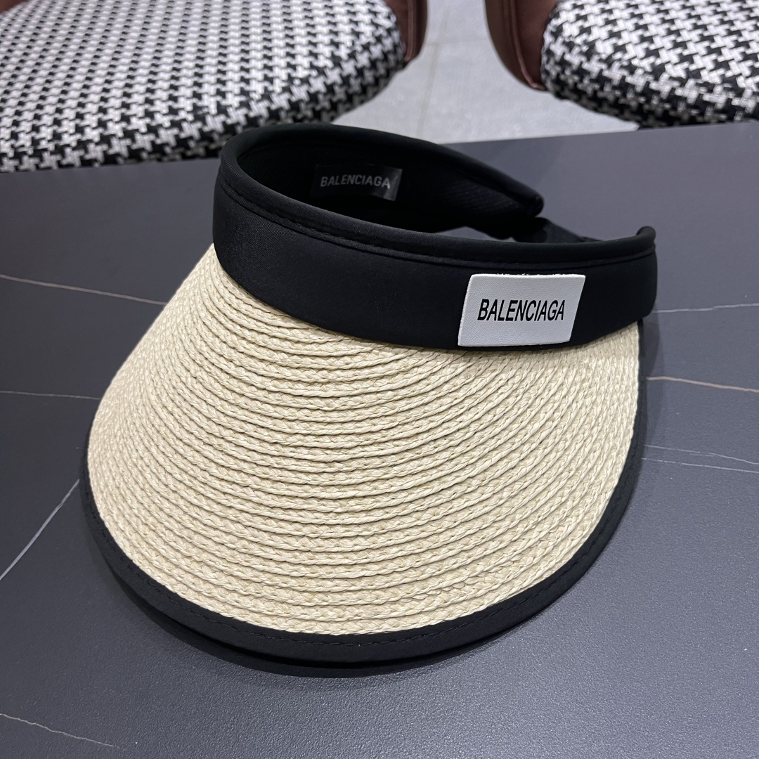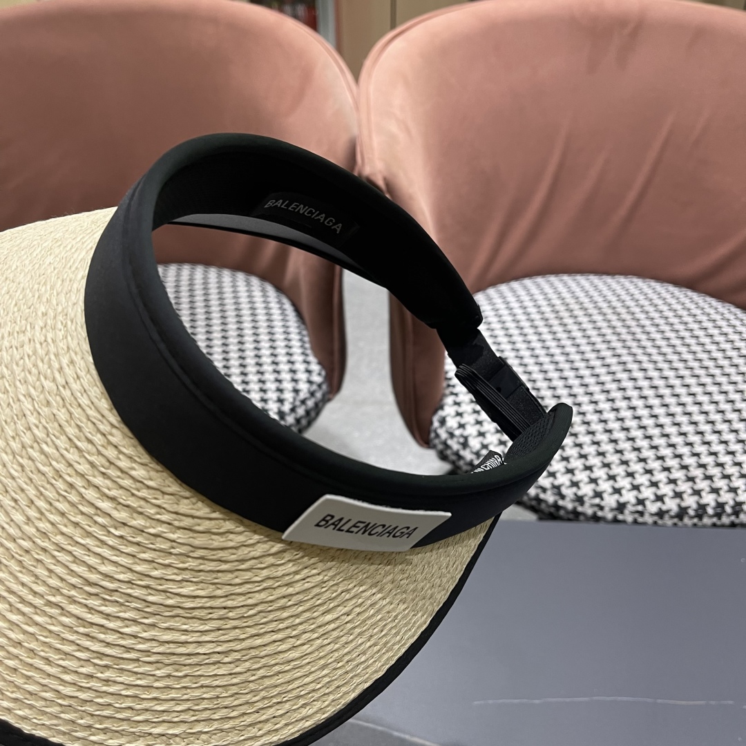 balenciaga 巴黎世家 草编空顶帽子女夏天户外防晒加宽大帽檐遮脸 沙滩帽日系遮阳草帽潮