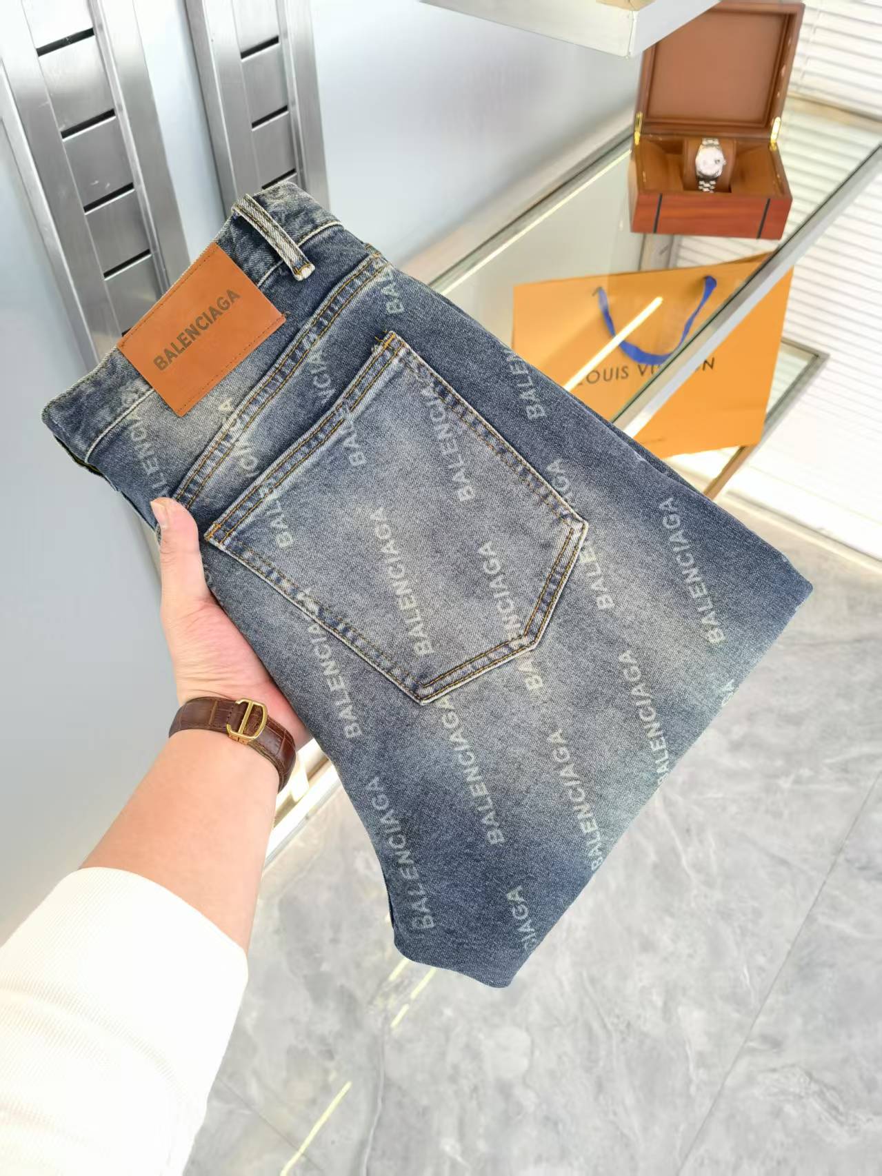 Balenciaga 巴黎世家 2025新款原单狠货,[玫瑰]高弹洗水牛仔裤 原版开发 高端品质 可随意对比 经典灰蓝复古风 百搭显瘦 原版五金loho 一比一重工艺定制 刺绣图案原版皮牌 牛仔面料柔软且韧性 版型贴合腿部线条 上身舒适 时尚有型 (三标齐全) 尺码:S-XL 隔天出货