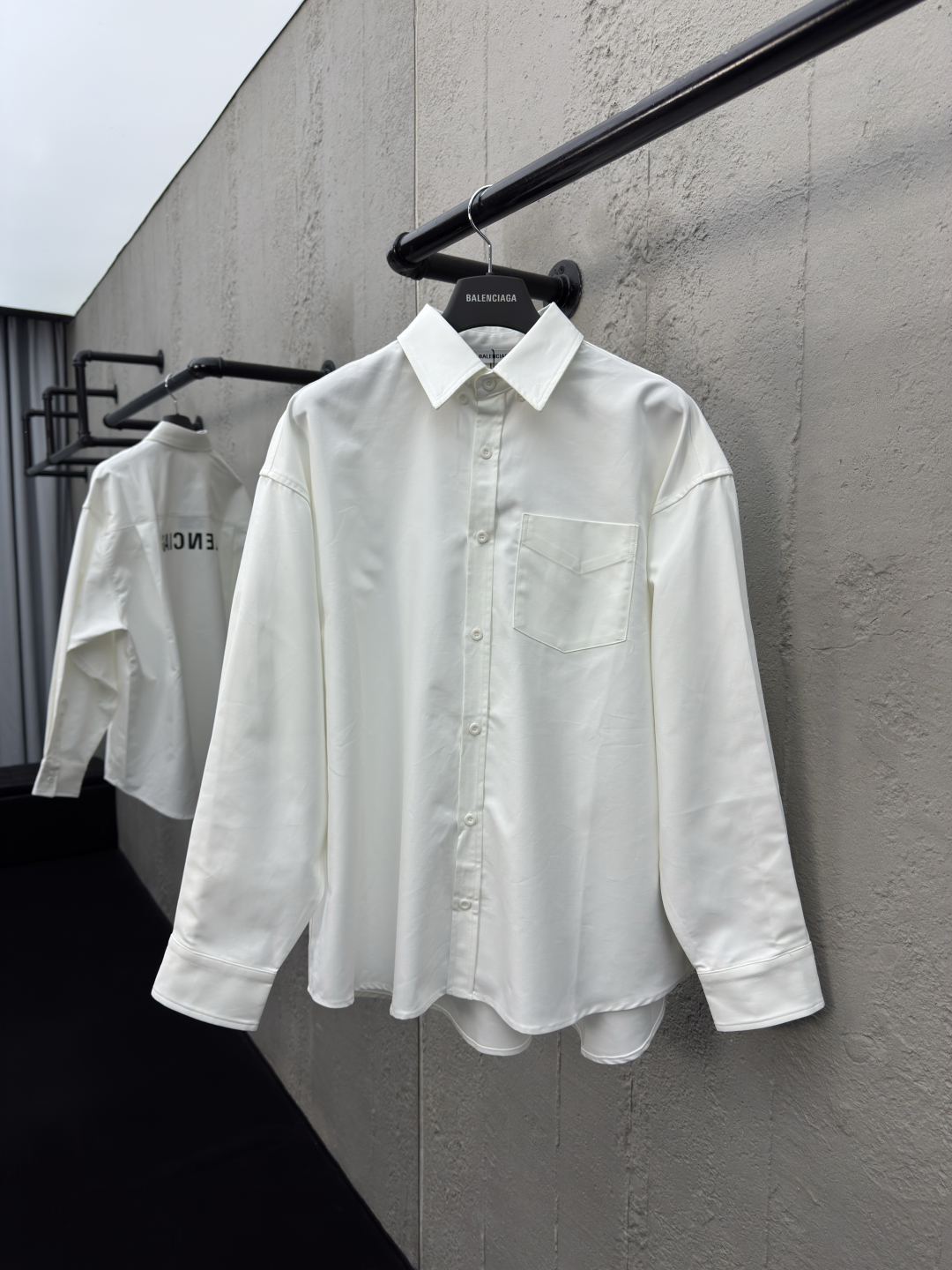 Balenciaga 背后印花衬衫外套 工艺说明:定制经典双面厚款长绒棉巴黎衬衫料 做到双面不同纹理和原版一致 质感肉眼可见 上身立体有型 贴身舒适柔软 后背采用进口机加厚胶浆印花 烫朴位均用高温过朴机 不易脱落 专供出口流水线衬衫厂 一线品牌质量 男女同款! ⚠️颜色:白色 ⚠️Size:1/2/3