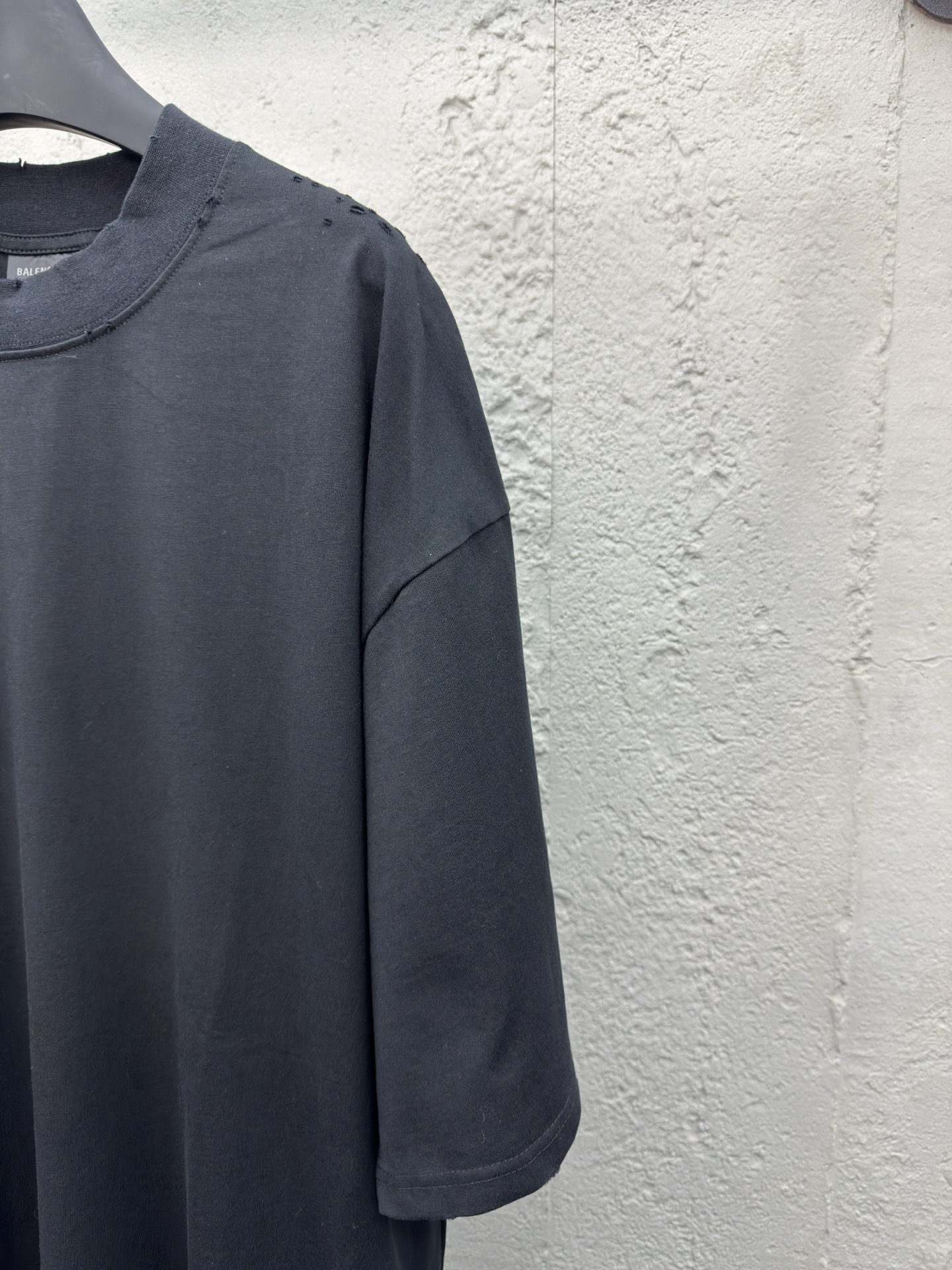 Balenciaga 背后梵文破洞短袖 工艺说明:定织定染百分百纯棉双股水洗布 成衣洗水在做洗水 袖子以及下摆采用磨烂效果 后领做车线破坏 在手工破坏边缘形成虫洞效果还原砖柜 采用进口机器精准对位印花做旧纹理 在撕裂 整体走线平直细腻,面料舒适柔软,颜色一致无色差 能与同款搭配营造时尚造型,驾驭各种场合,定制辅料,三标齐全,男女同款! ⚠️颜色:黑色 ⚠️Size:XS/S/M/L