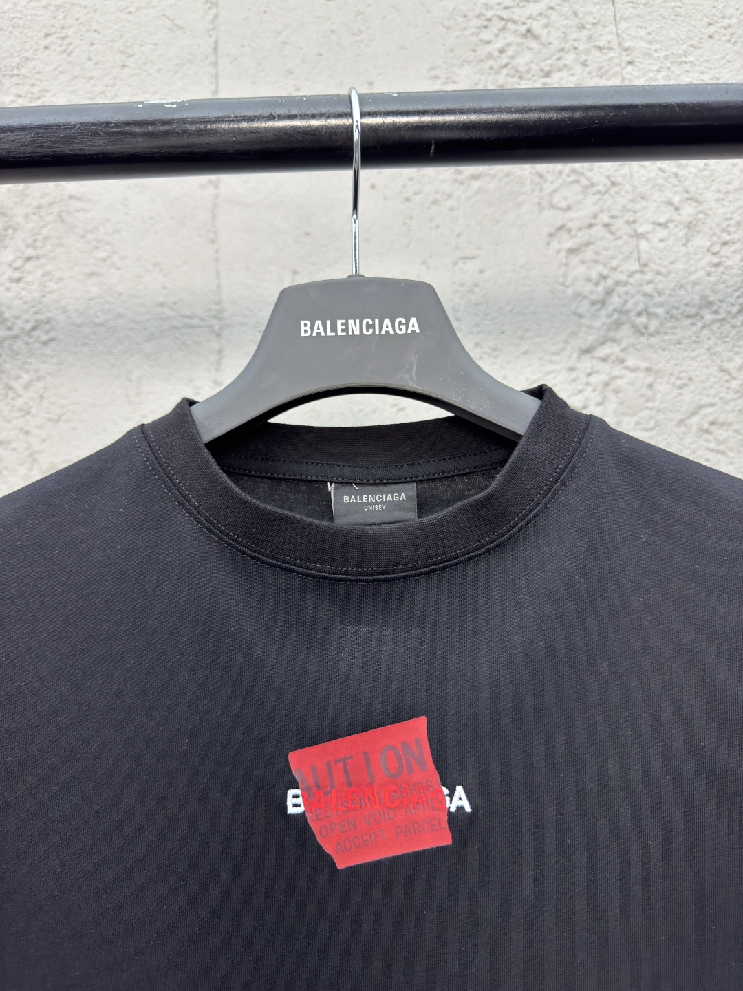 Balenciaga 胶带字母刺绣短袖 工艺说明:采用310克面料纯棉双纱剪裁立体完美版型 贴纸图案贴画刺绣采用哑光线万针刺绣工艺字母图案重工洗水 整体走线平直细腻,面料舒适柔软,颜色一致无色差 能与同款搭配营造时尚造型,驾驭各种场合,定制辅料,三标齐全,男女同款! ⚠️颜色:黑色 ⚠️Size:1/2/3/4