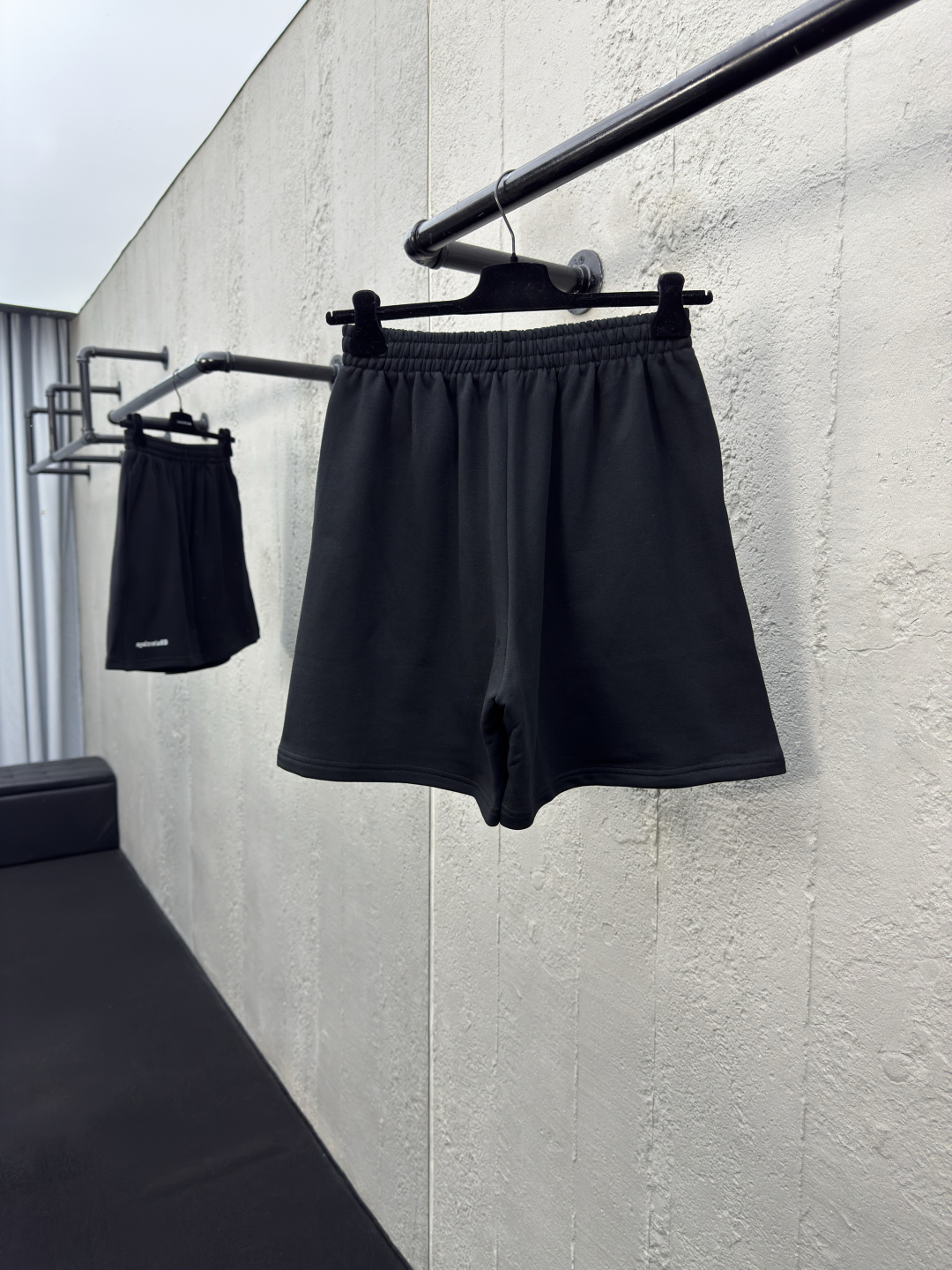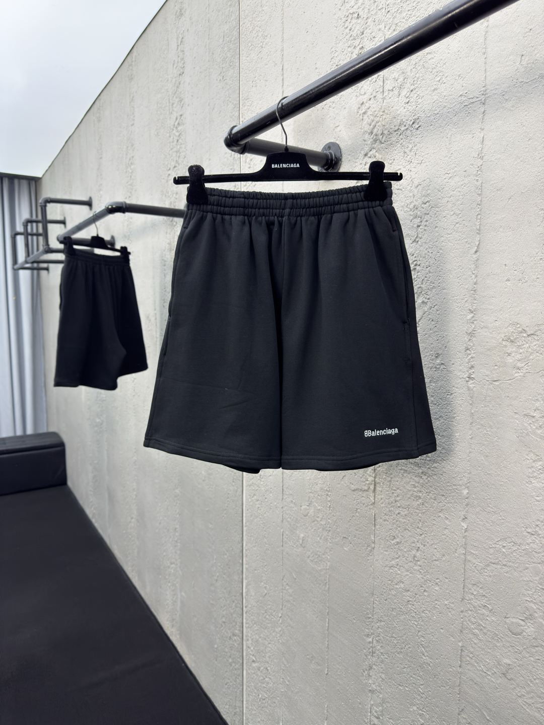 Balenciaga BB字母刺绣短裤 工艺说明:面料采用380g纯棉毛圈面料,订染颜色后整蚀毛处理,对照原版做丝滑超柔处理,布面肌理股线清晰明显,垂感一级棒,做工精致都到达外贸出口标准,刺绣工艺采用百灵达刺绣机器,使刺绣颜色更加饱满,绣花更加立体,透气舒适度高,细节无可挑剔,手感细腻柔软!上身版型超赞! ⚠️颜色:黑色 ⚠️Size:XS/S/M/L