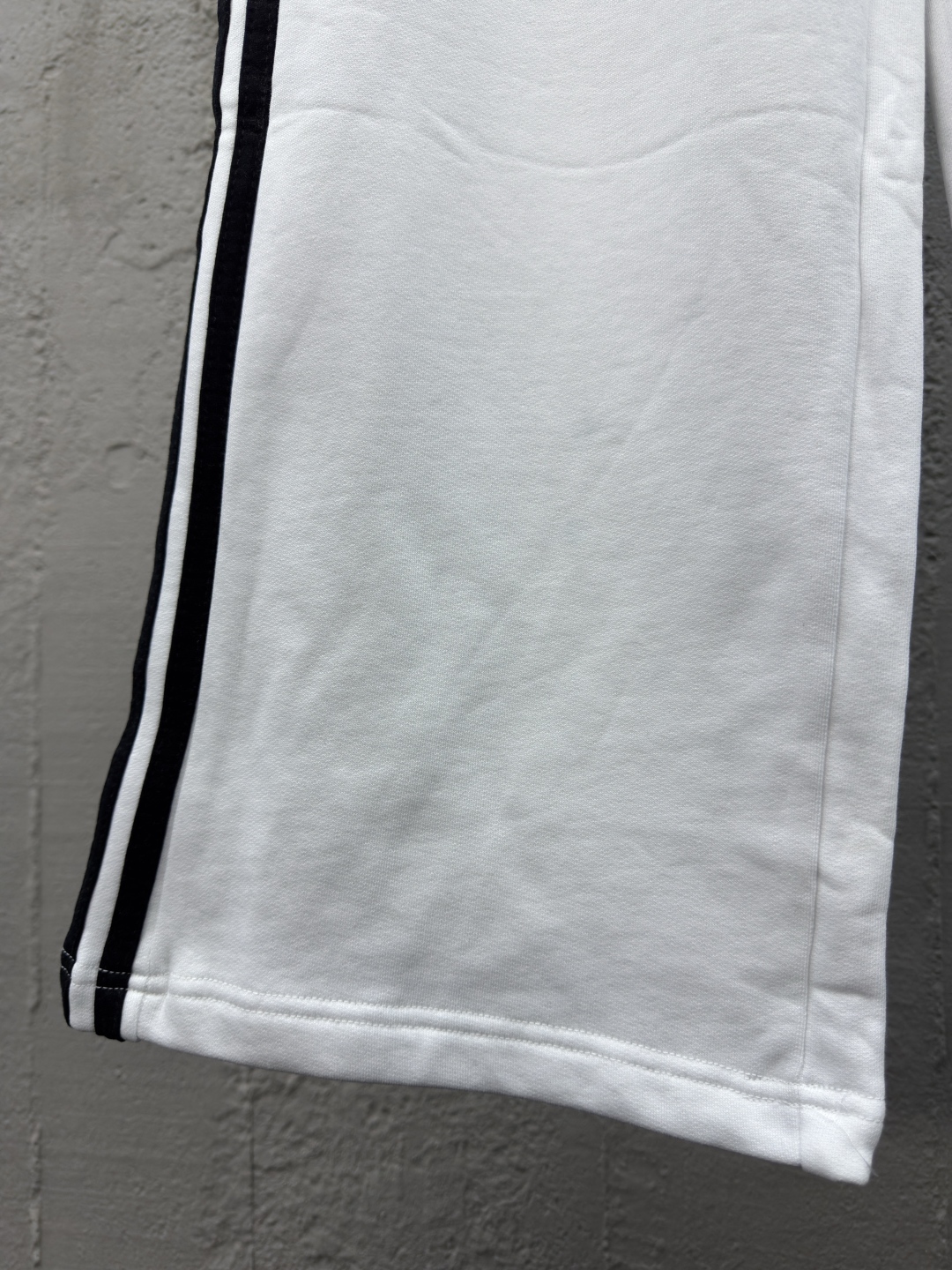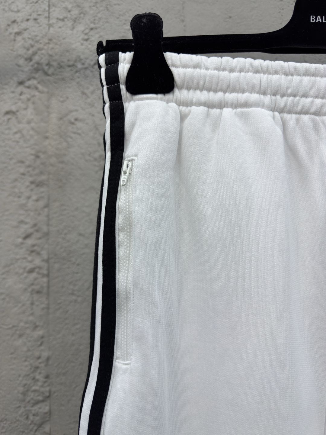 工艺说明:裤头采用弹性松紧边 伴随着松紧绳设计做工精细可以调节 YB定制经典logo标识主标 轻奢高级 经典三叶草☘️刺绣logo 为高密度刺绣 字体圆润均匀 裤身采用经典三条杠拼接设计 进口机器车线 整体走线干净整洁 线距密度一致 一线工艺水准 整体走线平直细腻,面料舒适柔软,颜色一致无色差 能与同款搭配营造时尚造型,驾驭各种场合,定制辅料,三标齐全,男女同款!
