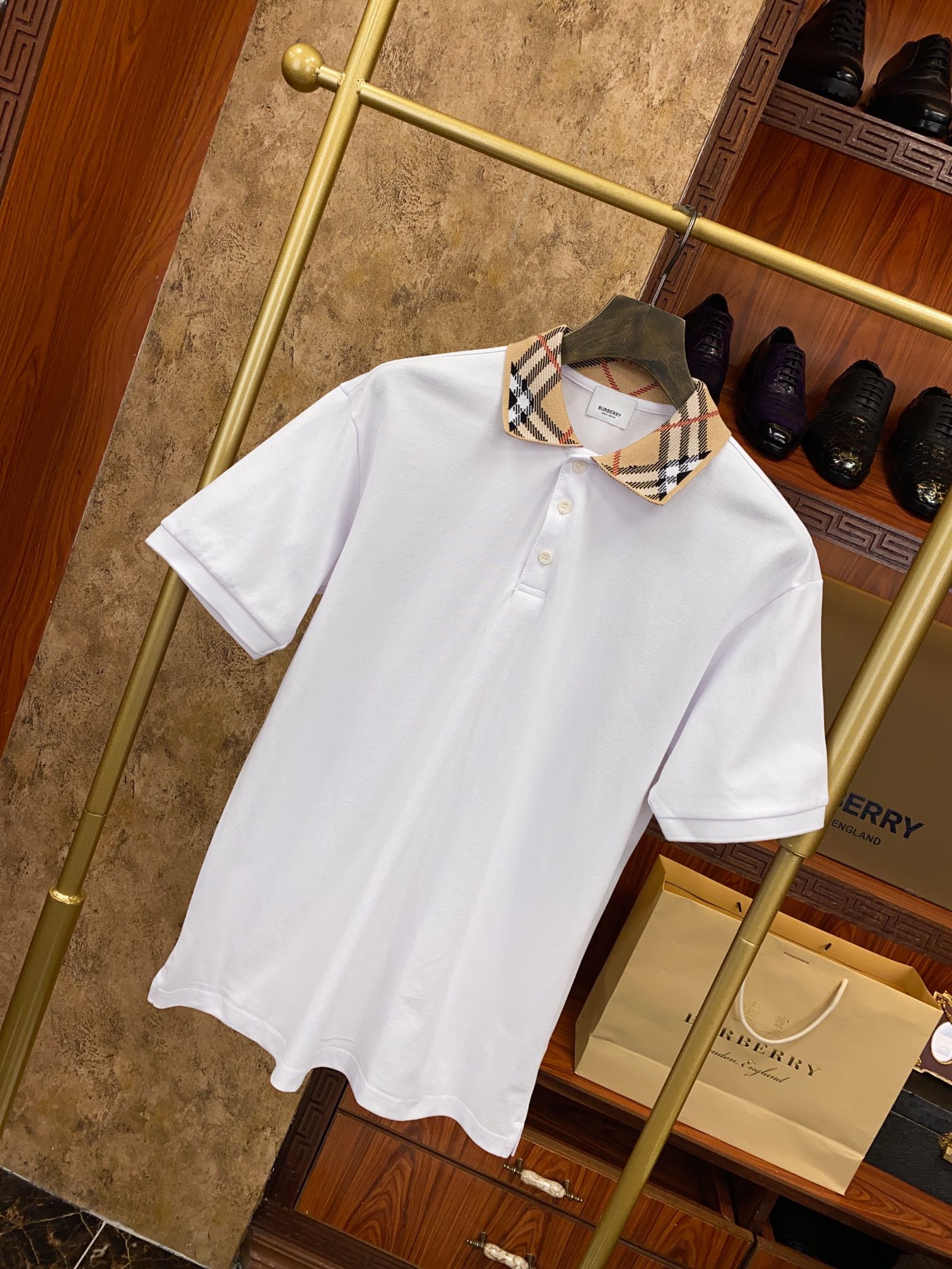 BBR巴宝利精品好货! 我们老板对polo有非常严格的要求,此批出厂公司外贸原单,品质杆杆的❕ 翻领镶边珠地网眼棉Polo衫短袖,原版珠地棉面料,可商务可休闲!2025新款高品质翻领POLO衫,经典刺绣字母提,做工精致,官网同步,时尚百搭