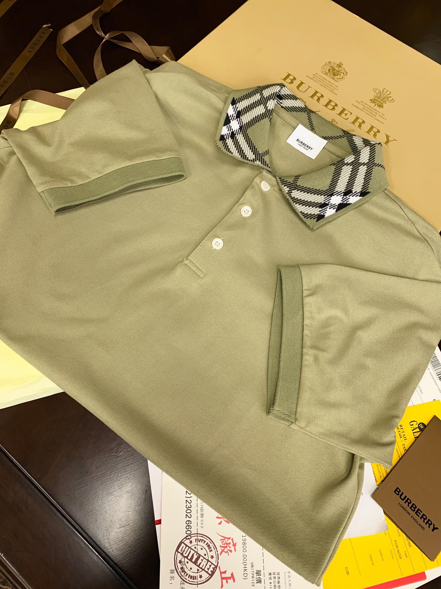BBR巴宝利精品好货! 我们老板对polo有非常严格的要求,此批出厂公司外贸原单,品质杆杆的❕ 翻领镶边珠地网眼棉Polo衫短袖,原版珠地棉面料,可商务可休闲!2025新款高品质翻领POLO衫,经典刺绣字母提,做工精致,官网同步,时尚百搭