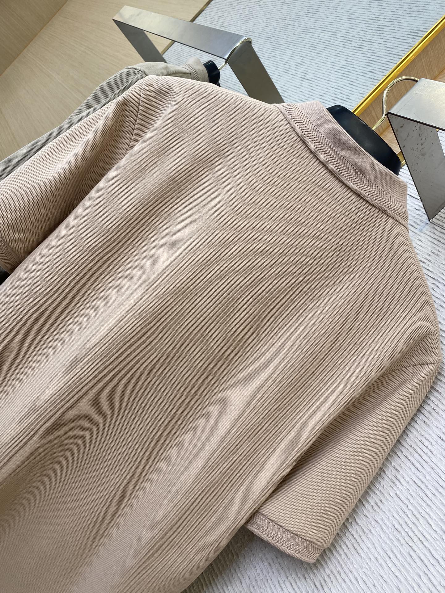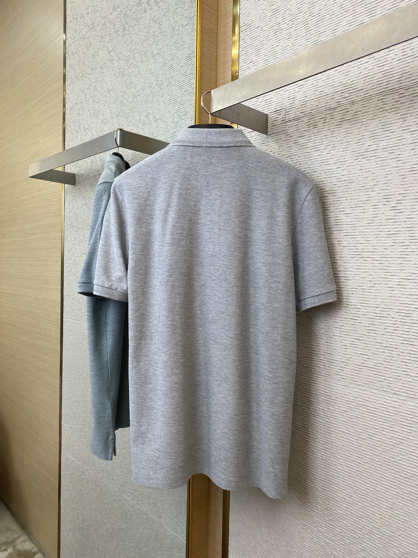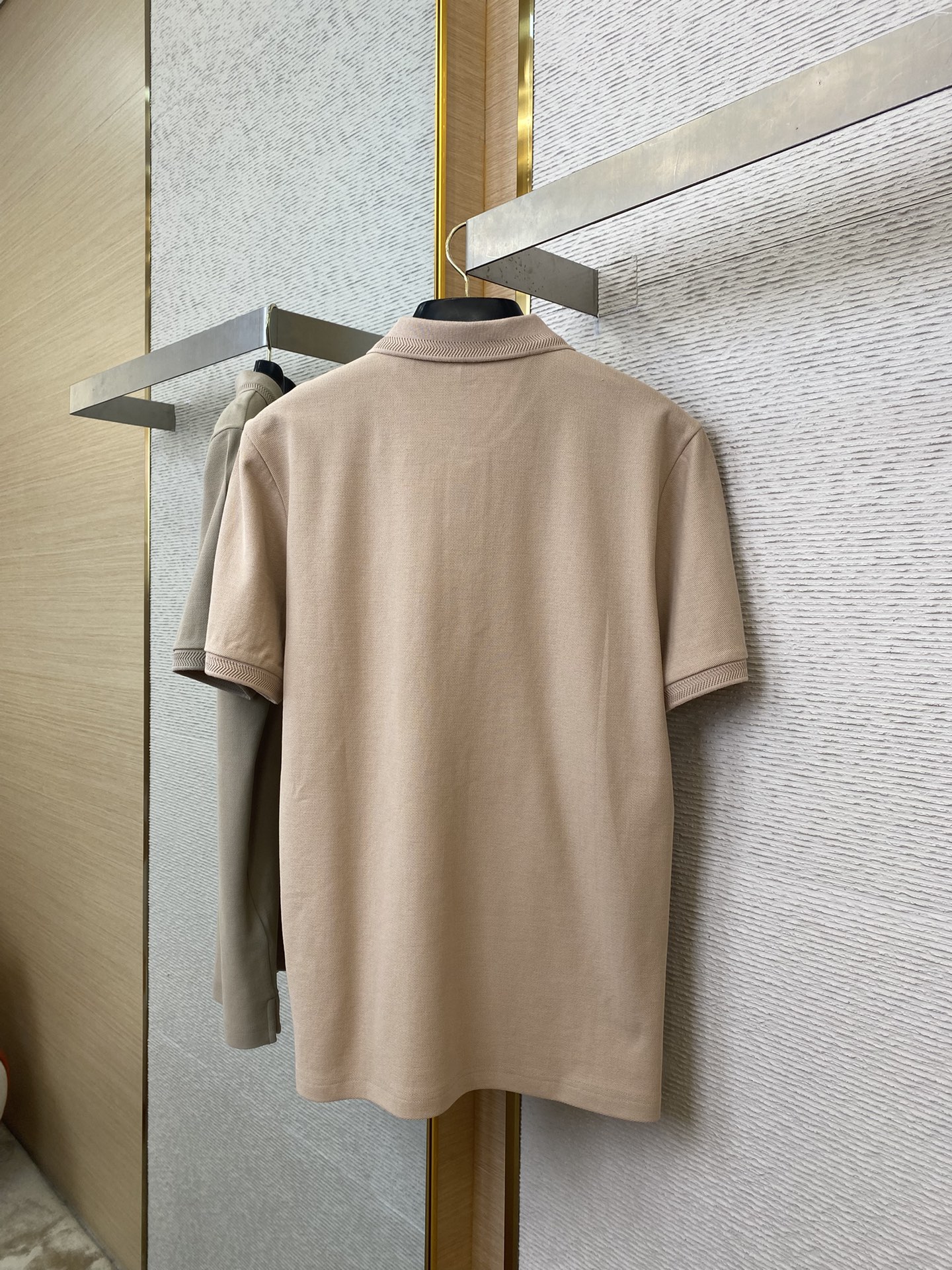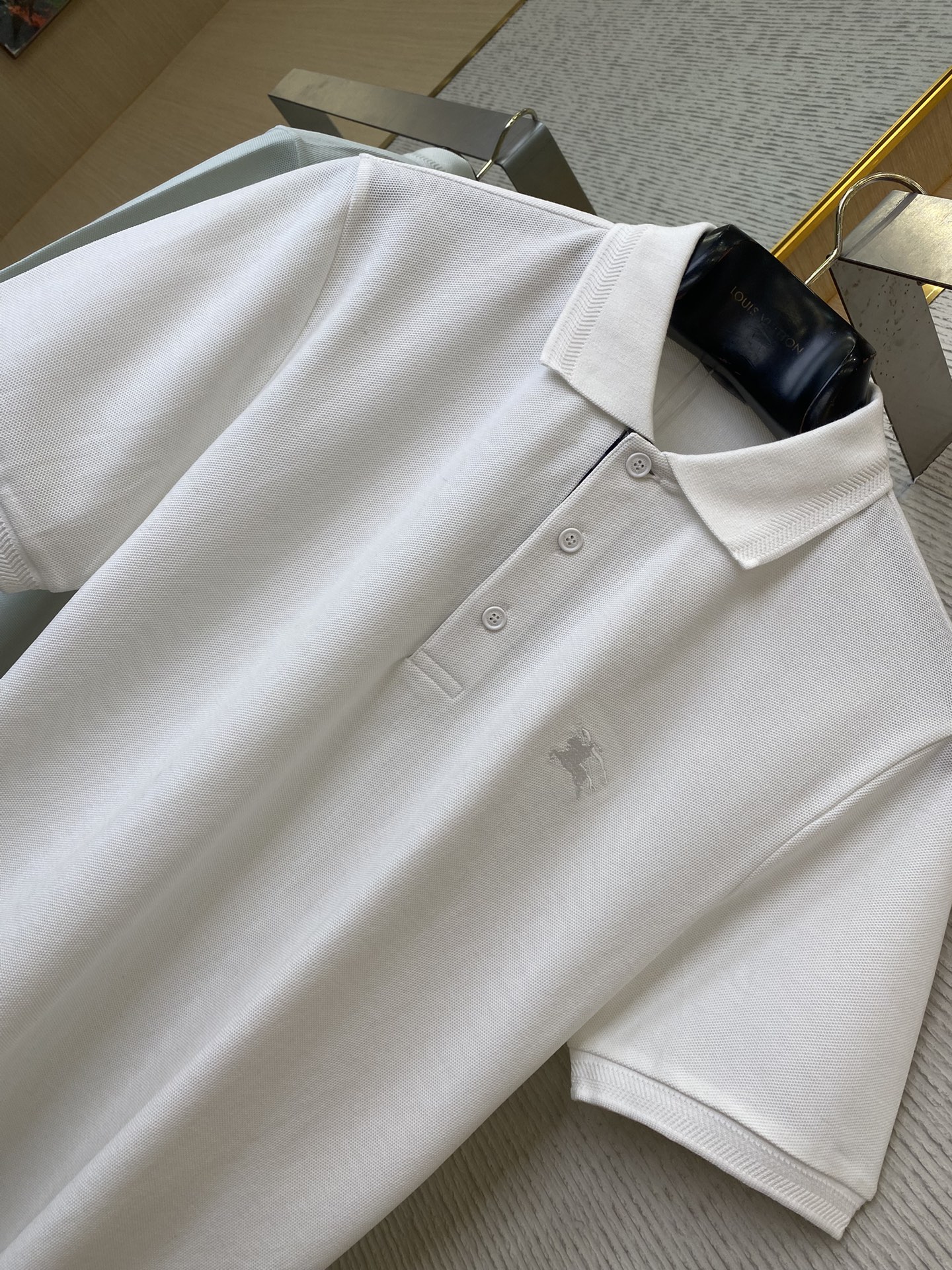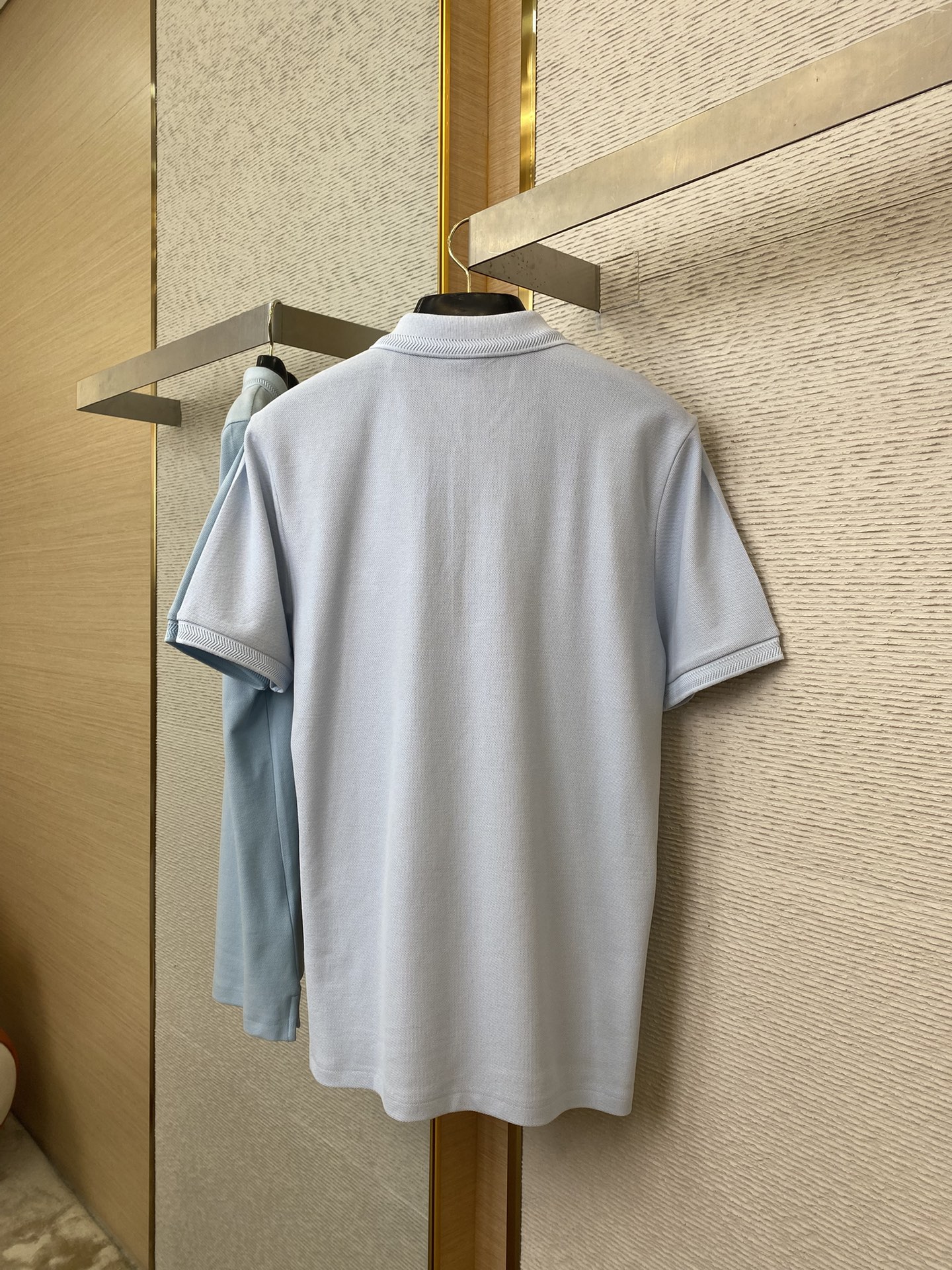 YB购入打版,采用定制选用棉质珠地网眼布面料打造,点缀同色系马术骑士徽标(EKD)刺绣。开襟处搭配Burberry格纹内衬,呈现修身版型,刻字纽扣开襟