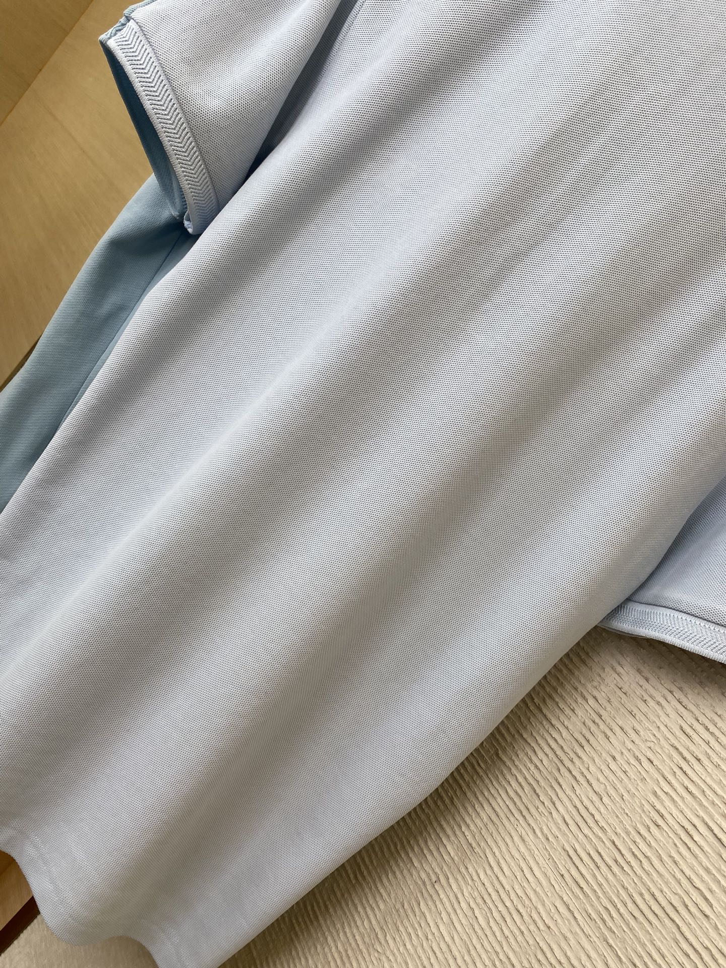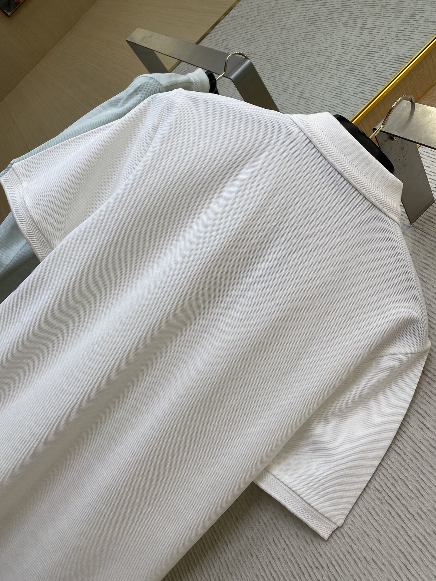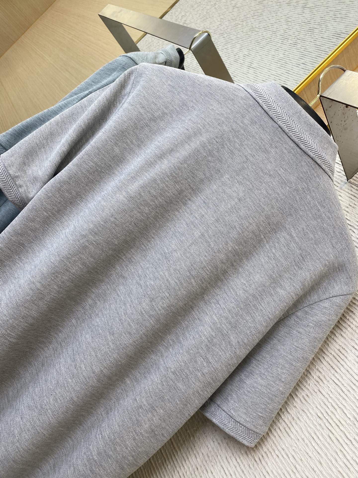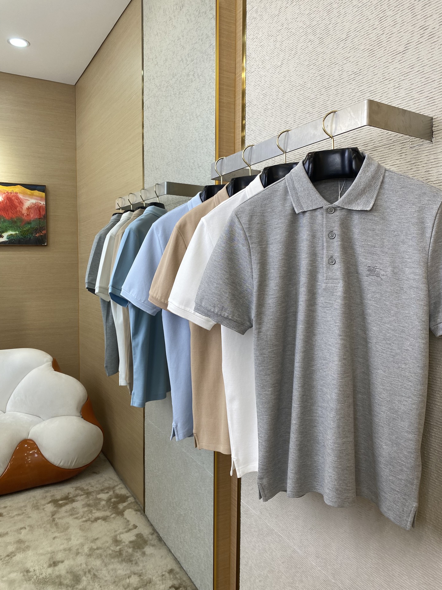 YB购入打版,采用定制选用棉质珠地网眼布面料打造,点缀同色系马术骑士徽标(EKD)刺绣。开襟处搭配Burberry格纹内衬,呈现修身版型,刻字纽扣开襟