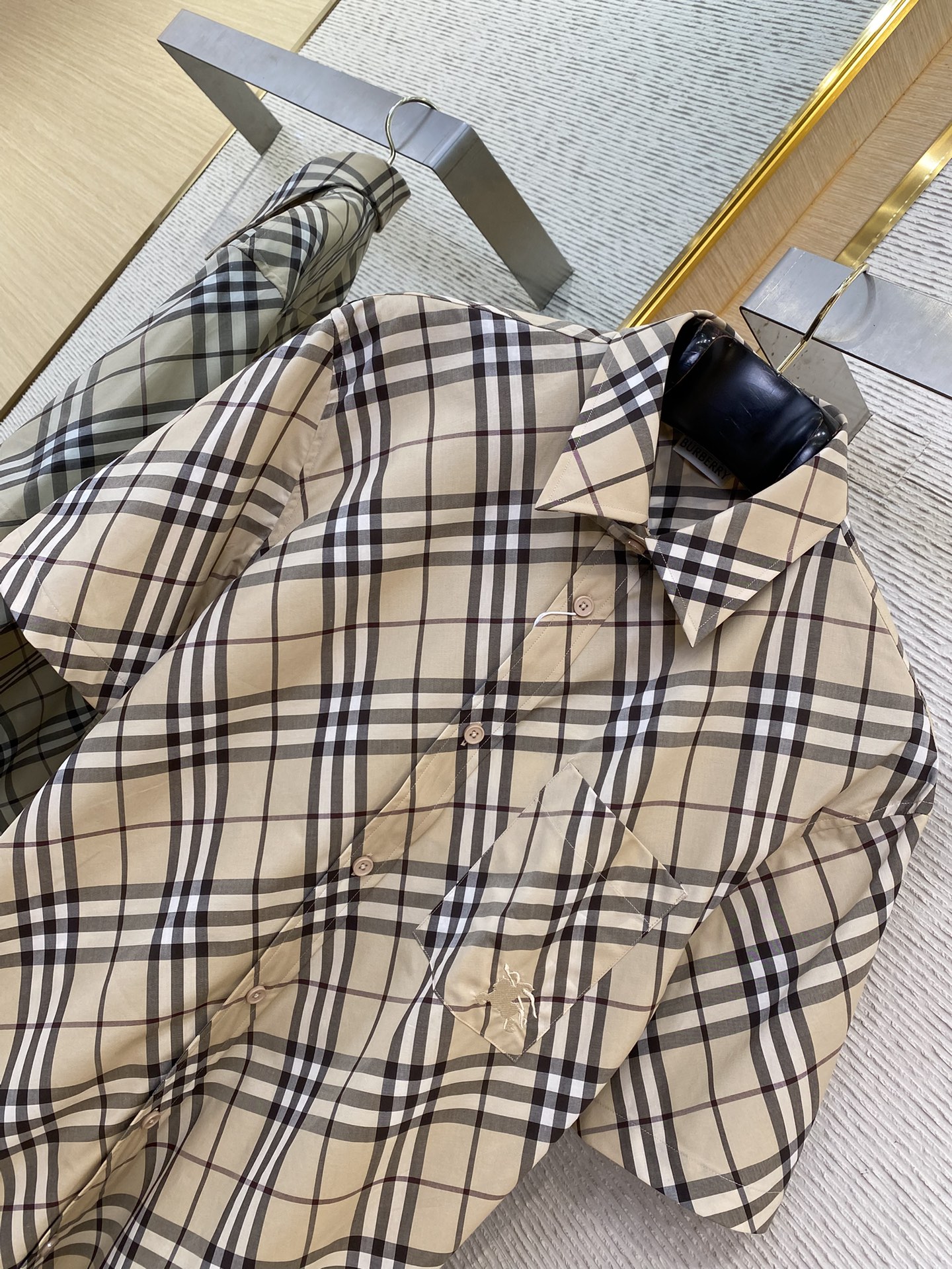 YB购入打版,采用进口原版面料,面料舒适柔软,亲肤透气,通体饰以品牌经典格纹,以胸袋点缀品牌标识刺绣,翻领设计,档次极高,舒适百搭,能与多类型服饰搭配营造时尚造型,定制辅料,三标齐全,男女同款! ⚠️洗涤方式:建议干洗或反面冷水单独快速机洗 ⚠️售后无忧-顶级服务、效率、品质! ⚠️正确价格请添加客服微信咨询 ➖➖➖➖➖➖ ⚠️ 版型 宽松 ⚠️ 颜色 卡其 ⚠️ 尺码 S/M/L/XL