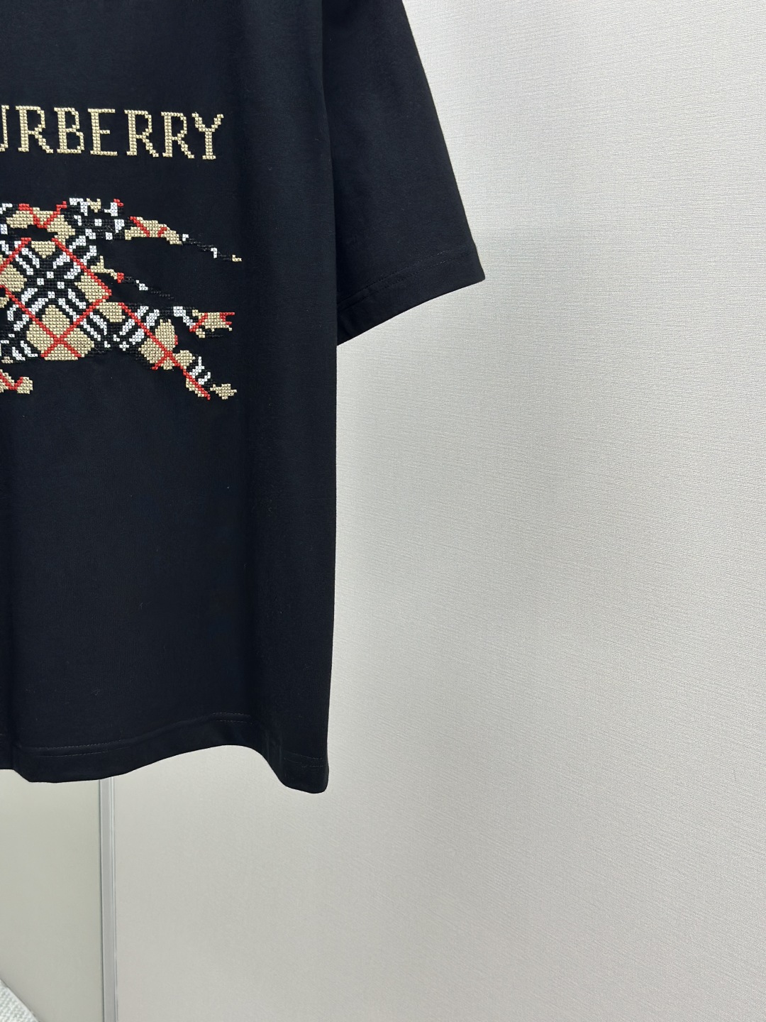 装饰十字绣工艺徽标,通过细小颗粒密铺,形成类似米粒的立体质感;以十字绣的像素化质感能呼应格纹的几何规律性,强调平面几何秩序感和增强复古感。米粒刺绣与十字绣的搭配,通过工艺反差营造视觉记忆点。确保刺绣平整度;针脚密度需与徽标线条精准匹配。