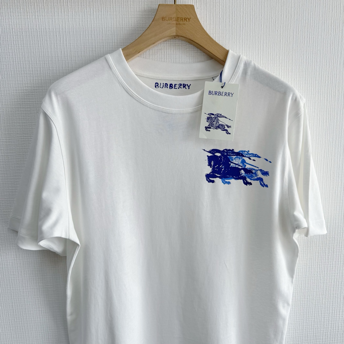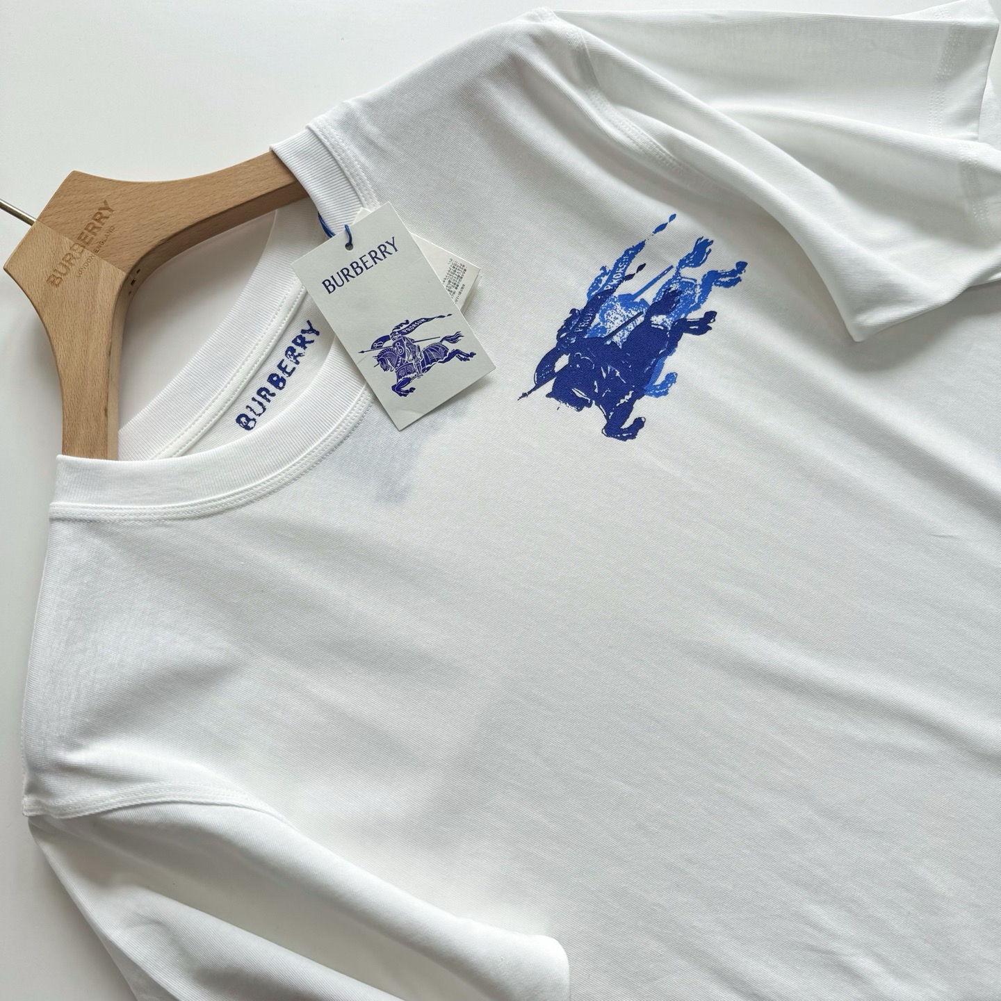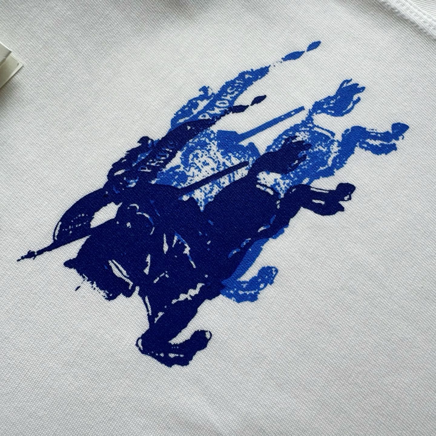 bbr 25ss重影战马短袖 26支双纱纯棉洗后260g上手棉感偏强,透气性吸湿性强,双网板叠加水浆印花工艺,用不同颜色不同形状网板重复印刷固定位置,战马徽标以重影效果展现,设计感十足。后领口处单独开发网板刷浆小战马骑士logo size:xs/s/m/l