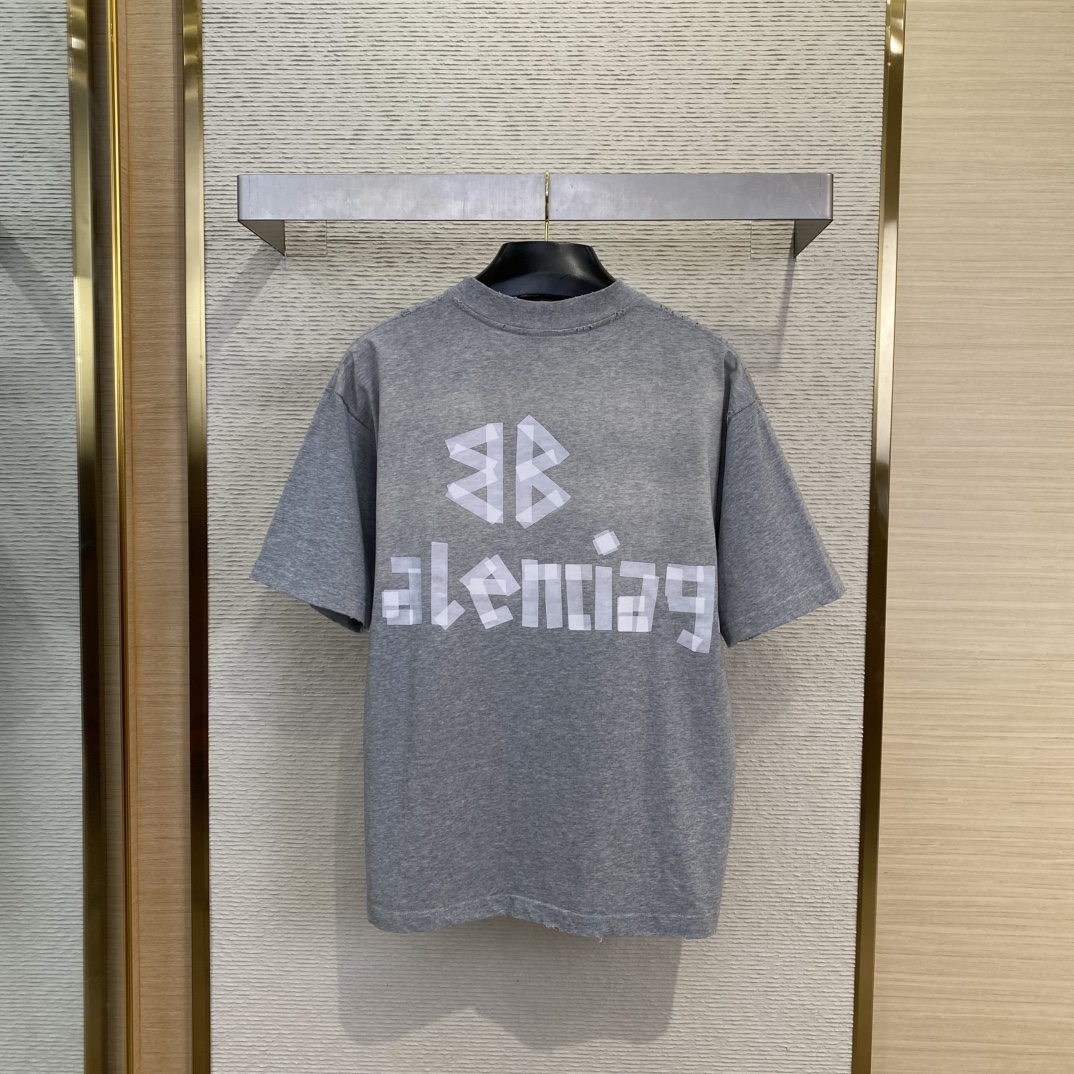 BLCG巴黎世家美纹胶带印花短袖T_6972