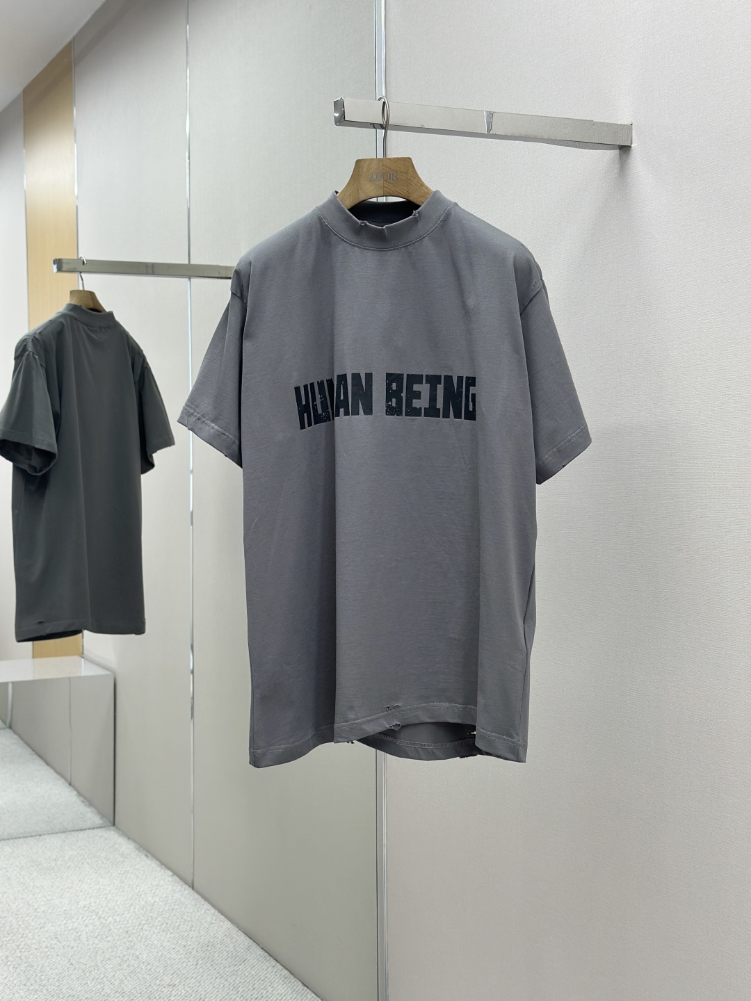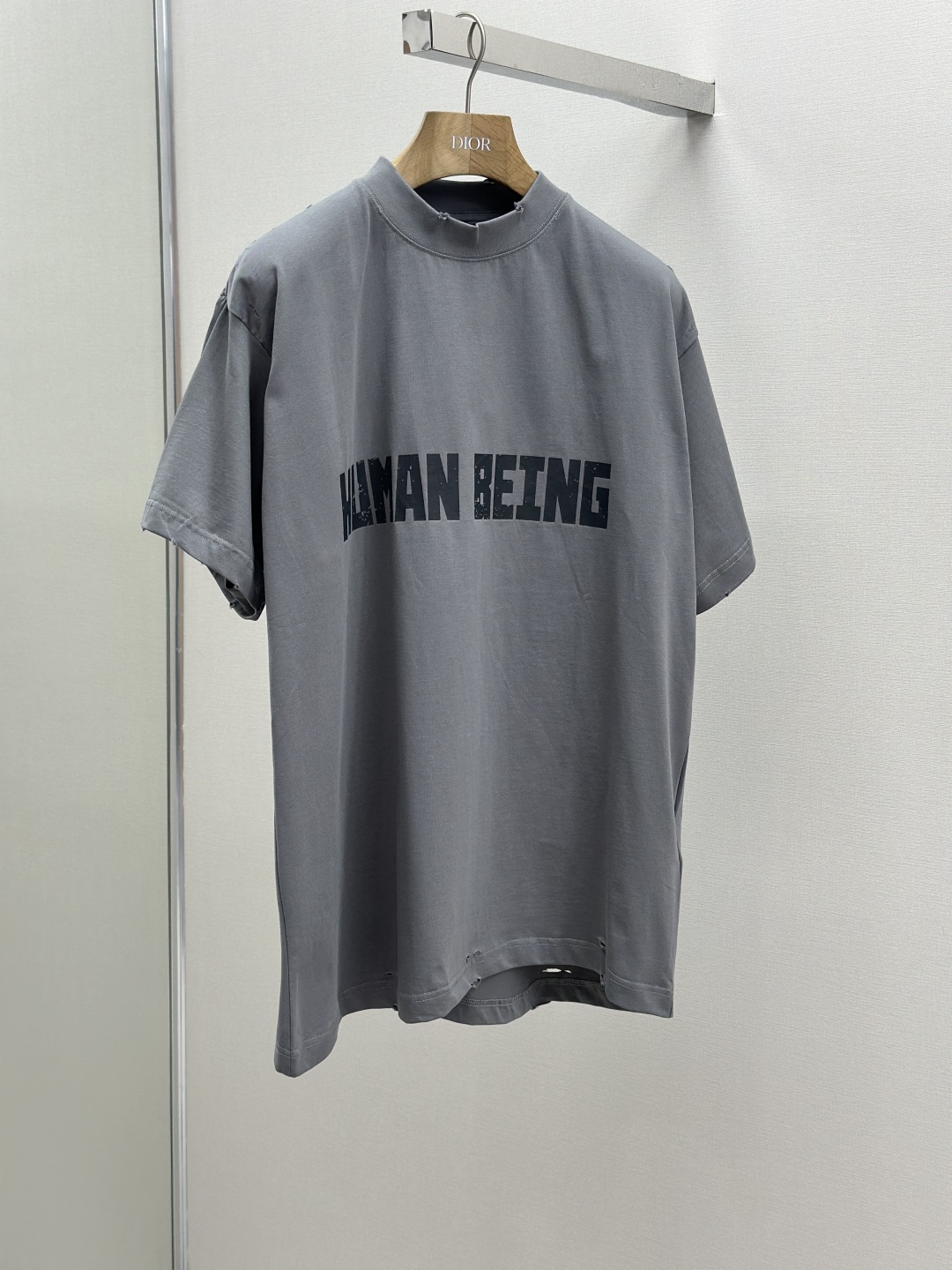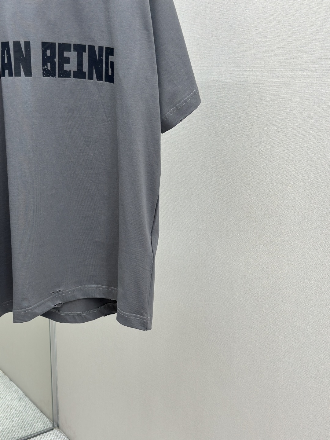 采用平纹针织面料,正面饰以human being艺术作品印花,⚠️短袖不对称底部