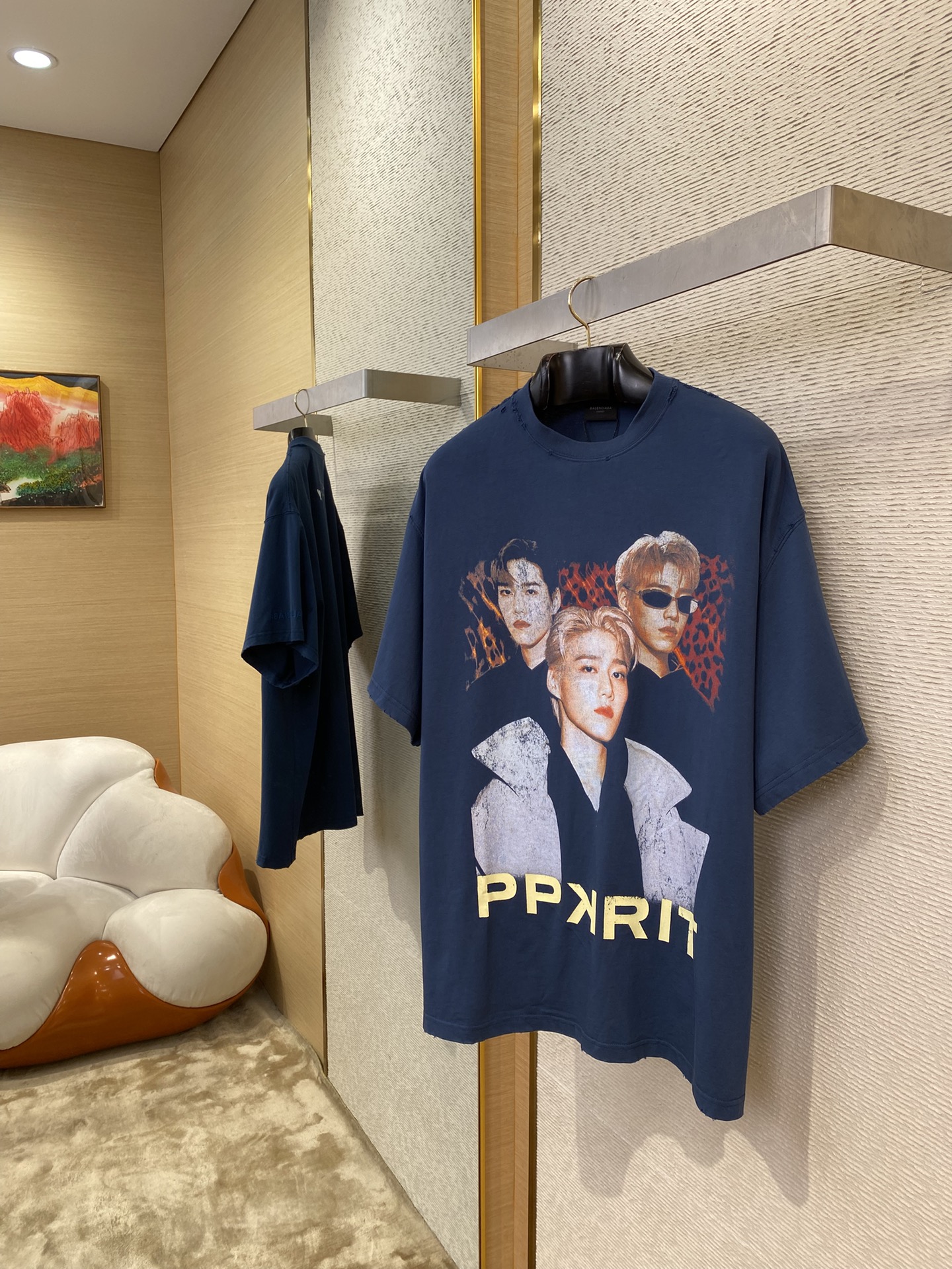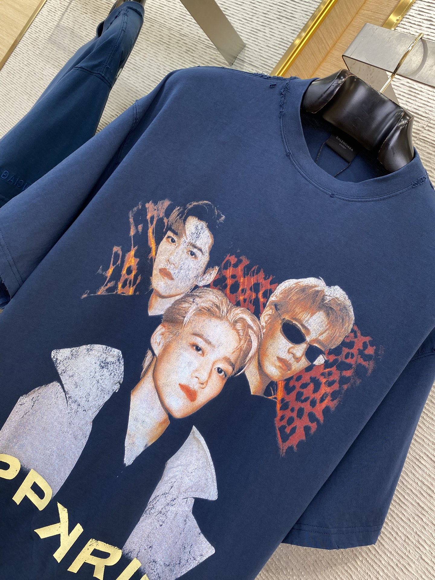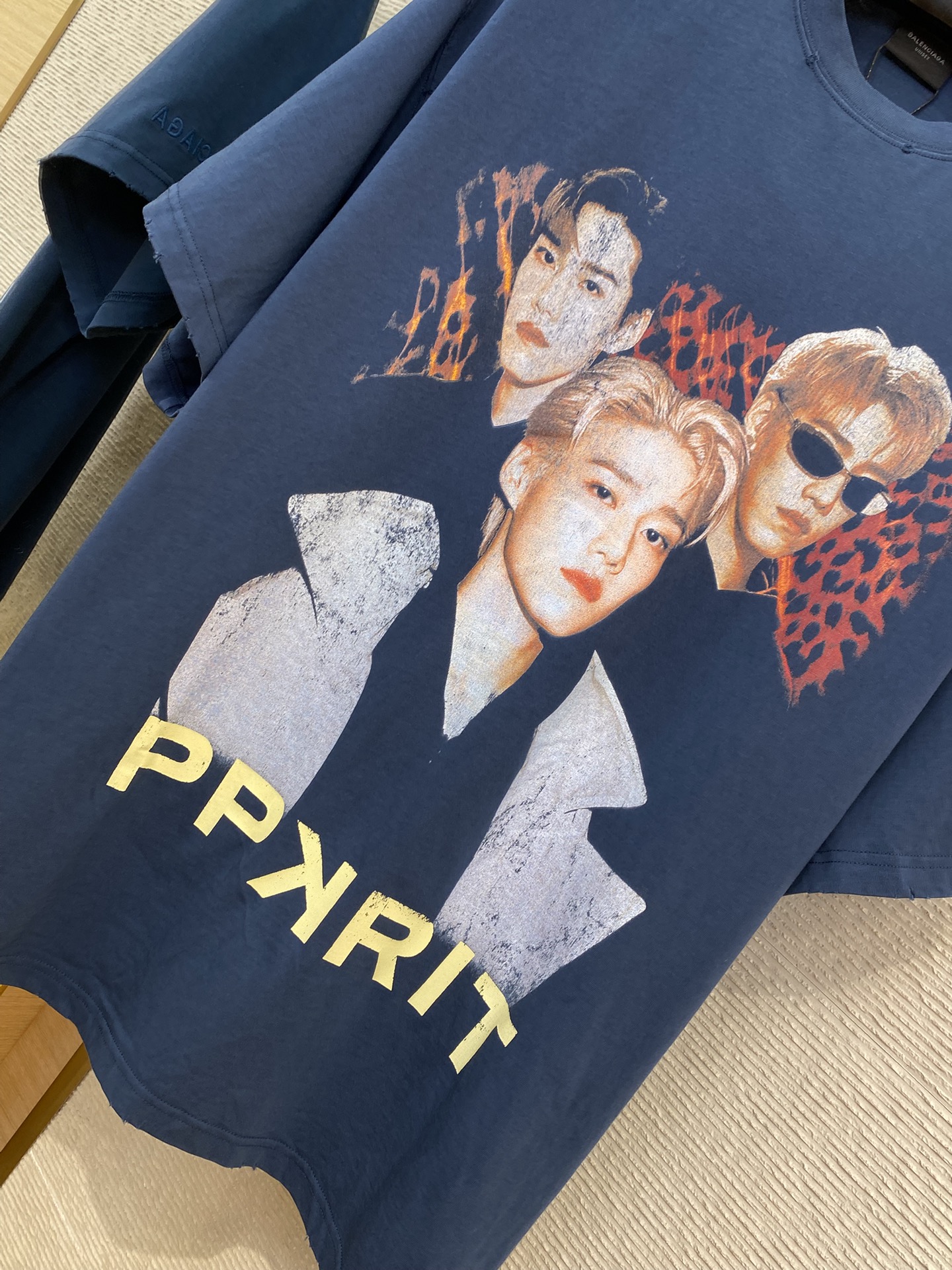 BLCG巴黎世家PP痛衣人像磨烂做旧短袖T恤