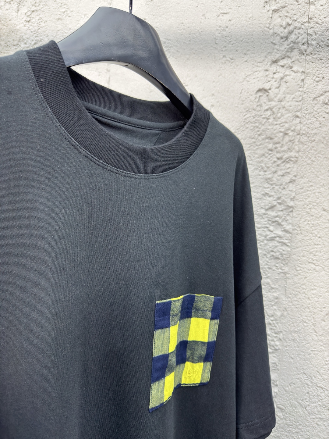 BOTTEGA VENETA 格子口袋短袖 工艺说明:面料采用梭织运动面料 白色捆条为面料切割 刺绣采用进口田岛机 精密绣花,整体走线平直细腻,面料舒适柔软,颜色一致无色差 能与同款搭配营造时尚造型,驾驭各种场合,定制辅料,三标齐全,男女同款! ⚠️颜色:黑色 ⚠️Size:S/M/L