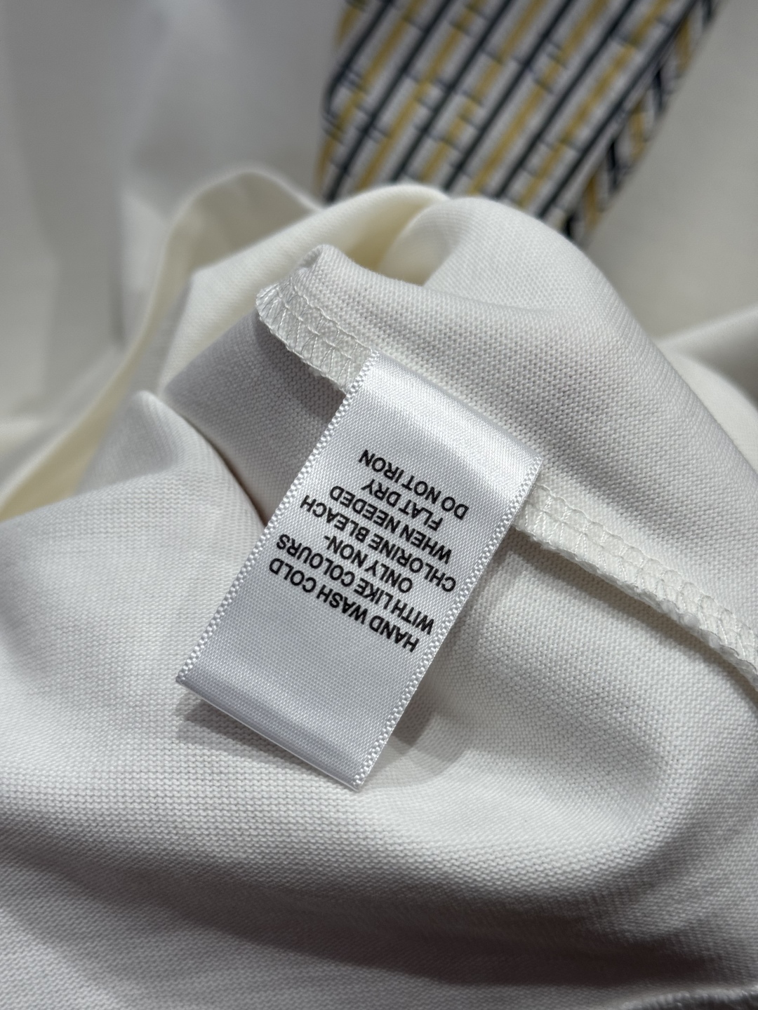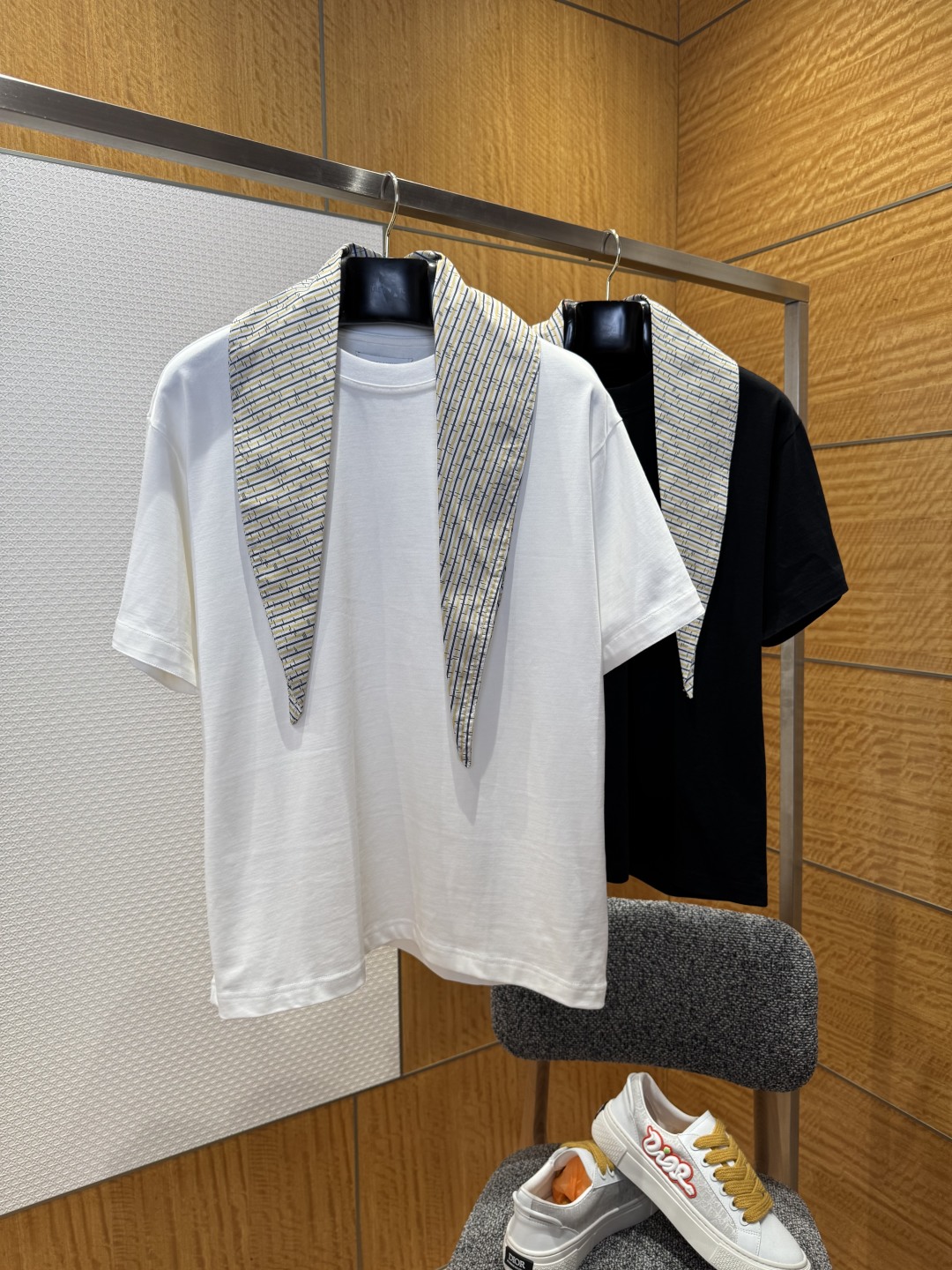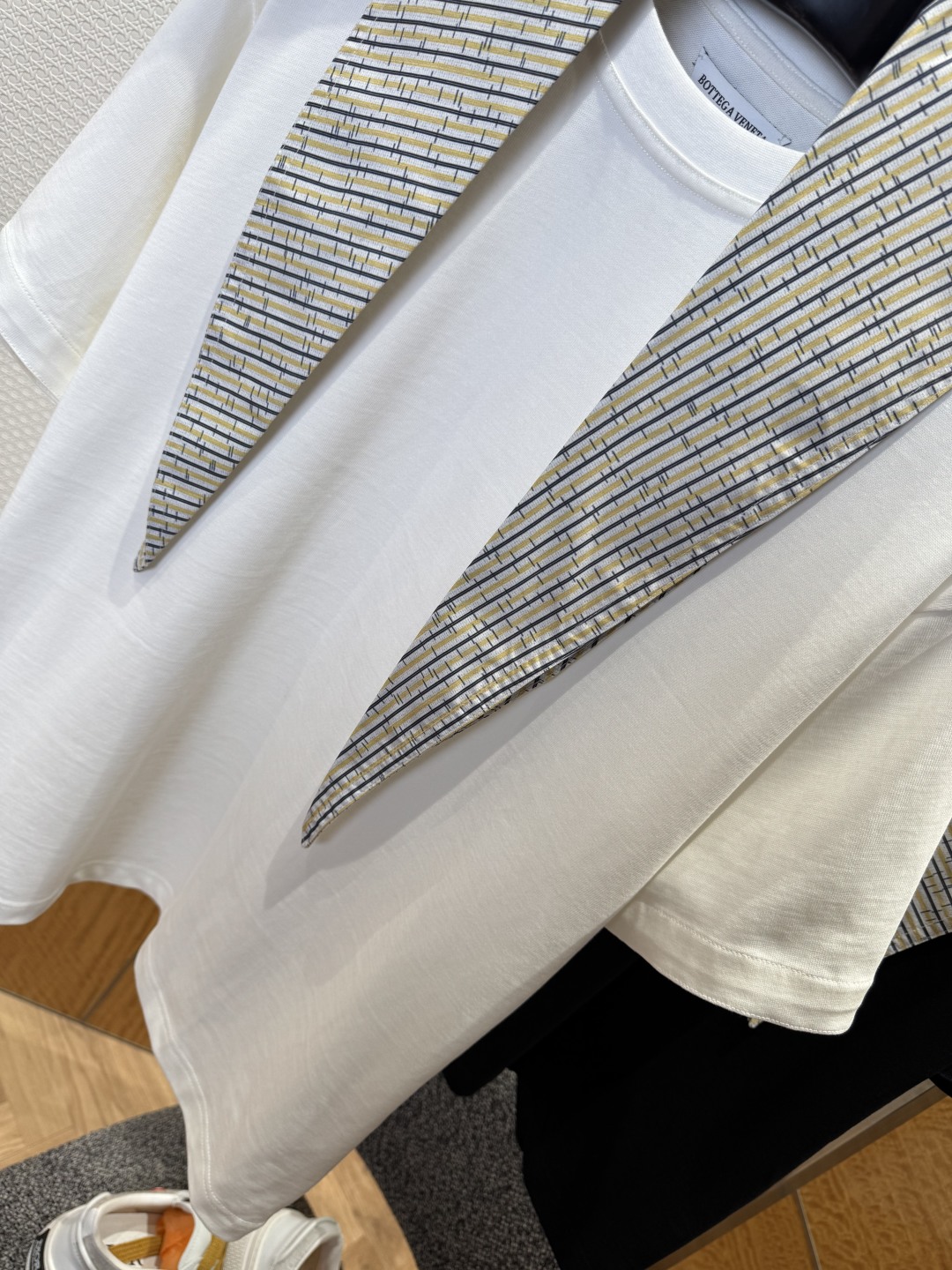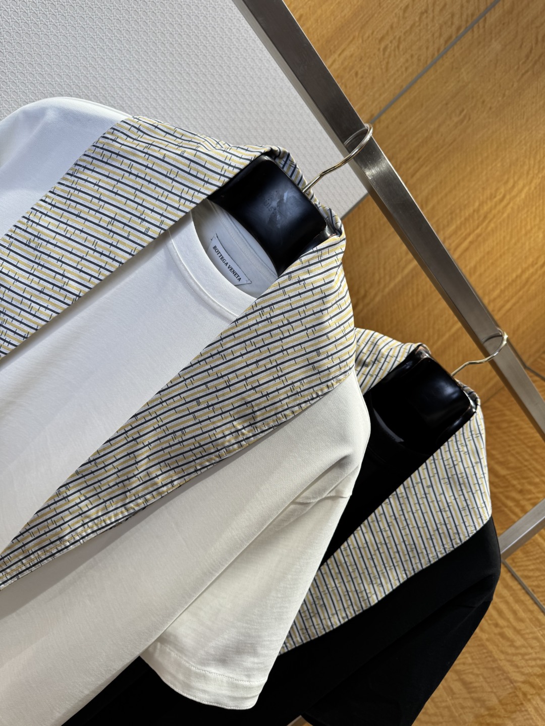 BOTTEGA VENETA葆蝶家条纹领巾短袖T恤 ———————— 采用定制纯棉材质,面料舒适柔软,亲肤透气 ,领口以条纹领巾做装饰,领口、袖口、下摆等部分都有精细双针走线的缝制,能与多类型服饰搭配营造时尚造型,定制辅料,三标齐全,男女同款! ————————8826088 材质:棉 版型:宽松 颜色:黑色/白色 尺码:S/M/L/XL