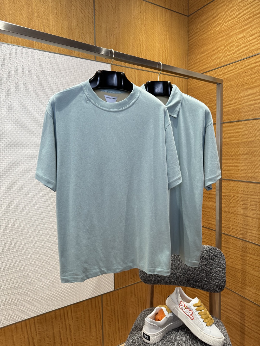 BOTTEGA VENETA葆蝶家湖水绿短袖POLO衫 ———————— 采用定制棉质面料匠心制作,面料柔软又舒适,亲肤,透气性好,里衬以米黄色装饰,袖口与下脚口面和里都采用了特殊专机坎车锁边而成!线迹均匀干净利落 不易变形,能与多类型服饰搭配营造时尚造型,定制辅料,三标齐全,男女同款! ————————88240/28088 材质:棉 版型:宽松 颜色:湖水绿 尺码:S/M/L/XL