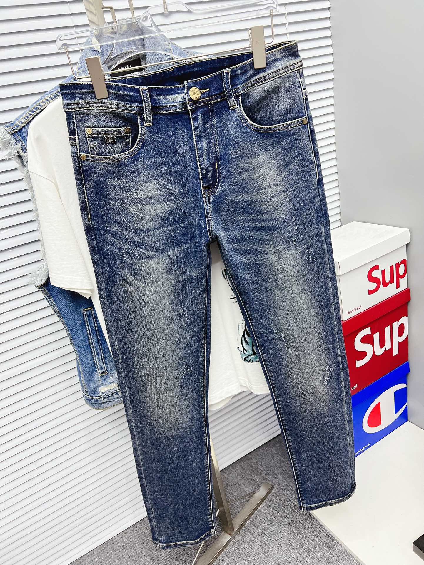 Burberry 巴宝莉 男士丹宁牛仔裤,官宣画册海报穿搭款! 客供高级进口的丹宁原色面料,特选日本冈山纯正13oz 盎司牛仔布料,重磅环保植物酵素水洗工艺,肌理有着淡淡的复古色彩,相当漂亮,极符合秋冬的配色,面料经过水洗后柔软细腻,但筋骨感极强,且略带弹力,提供了绝佳的舒适体验,通身无任何工艺元素破坏,保留了最纯粹的丹宁本色!通身细节完美如斯,精湛且考究,最新的腰部皮标彰显了品牌特质,五金配件、皮标、走线无不体现出匠心工艺!版型剪裁完美,提臀修身效果绝佳,可轻松横扫衣橱任何的上装搭配,兼容性广泛,满足于日常各种穿搭,上身型款十足,于品质控及1V迷控者必入型裤装!