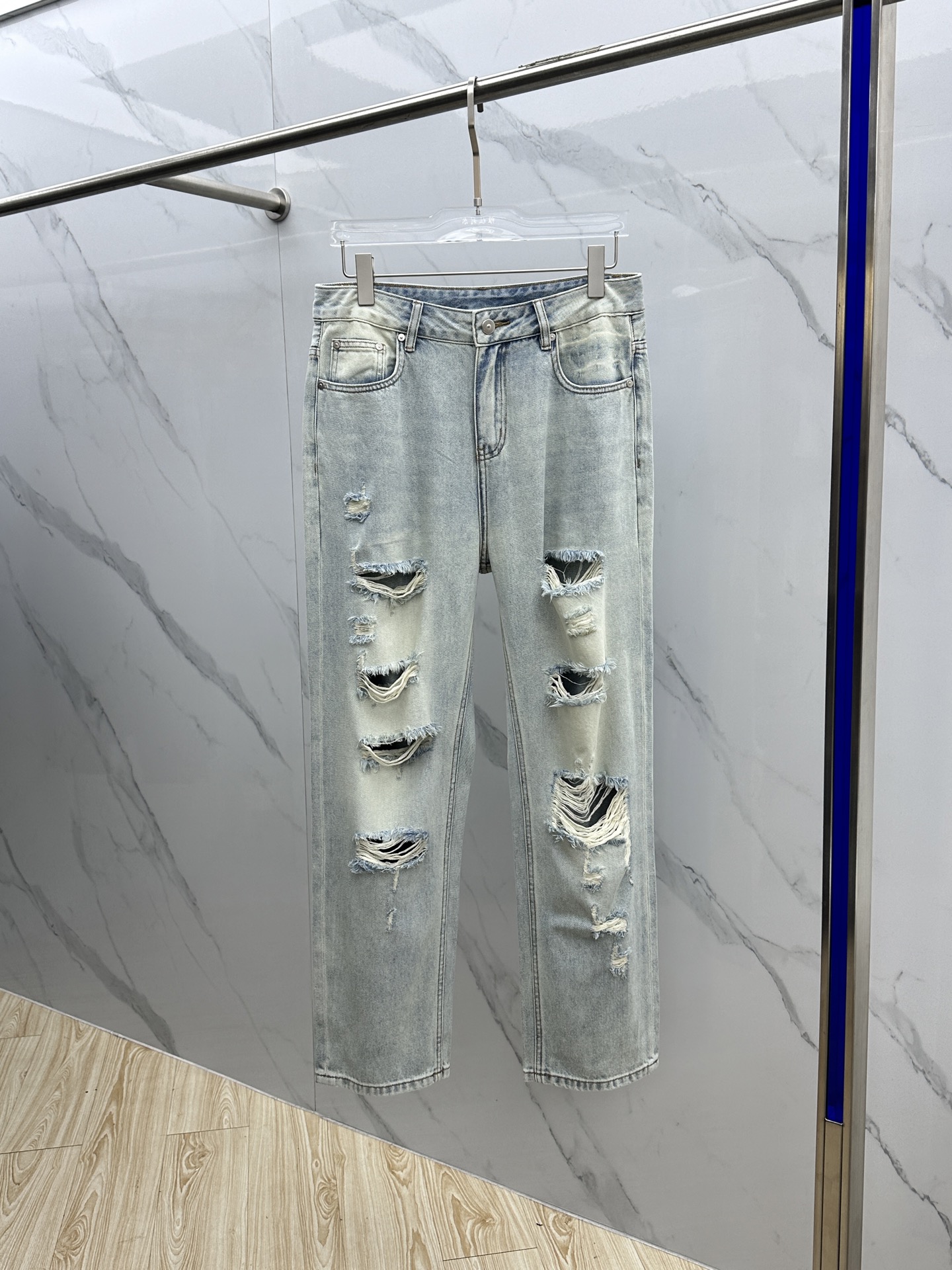 BURBERRY·巴宝莉 高端定制、2025早春最新款阔腿直筒牛仔裤 柜台同步发售 进口固色面料 原版定制复刻 客供五金辅料 原单品质 重工洗水 做工走线精细 上身绝佳!优选单品 必须自留 推荐指数⭐⭐⭐⭐⭐ ADW出品 码数:30-38无35.37