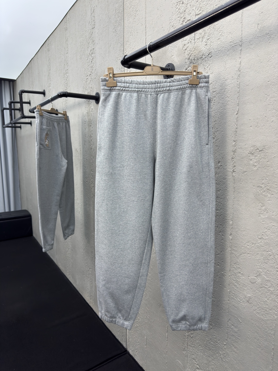 工艺说明:选用轻盈的翻面绒棉质面料,以棉纤维为主要原料,腰部采用松紧带设计,搭配抽绳调节,运用三针五线工艺缝合腰部松紧带和裤腿,使其更加牢固、平整和美观具有良好的弹性。两侧设有口袋,边缘处均做了套结,臀部位置设有长方形口袋也做了套结,后贴袋上饰有品牌经典的格纹战马徽标贴花.扁牛筋收脚口,整体走线平直细腻,面料舒适柔软,颜色一致无色差 能与同款搭配营造时尚造型,驾驭各种场合,定制辅料,三标齐全,男女同款!