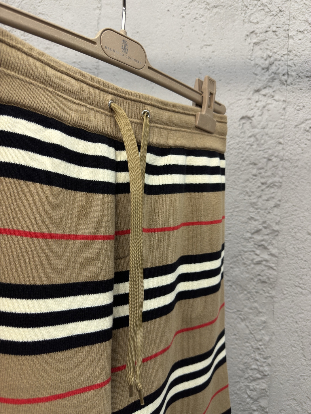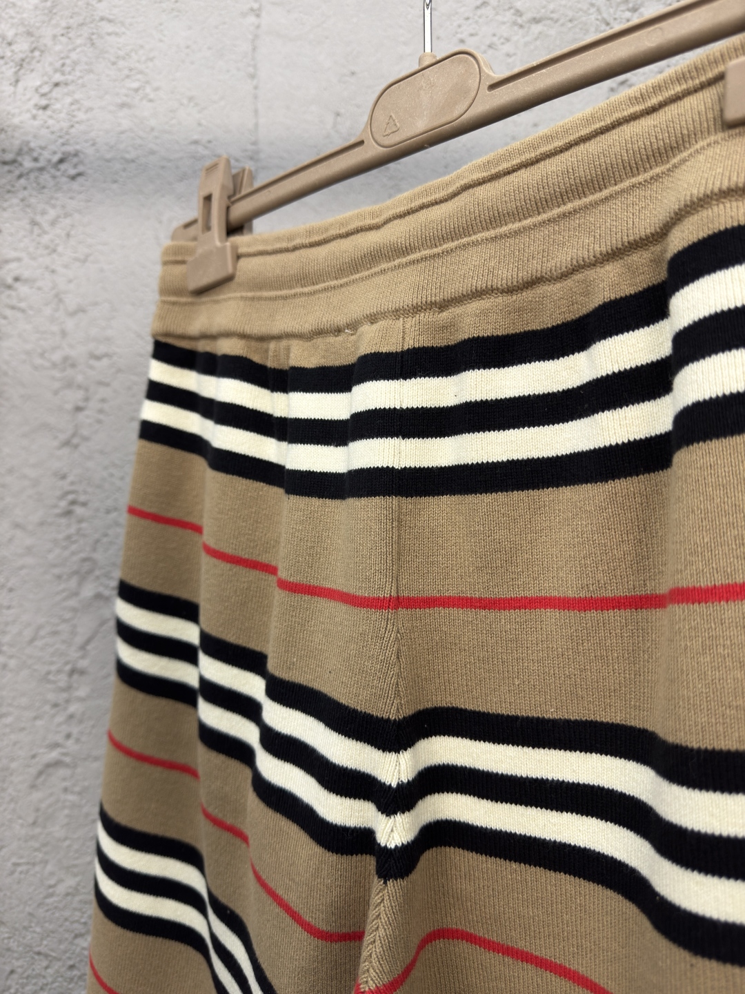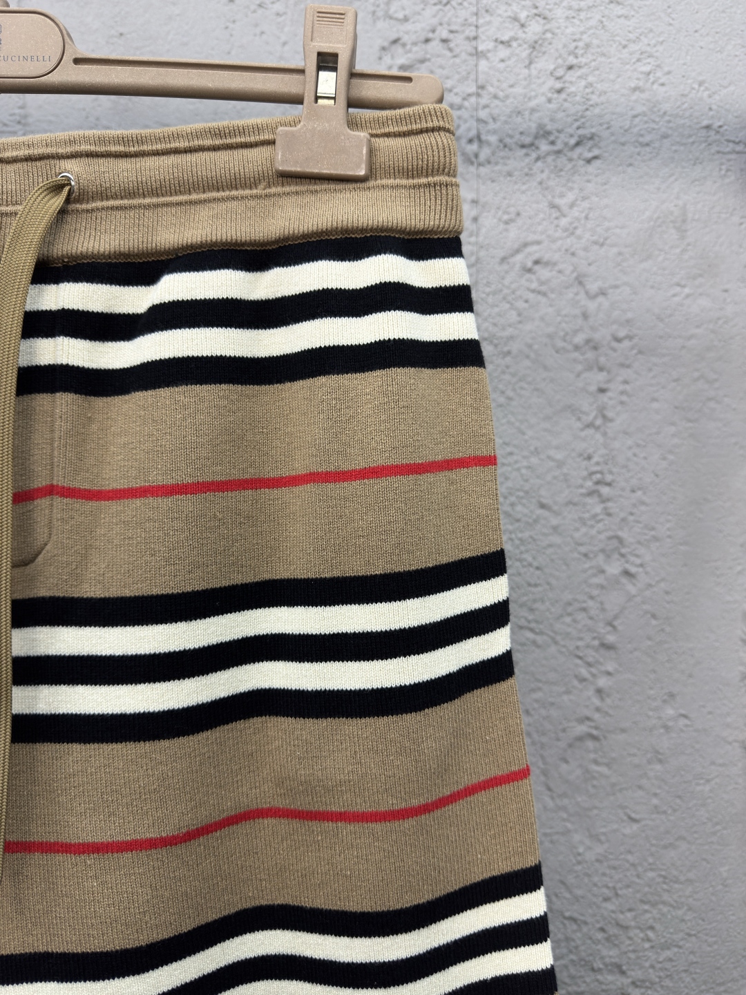 BURBERRY 条纹羊毛短裤 工艺说明:面料采用 100%美利奴羊毛 柔软亲肤 双面针法有一定的厚度 透气性定制定染的羊毛色织面料650克,整体走线平直细腻,面料舒适柔软,颜色一致无色差 能与同款搭配营造时尚造型,驾驭各种场合,定制辅料,三标齐全,男女同款! ⚠️颜色:杏色 ⚠️Size:XS/S/M