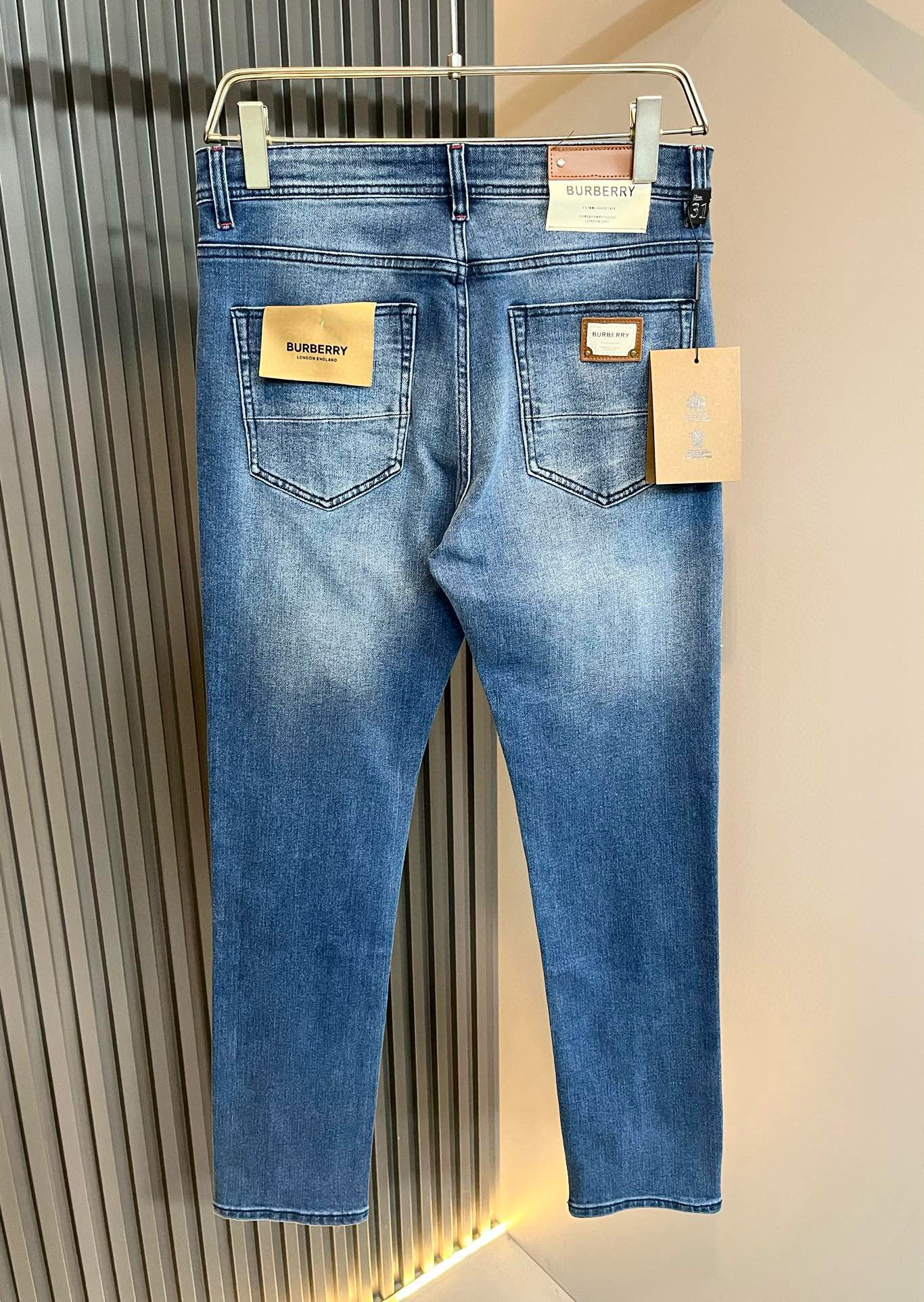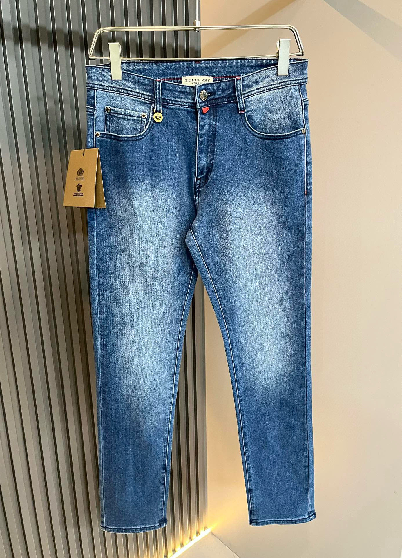 BURBER*Y巴*莉 2025早春新品男士高端休闲百搭牛仔裤!对于BUR粉丝来说,这样大气的经典设计足矣一眼种草,是今年BUR所有牛仔裤当中最帅的一个系列,我只需要看一眼就知道,这绝对会是一个引起轰动的爆款,而且全网风靡,经典的修身立体剪裁版型打造,配置了最新的logo图案腰牌工艺设计!腰牌皮革logo图案设计!极具代表性腰牌修饰!简单轻松的彰显出品牌魅力所在,自然而然的呈现规格,档次,时髦以及新潮效果,搭配性能满分,轻松穿出高级感与高端效果!顶级的进口日本洗水牛仔棉质打造,并舒适透气感满分,且垂感自然,适合一年四季的穿搭所需!!此款牛仔裤采用了立体裁剪小直筒版型打造,其单配魔力与实穿性是无可厚非的,不管你是日常穿搭还是高街出镜都是不二之选,超具魅力!更是彰显了地地道道的的BUR原味,同时也是完美的展现了其规格和段位所在!很显然,这是一款绝对要收的重磅好货,不管你是不是BUR的粉丝,此款你都必须要收,极力推荐的好货!尺码:29-40