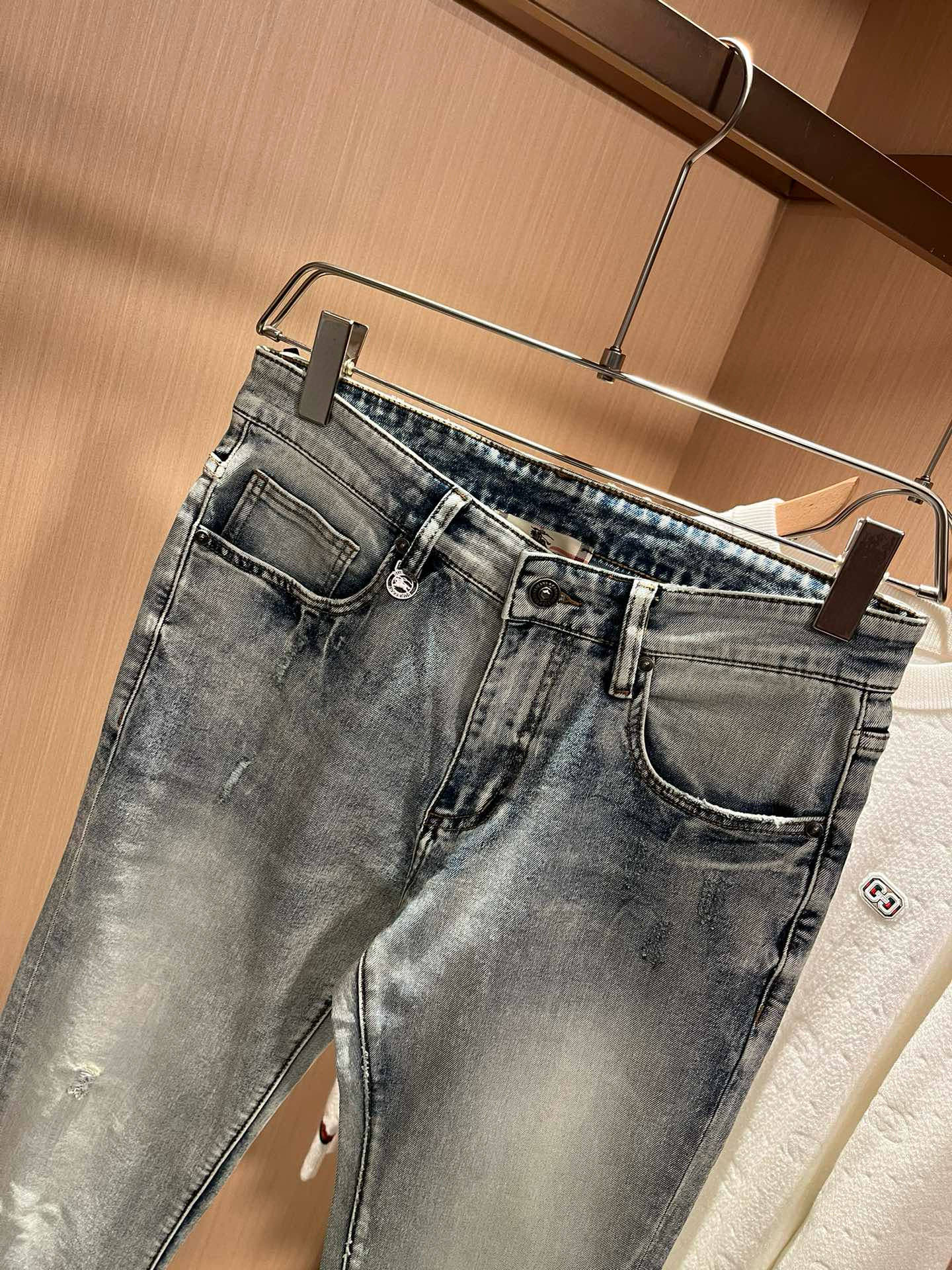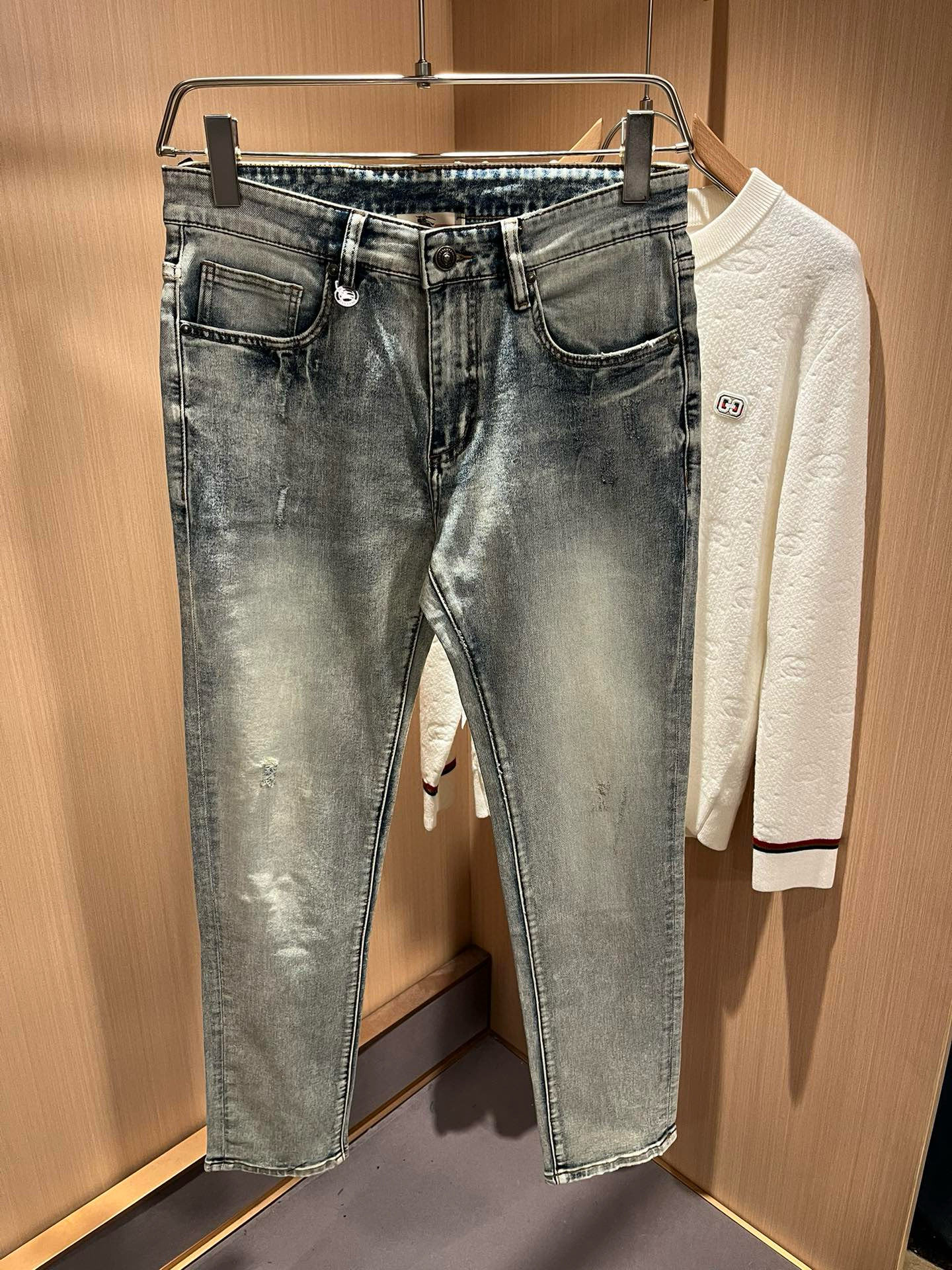 BURBER*Y巴*莉 2025早春新品男士高端休闲百搭牛仔裤!对于BUR粉丝来说,这样大气的经典设计足矣一眼种草,是今年BUR所有牛仔裤当中最帅的一个系列,我只需要看一眼就知道,这绝对会是一个引起轰动的爆款,而且全网风靡,经典的修身立体剪裁版型打造,配置了最新的logo图案腰牌工艺设计!极具代表性腰牌修饰!简单轻松的彰显出品牌魅力所在,自然而然的呈现规格,档次,时髦以及新潮效果,搭配性能满分,轻松穿出高级感与高端效果!顶级的进口日本洗水牛仔棉质打造,并舒适透气感满分,且垂感自然,适合一年四季的穿搭所需!!此款牛仔裤采用了立体裁剪小直筒版型打造,其单配魔力与实穿性是无可厚非的,不管你是日常穿搭还是高街出镜都是不二之选,超具魅力!更是彰显了地地道道的的BUR原味,同时也是完美的展现了其规格和段位所在!很显然,这是一款绝对要收的重磅好货,不管你是不是BUR的粉丝,此款你都必须要收,极力推荐的好货!尺码:29-40