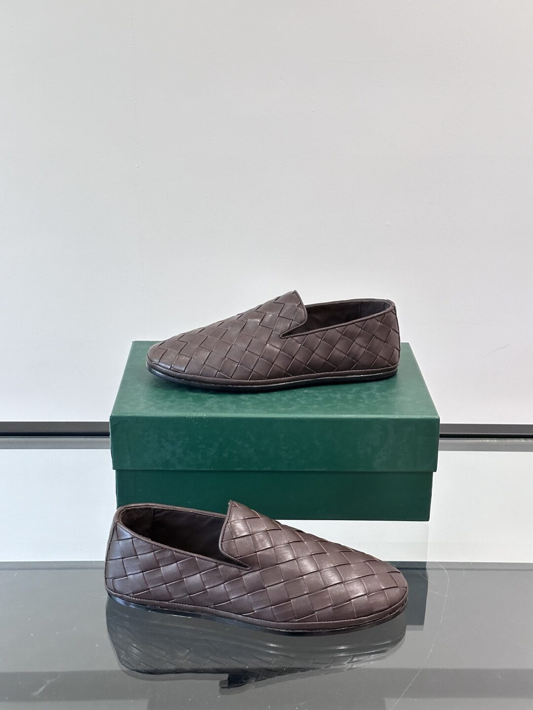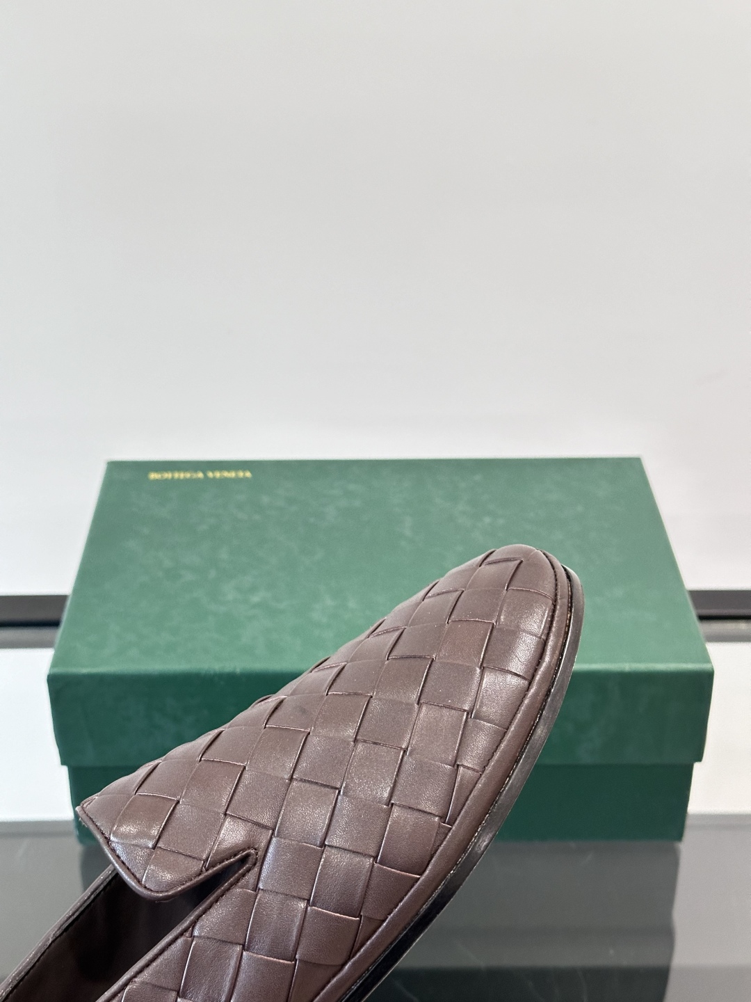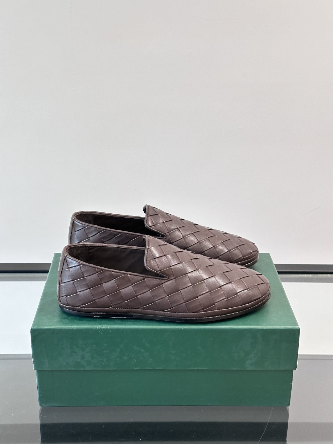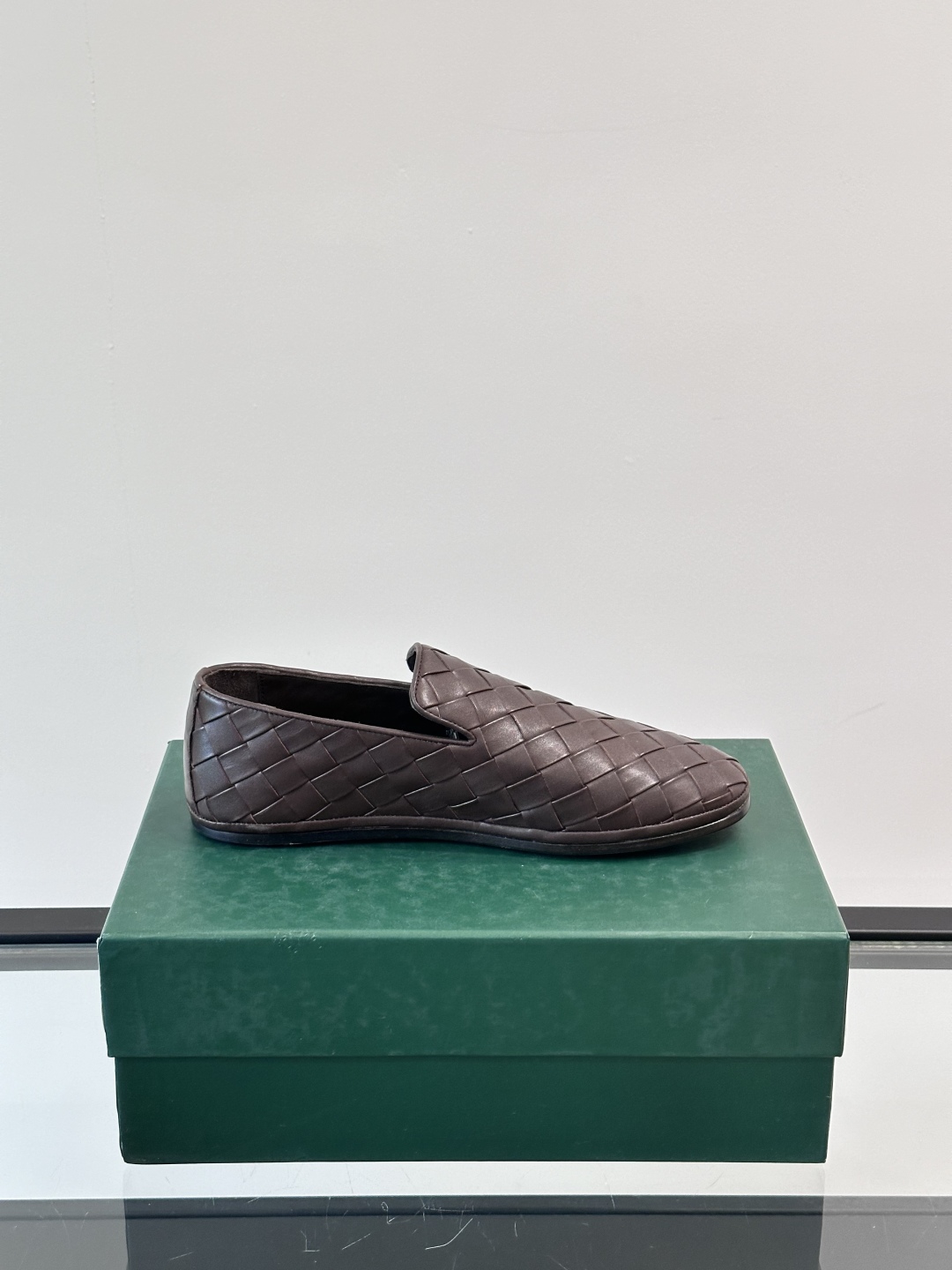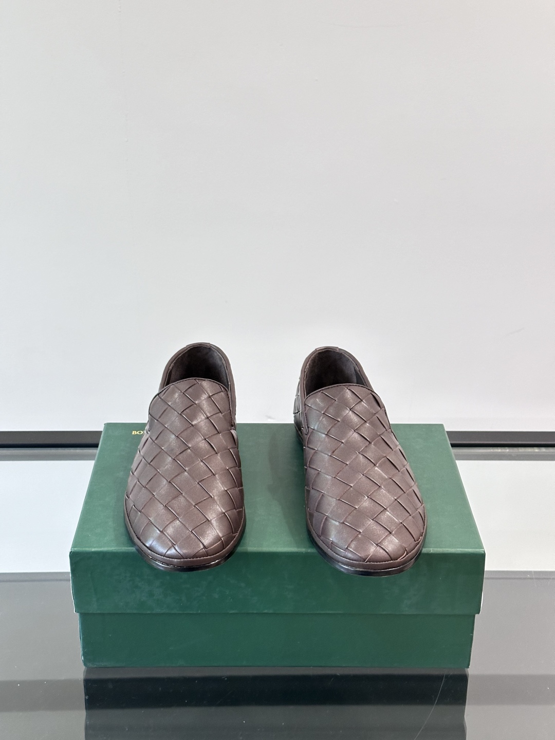 BV 新款男士休闲一脚蹬真皮大底乐福鞋,这款休闲一脚蹬乐福鞋选用柔软小牛皮纯手工编织,成就轻盈质地,精致真皮衬里,经典鞋履全方位演绎是精致的休闲风格。灵活的撞搭结构搭配原版真皮大底,增加更多耐久性。一脚蹬易穿脱套脚设计。