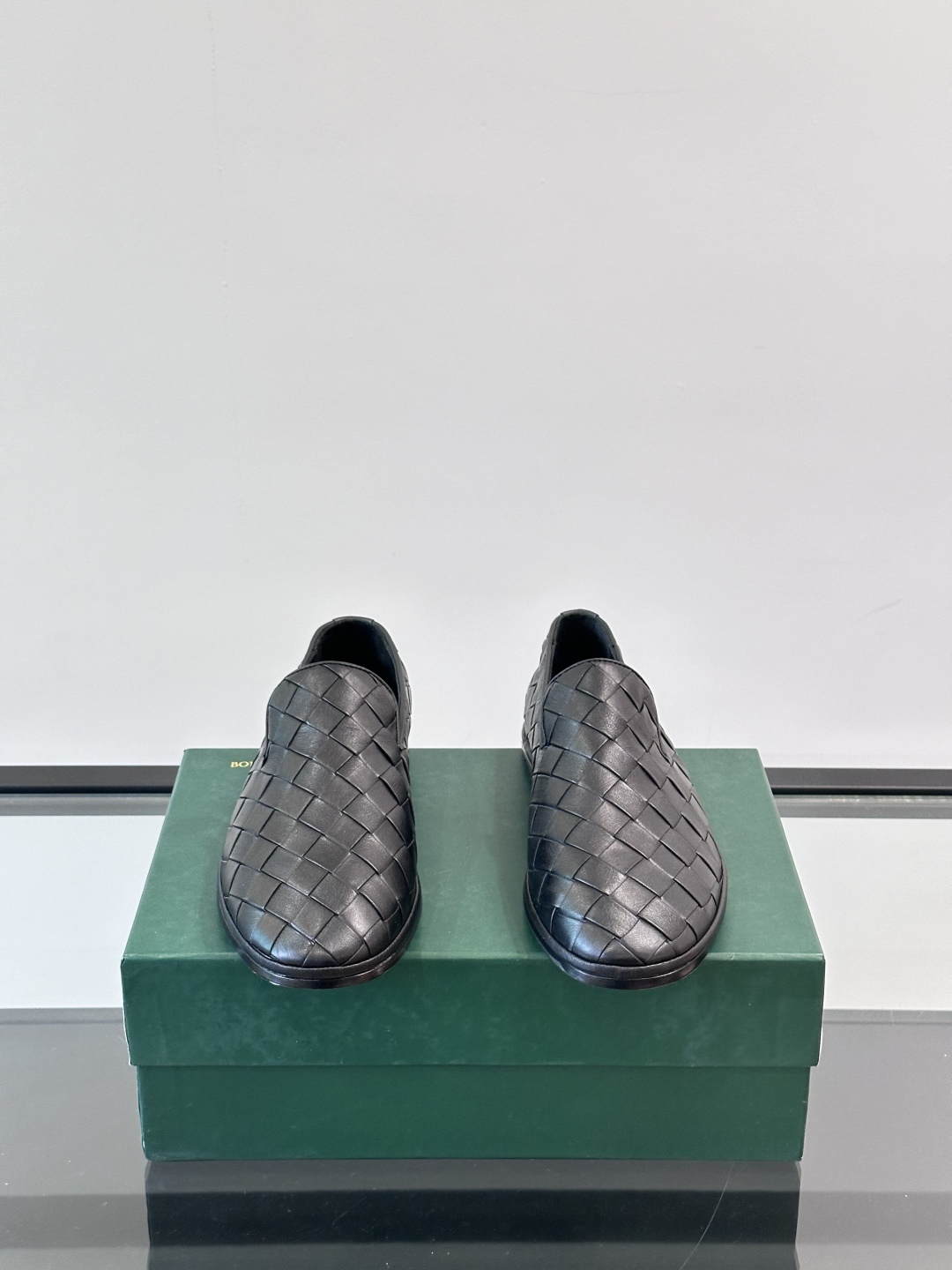 BV 新款男士休闲一脚蹬真皮大底乐福鞋,这款休闲一脚蹬乐福鞋选用柔软小牛皮纯手工编织,成就轻盈质地,精致真皮衬里,经典鞋履全方位演绎是精致的休闲风格。灵活的撞搭结构搭配原版真皮大底,增加更多耐久性。一脚蹬易穿脱套脚设计。