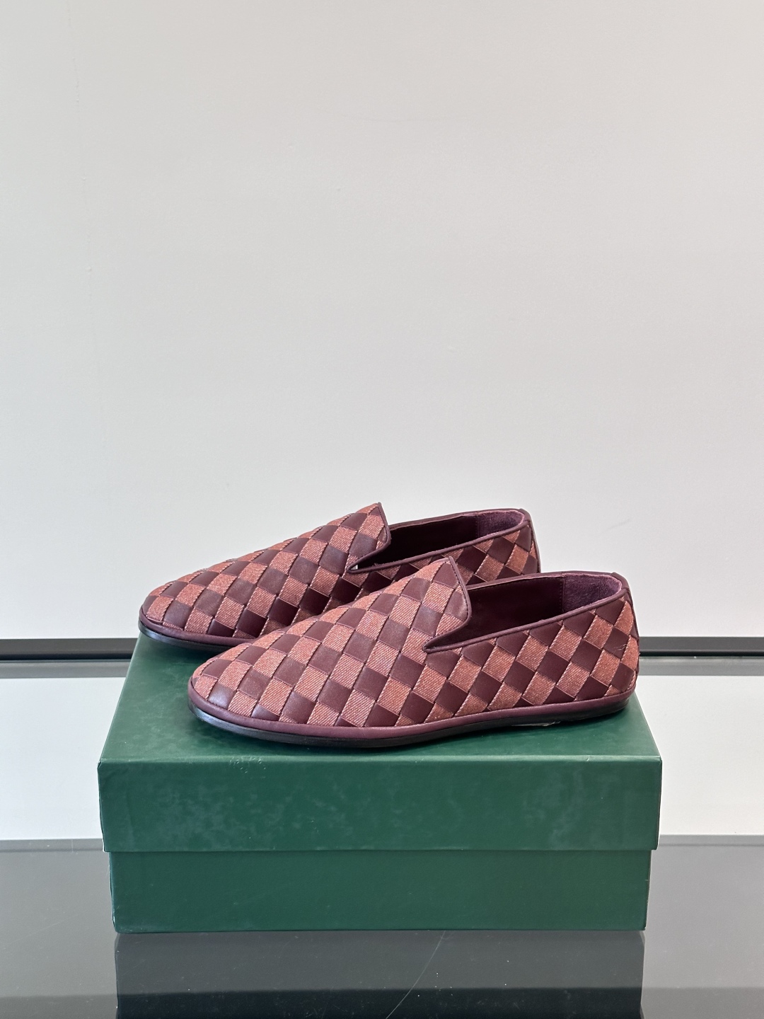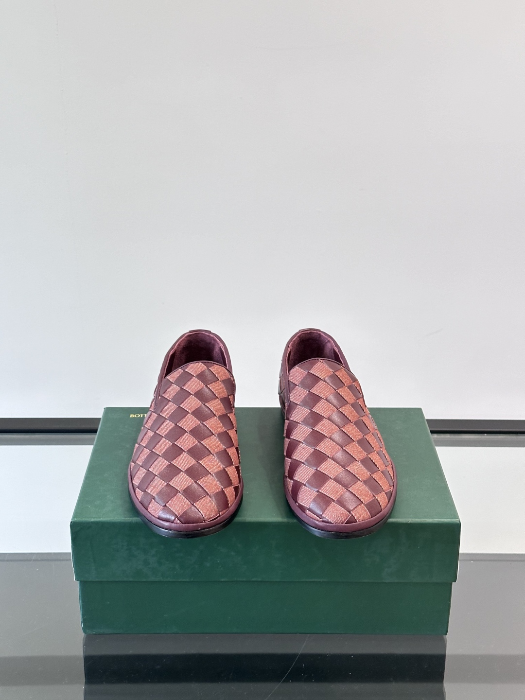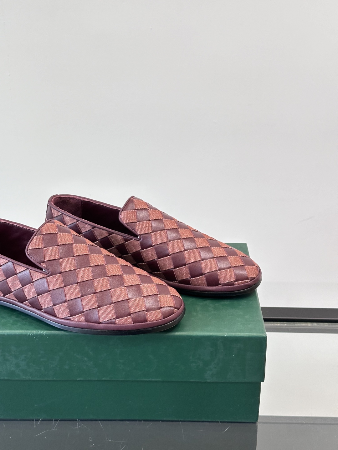 BV 新款男士休闲一脚蹬真皮大底乐福鞋,这款休闲一脚蹬乐福鞋选用柔软小牛皮纯手工编织,成就轻盈质地,精致真皮衬里,经典鞋履全方位演绎是精致的休闲风格。灵活的撞搭结构搭配原版真皮大底,增加更多耐久性。一脚蹬易穿脱套脚设计。 Size:39-44(38.45定做)