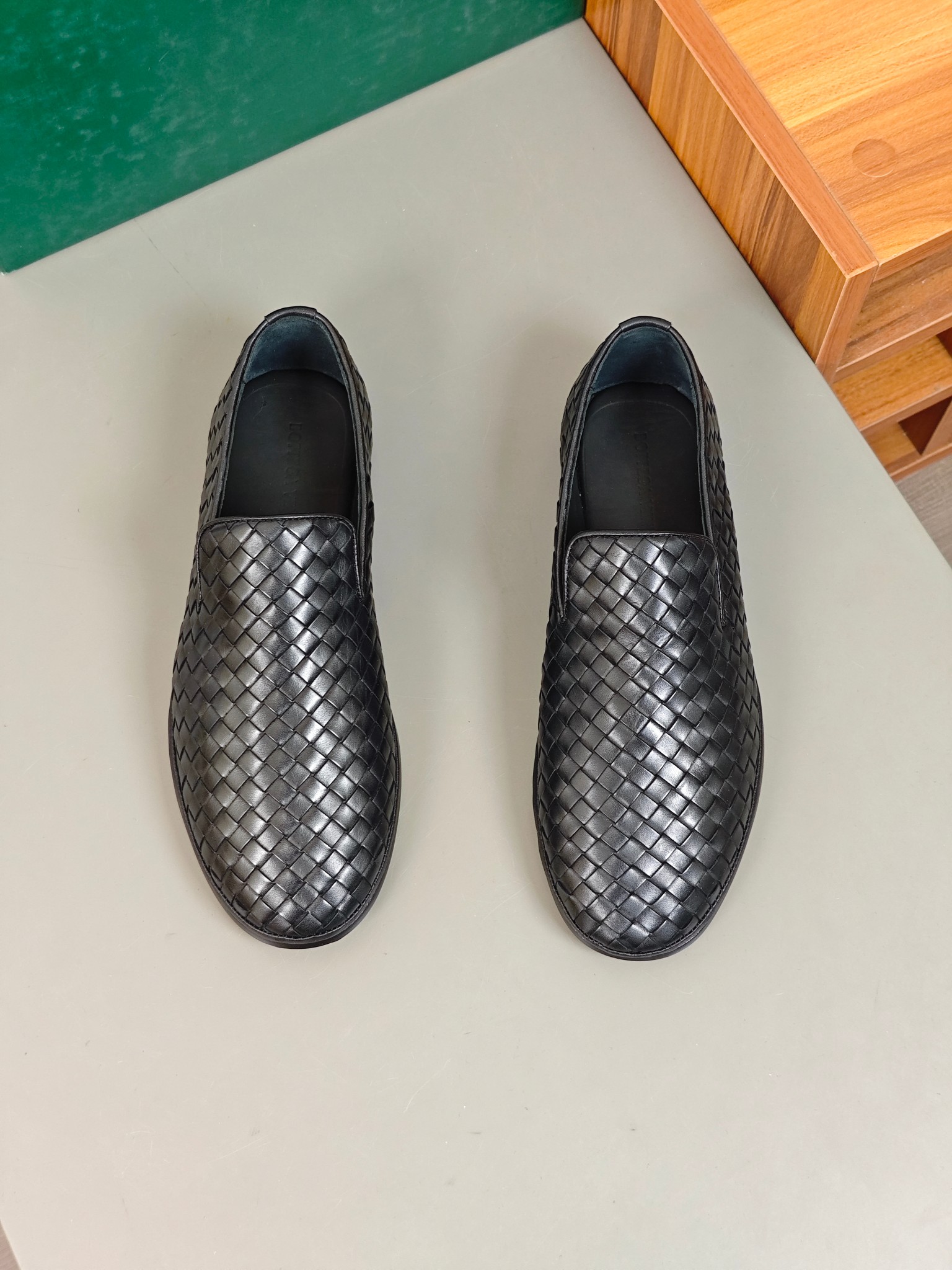 BV 新款男士休闲一脚蹬真皮大底乐福鞋,这款休闲一脚蹬乐福鞋选用柔软小牛皮纯手工编织,成就轻盈质地,精致真皮衬里,经典鞋履全方位演绎是精致的休闲风格。灵活的撞搭结构搭配原版真皮大底,增加更多耐久性。一脚蹬易穿脱套脚设计。