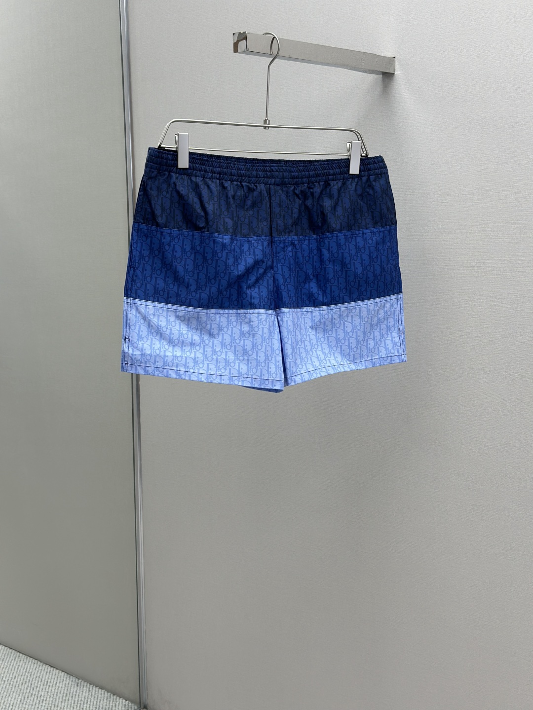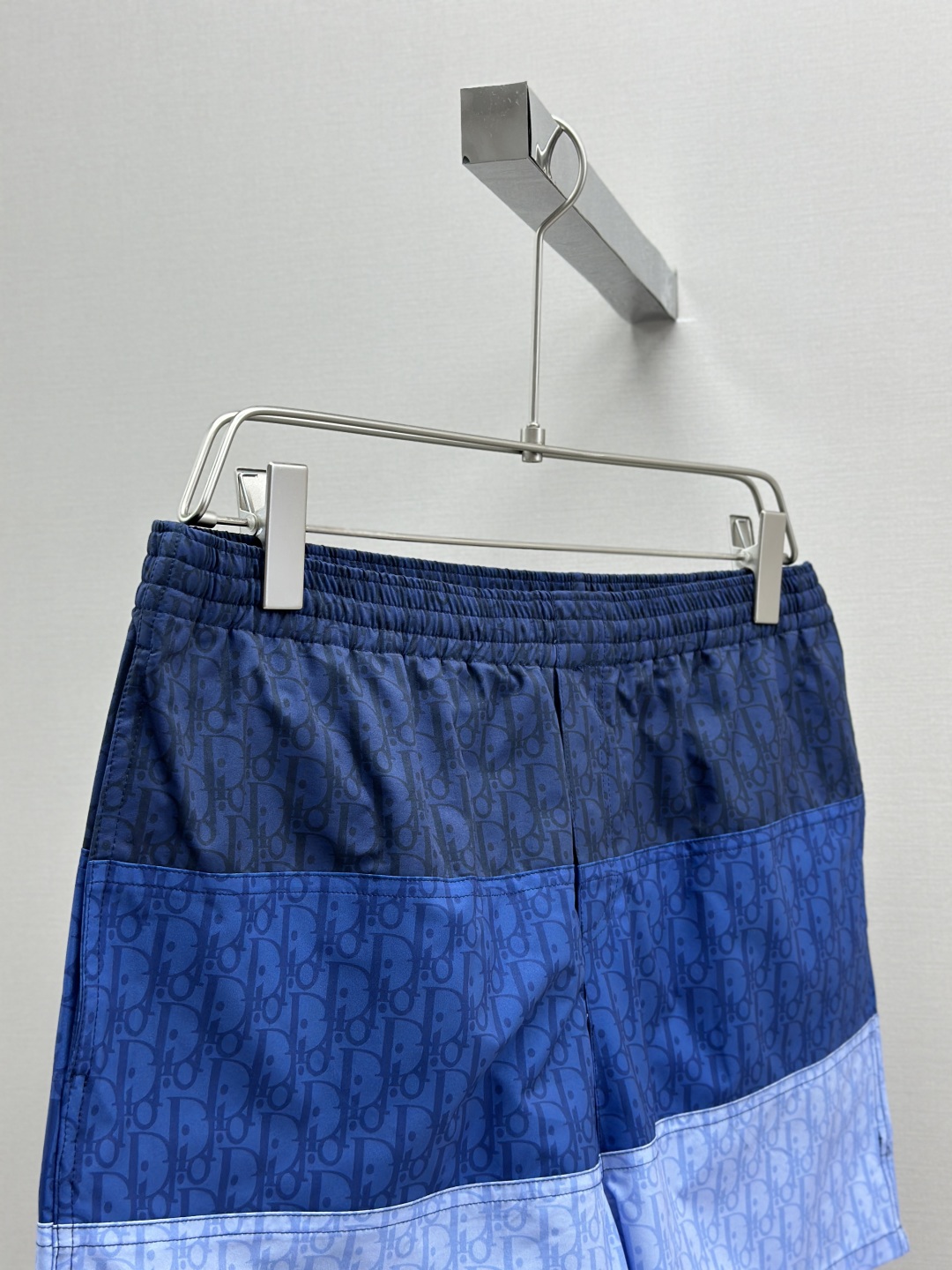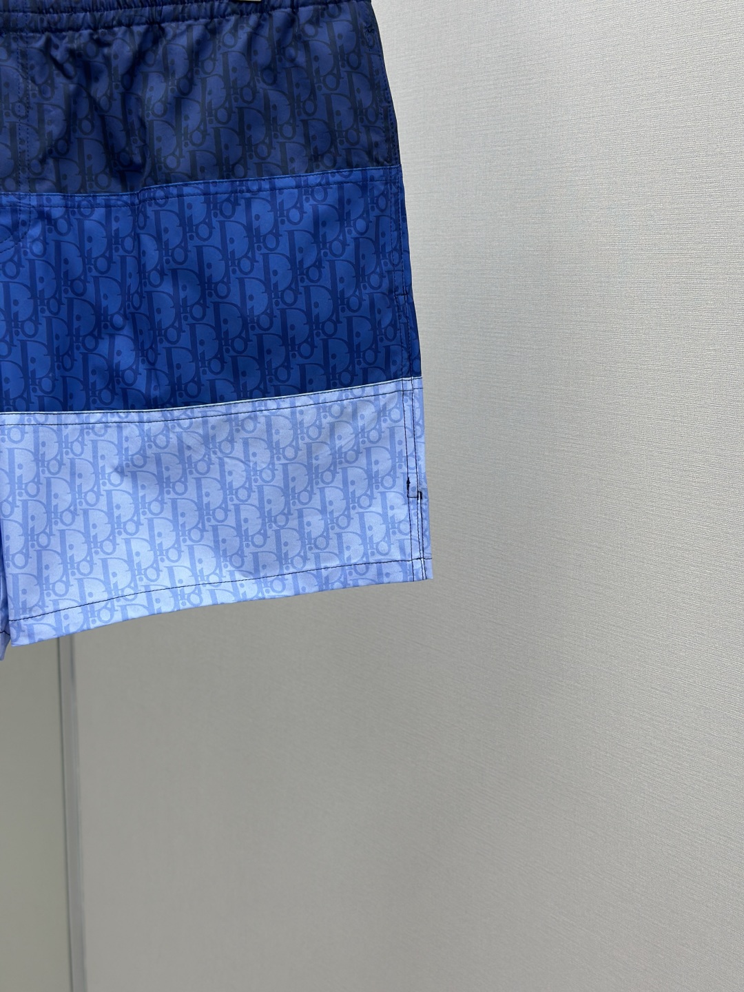CD新款拼接提花短裤 采用100%锦纶面料,上身舒适透气 在定染的锦纶面料上拼接不同色系的字母logo 定位裁剪拼接对位,根据门禁左右拼接对位 全身多个裁片拼接,报废率高 保证透气的同时提高贴肤舒适度