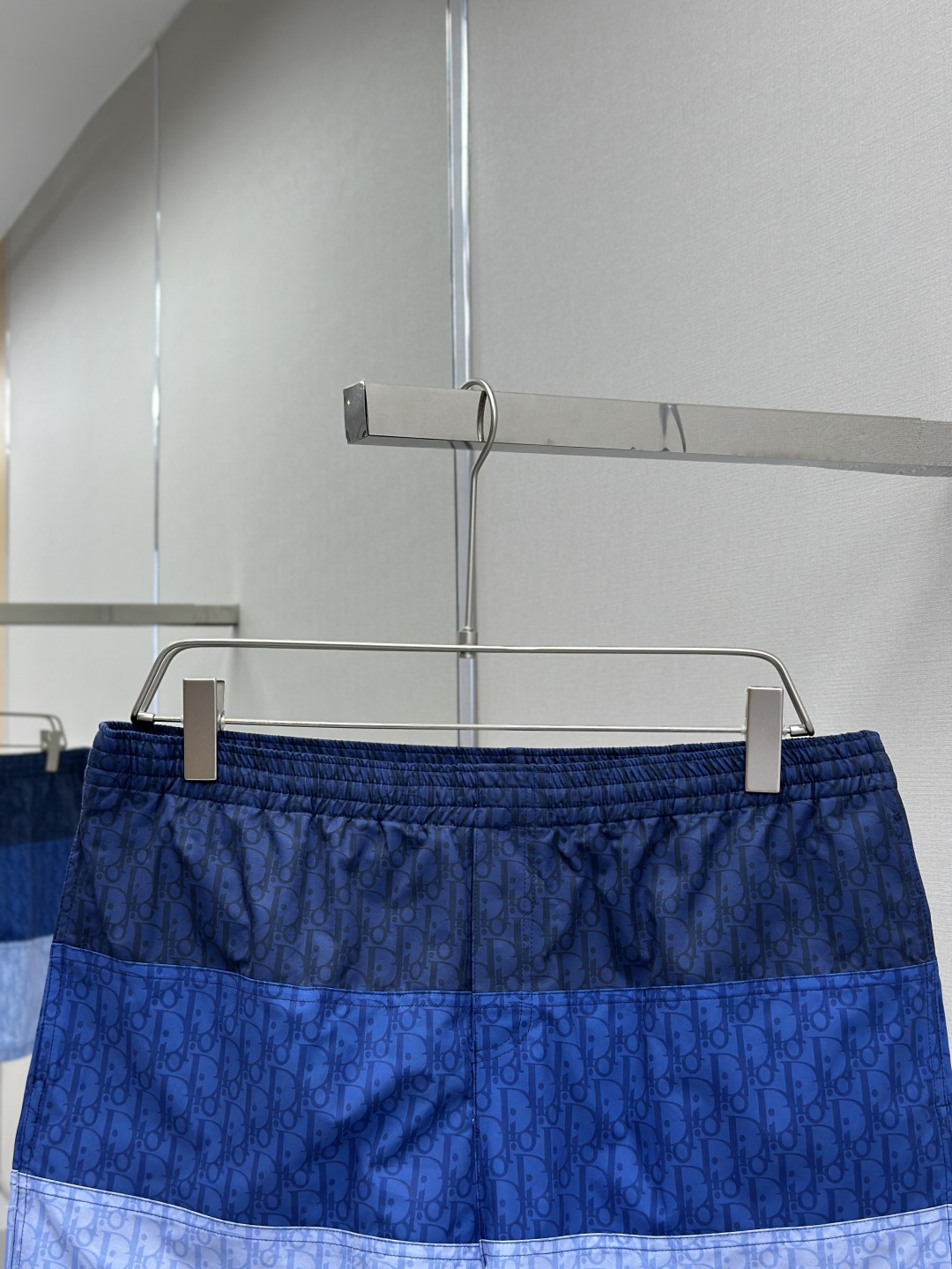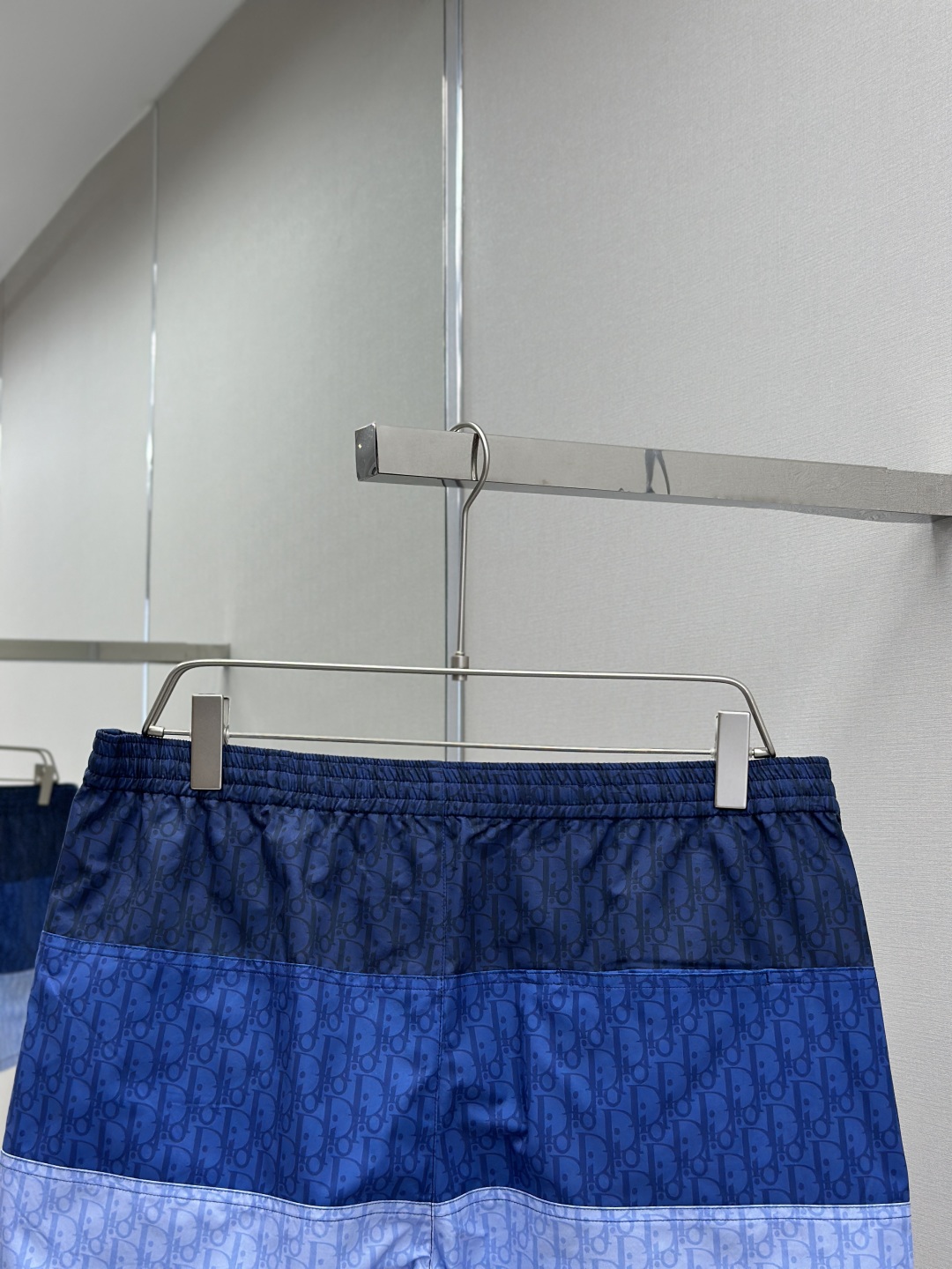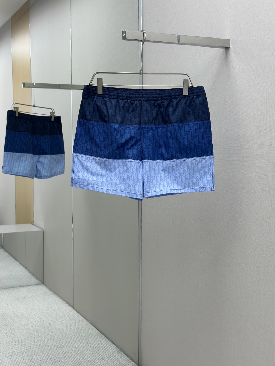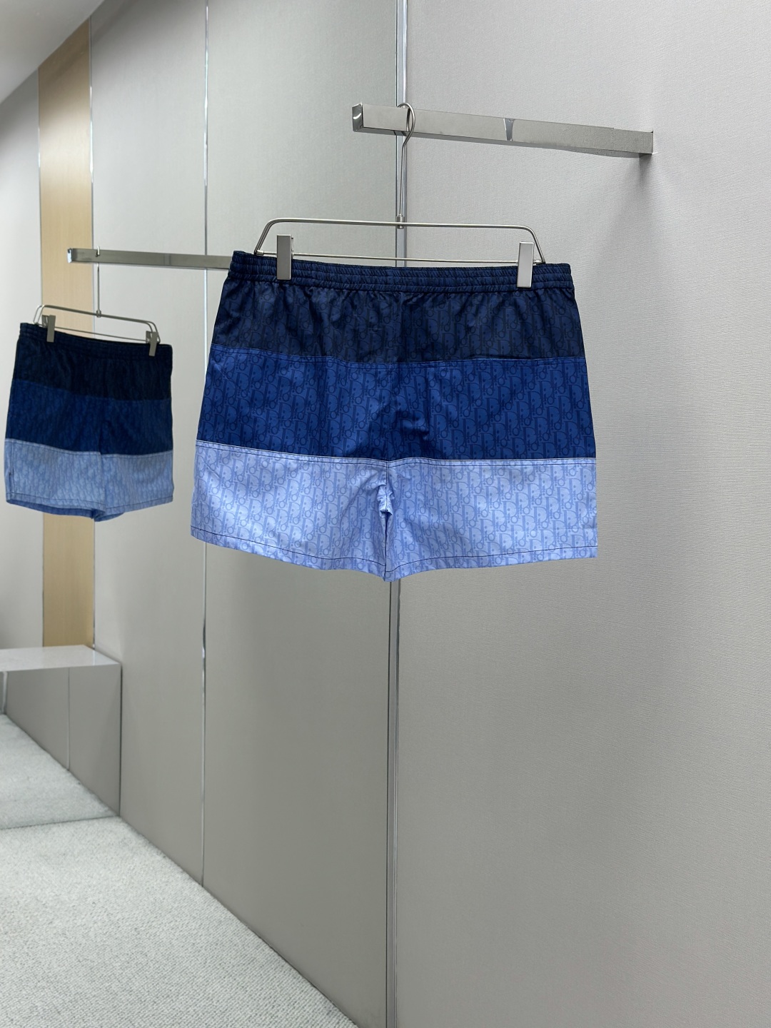CD新款拼接提花短裤 采用100%锦纶面料,上身舒适透气 在定染的锦纶面料上拼接不同色系的字母logo 定位裁剪拼接对位,根据门禁左右拼接对位 全身多个裁片拼接,报废率高 保证透气的同时提高贴肤舒适度