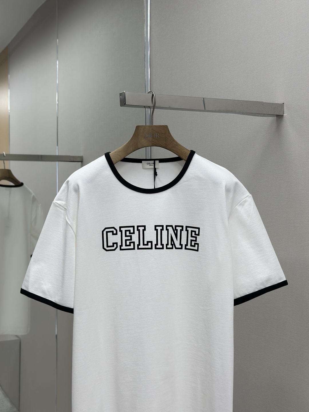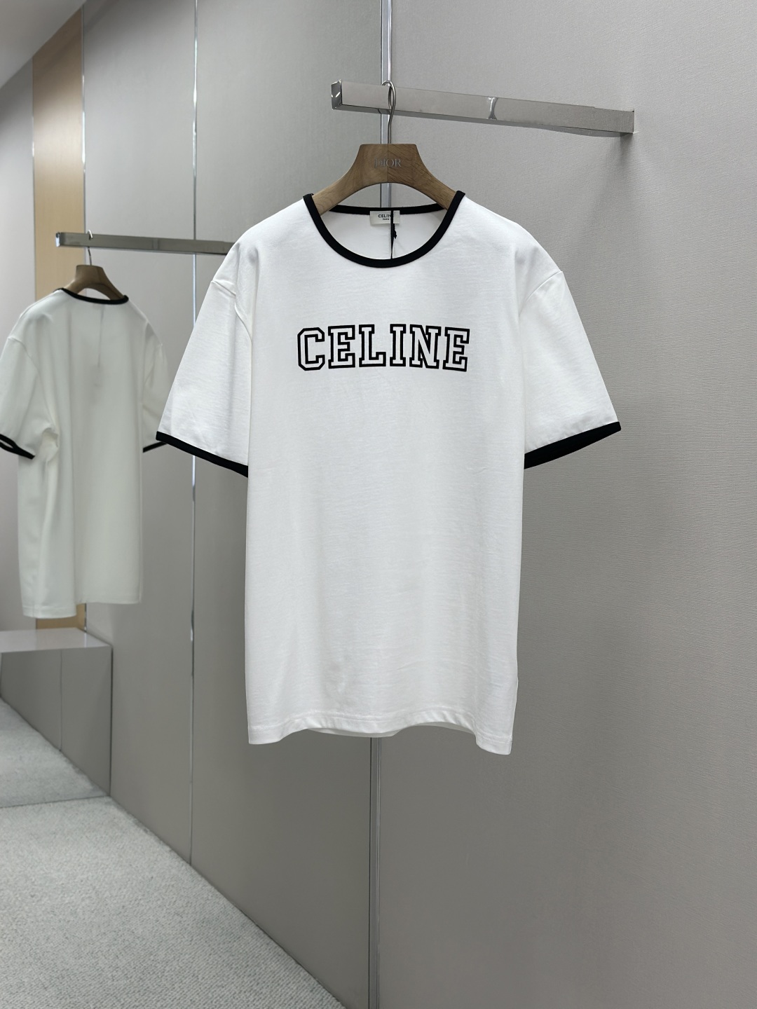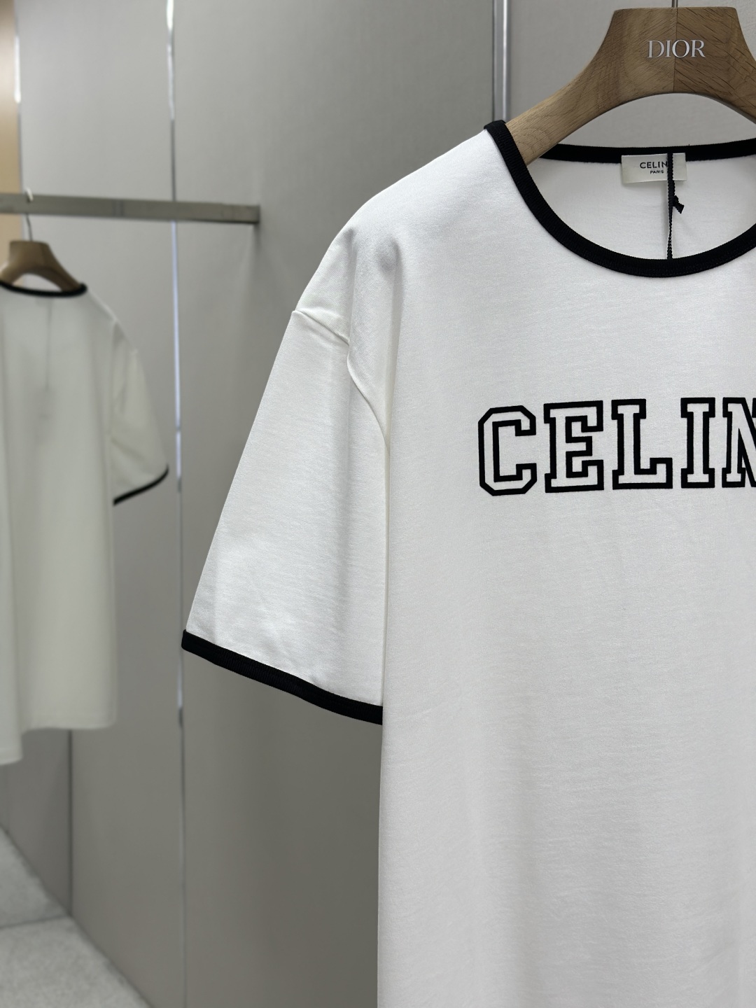 CELINE 25SS植绒印花圆领短袖 工艺说明:采用24S特种纺织紧密棉面料,185g;搭配32S双纱螺纹,220g。紧密纺强力比传统单纱高,紧密纱中的单纤维排列紧密,有助于提高纱线的强力。字母图案选用转移植绒工艺,以热转印技术加持牢固粘合剂成型印花图案。同时植绒印花的成分采用尼龙材质,尼龙本身具有良好的防污性能和防水功能。整体走线平直细腻,面料舒适柔软,颜色一致无色差 能与同款搭配营造时尚造型,驾驭各种场合,定制辅料,三标齐全,男女同款! 尺码S-XL
