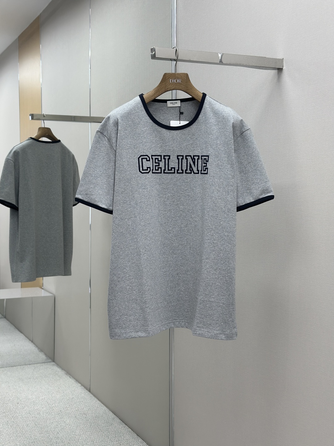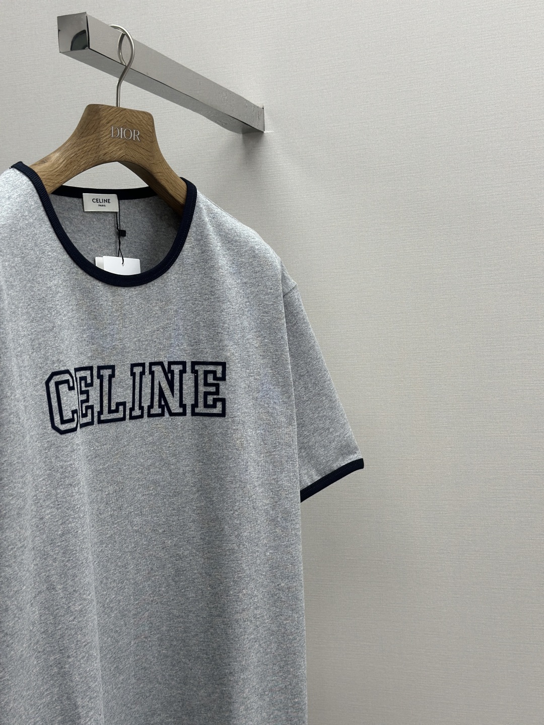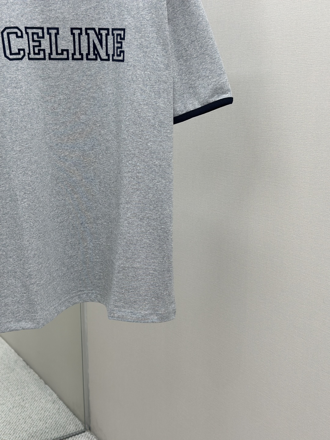 CELINE 25SS植绒印花圆领短袖 工艺说明:采用24S特种纺织紧密棉面料,185g;搭配32S双纱螺纹,220g。紧密纺强力比传统单纱高,紧密纱中的单纤维排列紧密,有助于提高纱线的强力。字母图案选用转移植绒工艺,以热转印技术加持牢固粘合剂成型印花图案。同时植绒印花的成分采用尼龙材质,尼龙本身具有良好的防污性能和防水功能。整体走线平直细腻,面料舒适柔软,颜色一致无色差 能与同款搭配营造时尚造型,驾驭各种场合,定制辅料,三标齐全,男女同款! 尺码S-XL