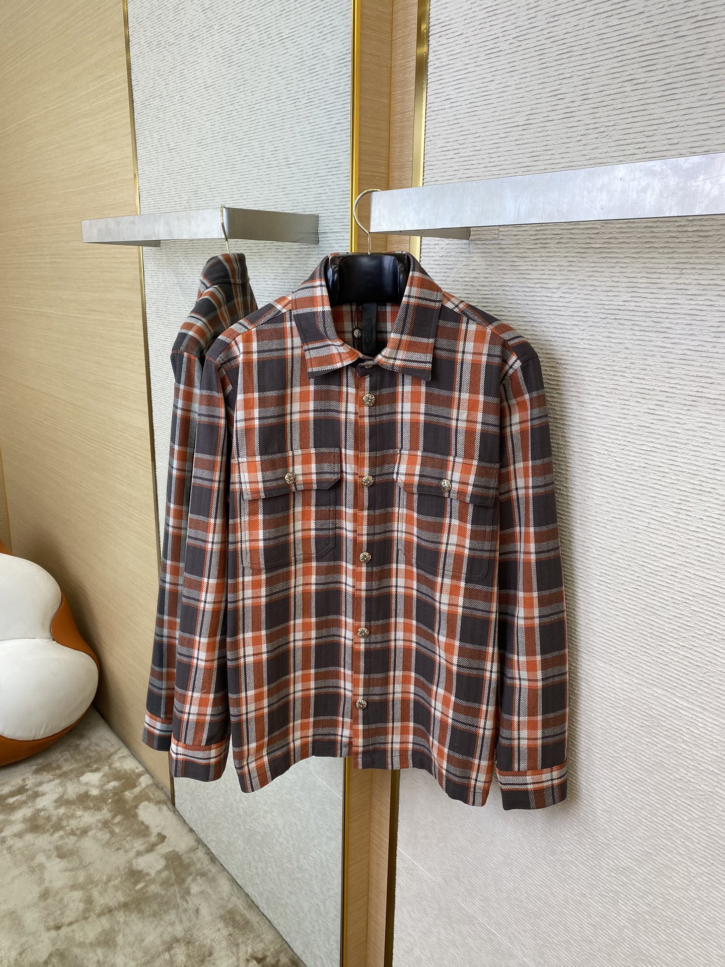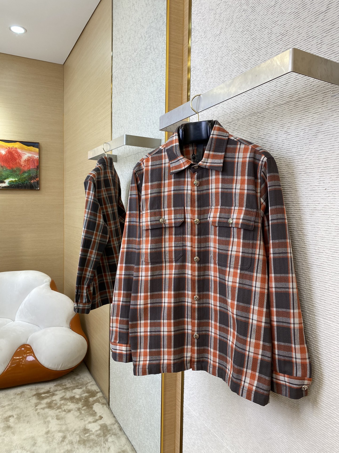CH克罗心法兰绒格子衬衫 【正确价格咨询客服】 【 # #】 YB购入打版!定染纱线采用 支双股 克(水洗后 克)全棉混纺法兰绒材质.正面拉毛.激光红外定位.纯手工剪裁.全方位对位.定制 mm.蘑菇纽扣.定制 真银电镀纽扣.定制辅料.男女同款.街头感十足.做工细节质感非常好,男女同款! ⚠️售后无忧-顶级服务、效率、品质! ⚠️正确价格请添加客服微信咨询 ➖➖➖➖➖➖ ⚠️ 版型 宽松 ⚠️ 颜色 格纹拼接 ⚠️ 尺码 S/M/L