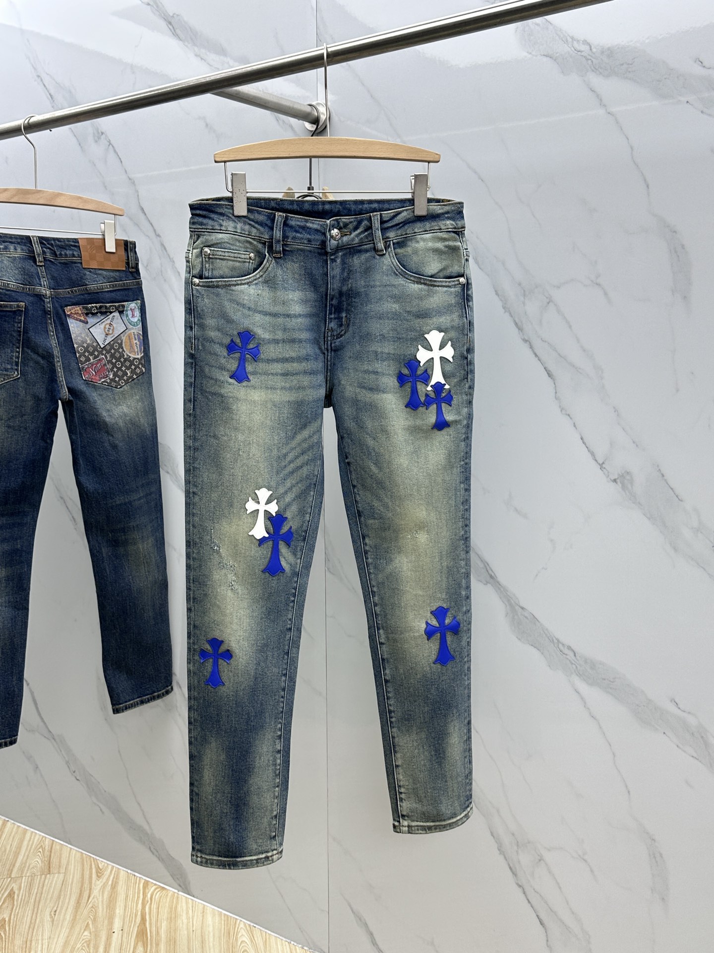CH*克罗心 高端定制、2025早春最新款牛仔裤 柜台同步发售 小脚版型,进口固色面料 原版定制复刻 客供五金辅料 原单品质 重工洗水 做工走线精细 上身绝佳!优选单品