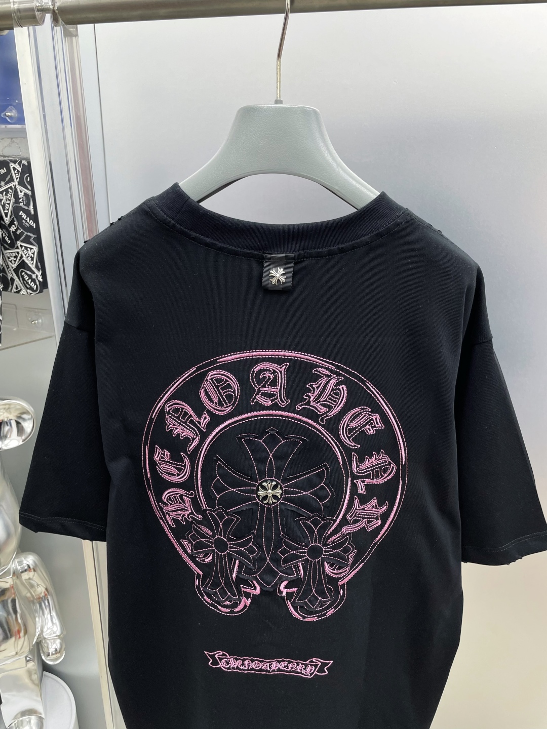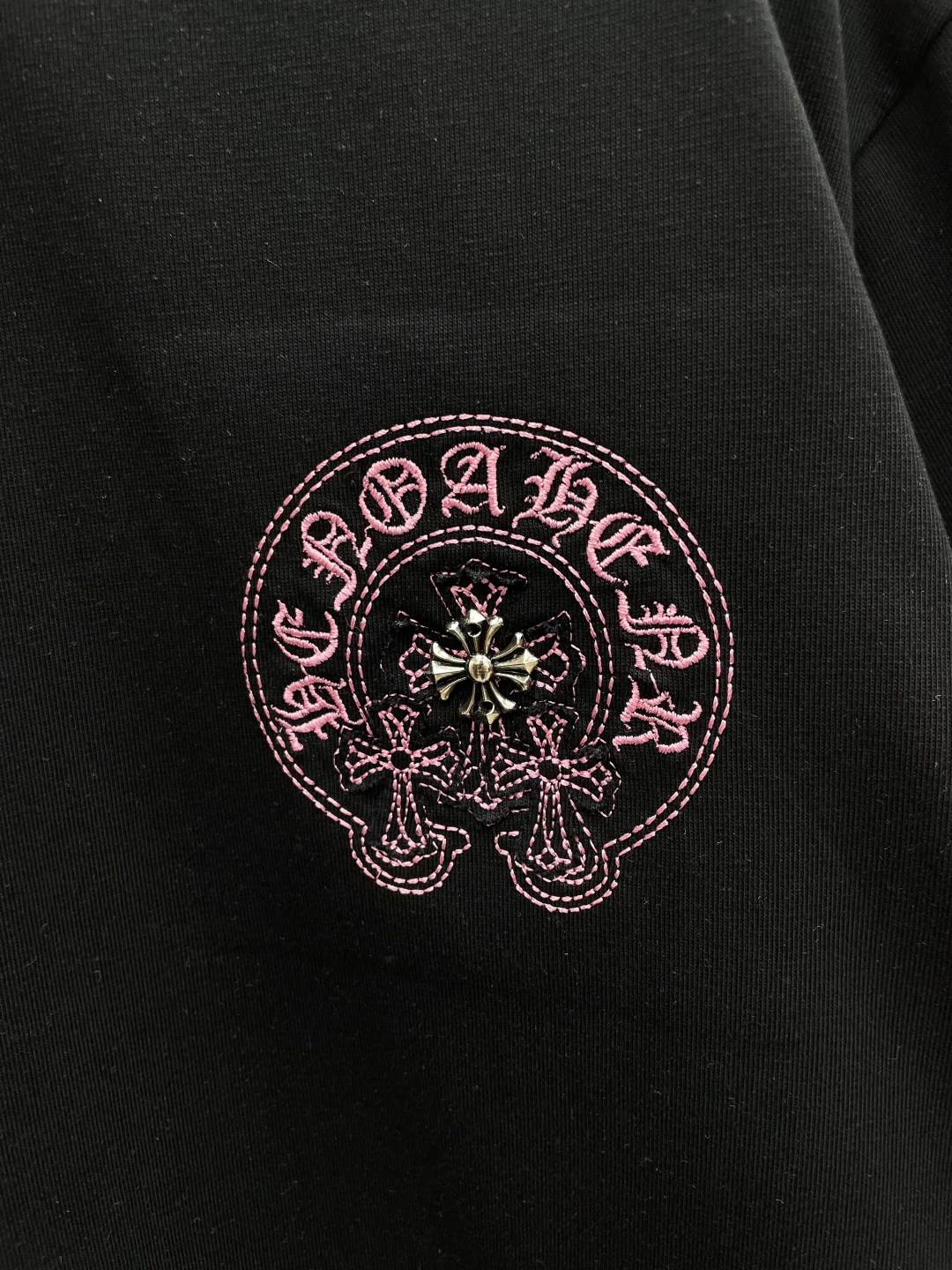 Ch 克罗心 2025夏季新款破洞十字架马蹄梵文贴布走线刺绣字母LOGO最新品短袖 DD 专柜同步有售,原单狠货,时尚进口原版科技面料,上身舒适透气,原版定制五金辅料,上身帅气有型,三标齐全,推荐款,档次极高 码数:M-3XL