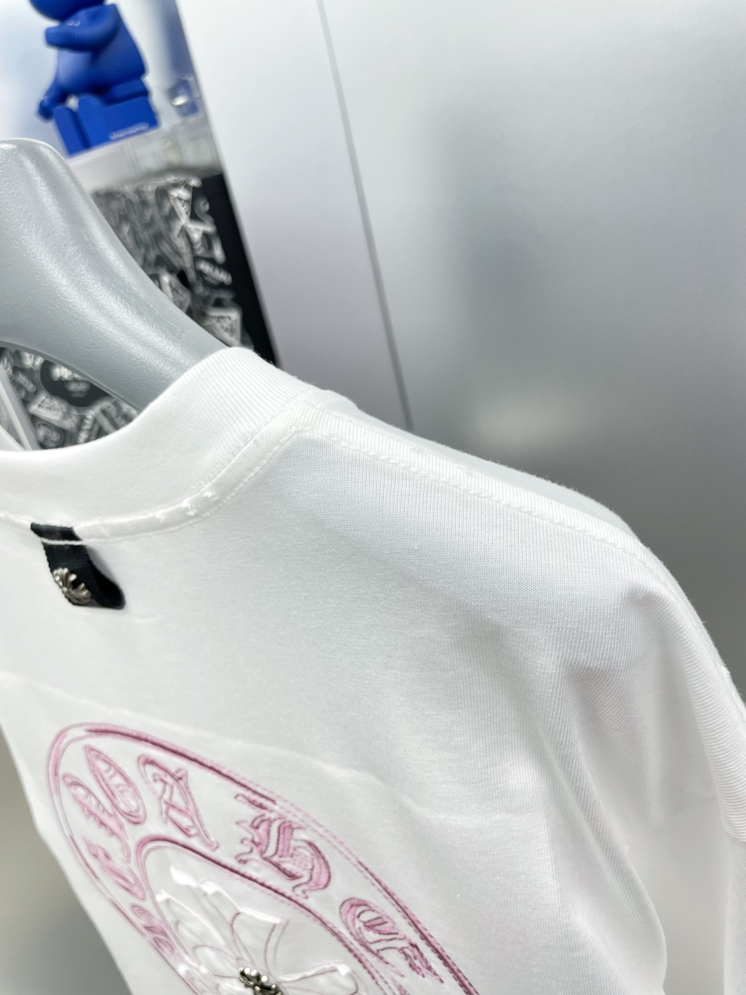 Ch 克罗心 2025夏季新款破洞十字架马蹄梵文贴布走线刺绣字母LOGO最新品短袖 DD 专柜同步有售,原单狠货,时尚进口原版科技面料,上身舒适透气,原版定制五金辅料,上身帅气有型,三标齐全,推荐款,档次极高 码数:M-3XL