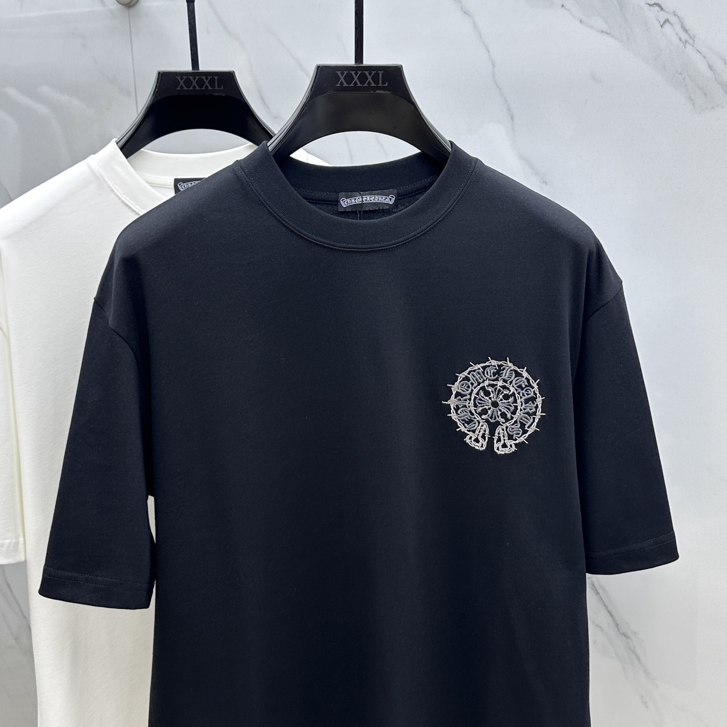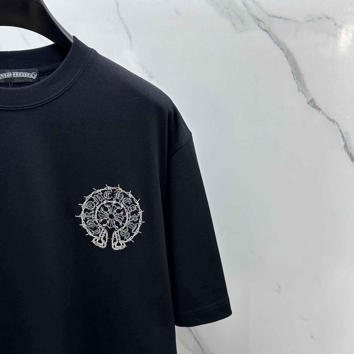 CH*克罗心 2025FW春夏新品圆领微阔打底外穿T恤,立体logo刺绣,手感面糯有骨感,柔而有韧性。工艺处理,韧性和抗皱性能得到大幅度提高。剪裁很到位,辨识度极高。单穿打底必备单品。 男女同款xh 码数:M-XXL