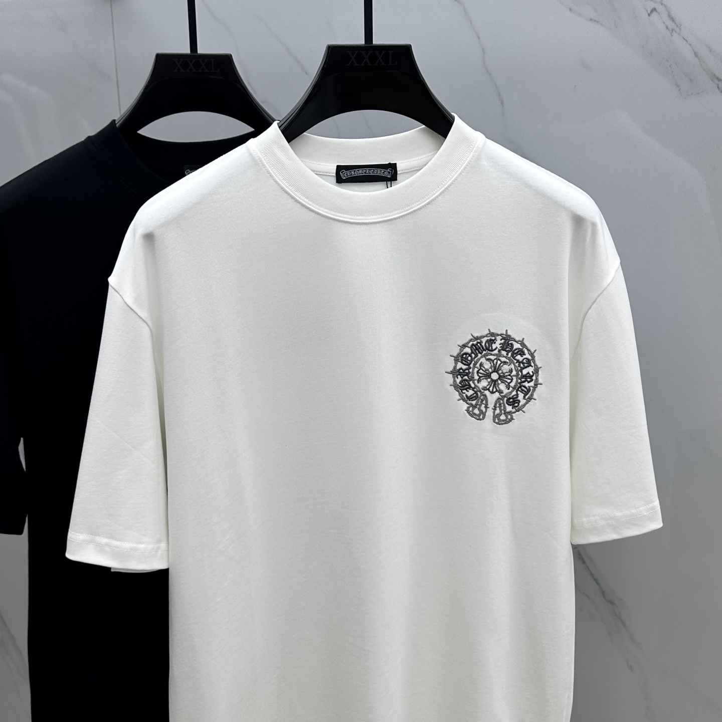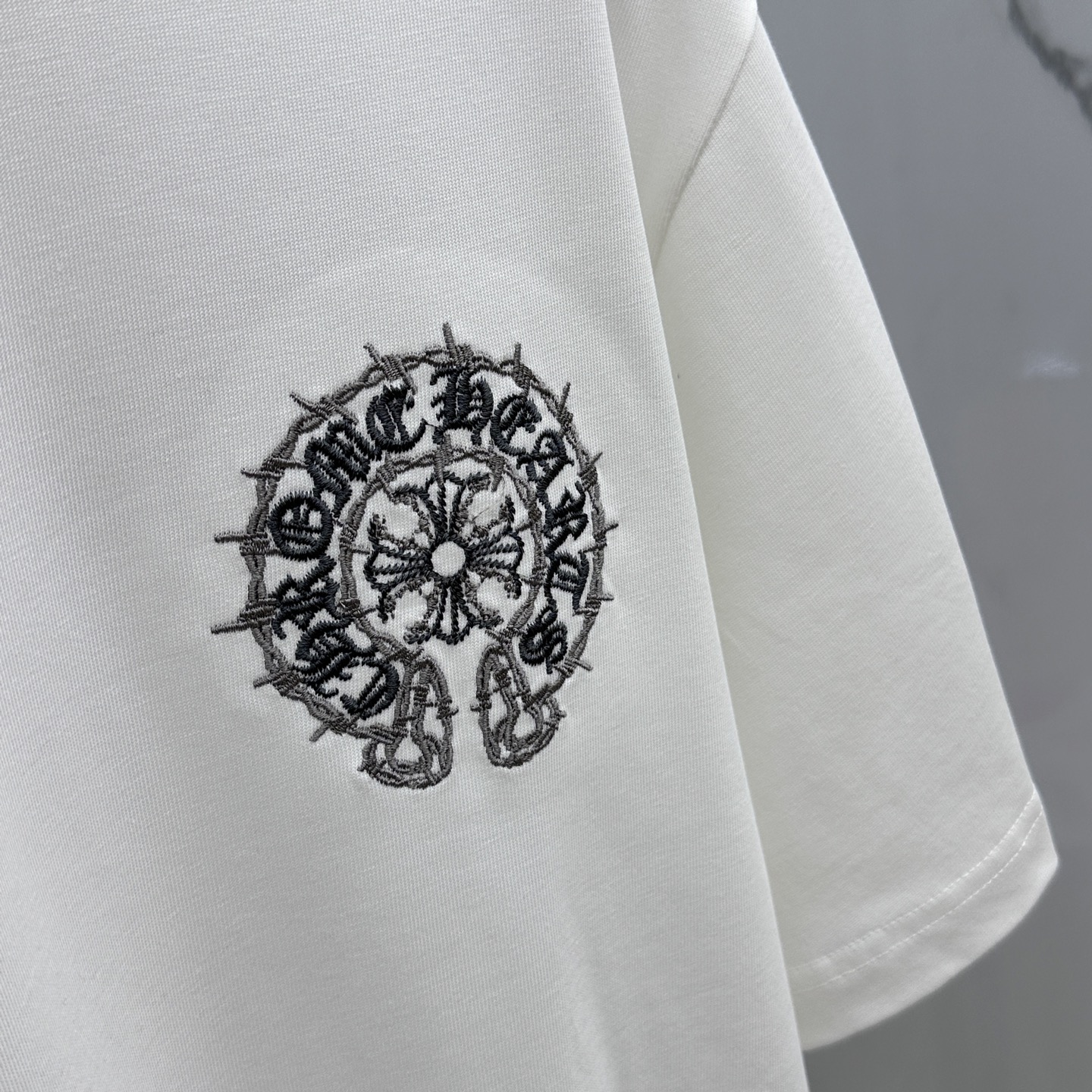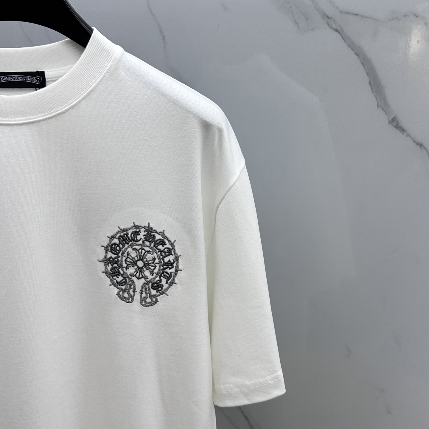 CH*克罗心 2025FW春夏新品圆领微阔打底外穿T恤,立体logo刺绣,手感面糯有骨感,柔而有韧性。工艺处理,韧性和抗皱性能得到大幅度提高。剪裁很到位,辨识度极高。单穿打底必备单品。 男女同款xh 码数:M-XXL