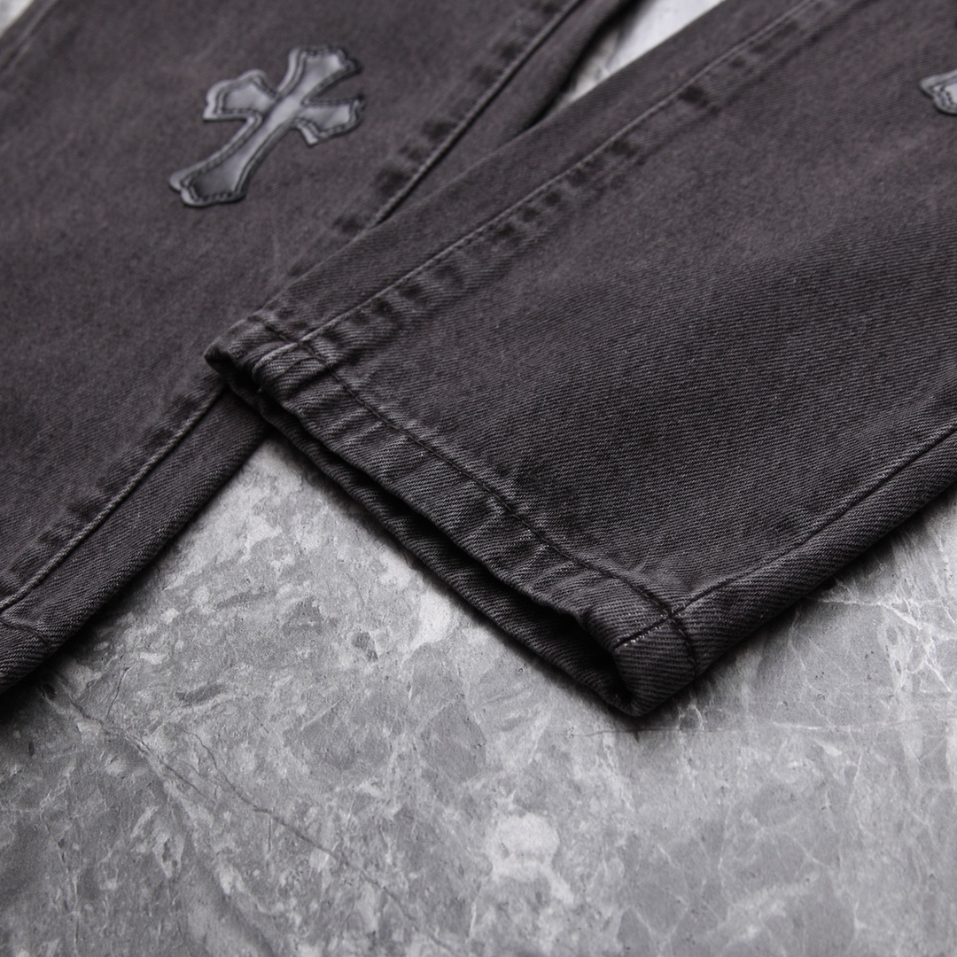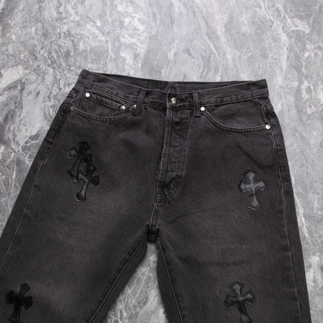 CH限定拼皮十字架高街复古直筒牛仔裤,尺码:28.30.32.34.36.38
