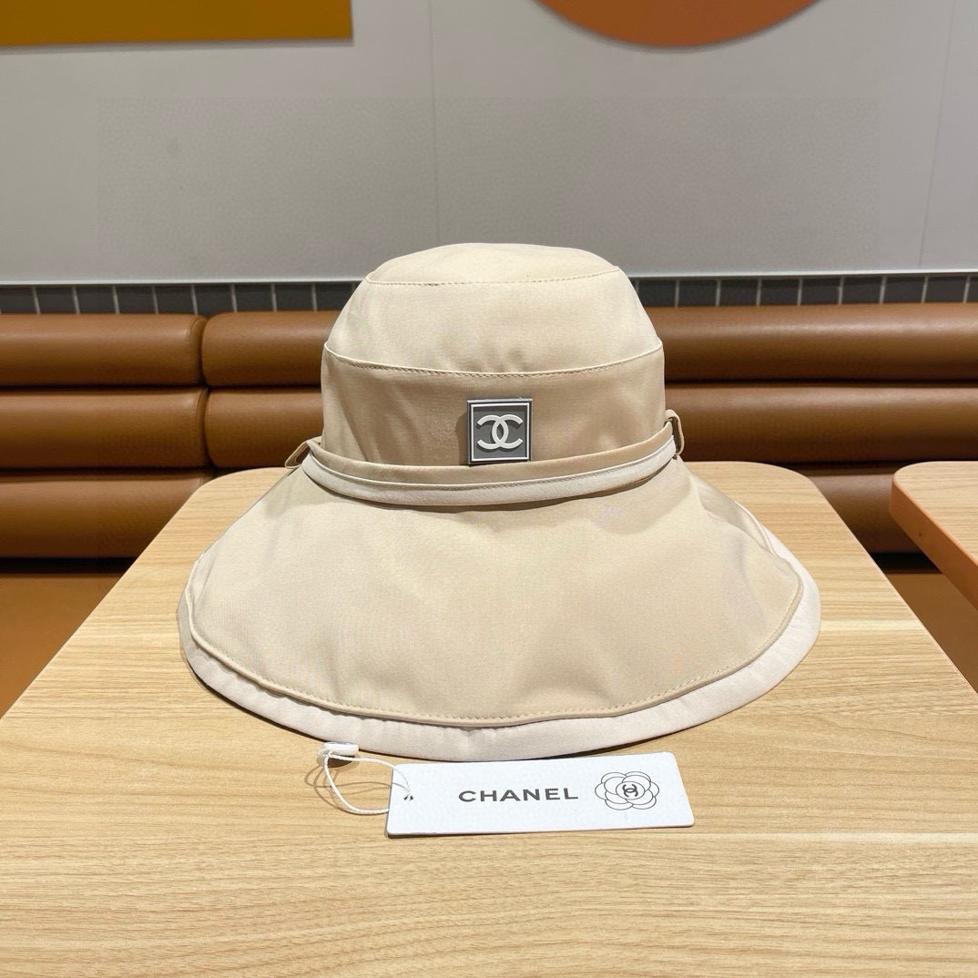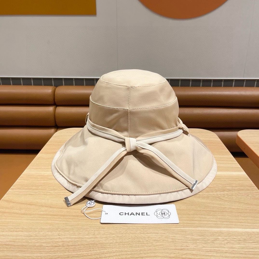 Chanel香奈儿双面渔夫帽夏季新帽子女海边度假大檐防晒遮阳帽双面戴防风大沿